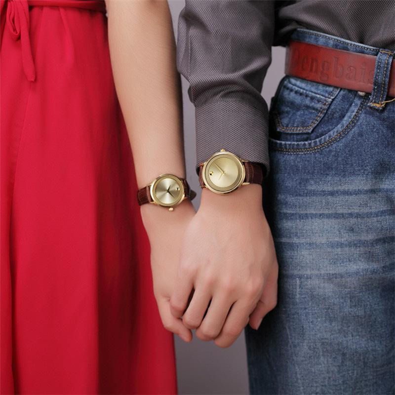 Reloj de moda para mujer, reloj de pareja, ultrafino, sencillo, con correa de cuero para hombre y mujer, reloj de cuarzo, estilo coreano.