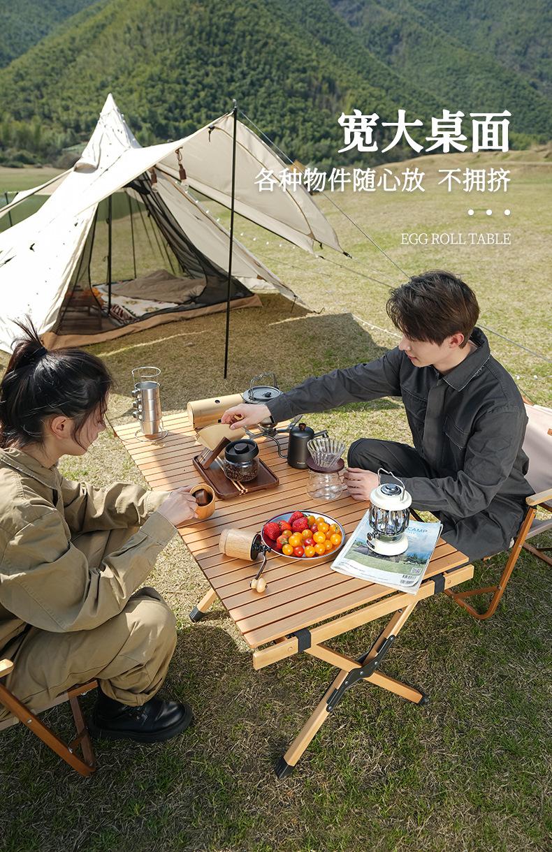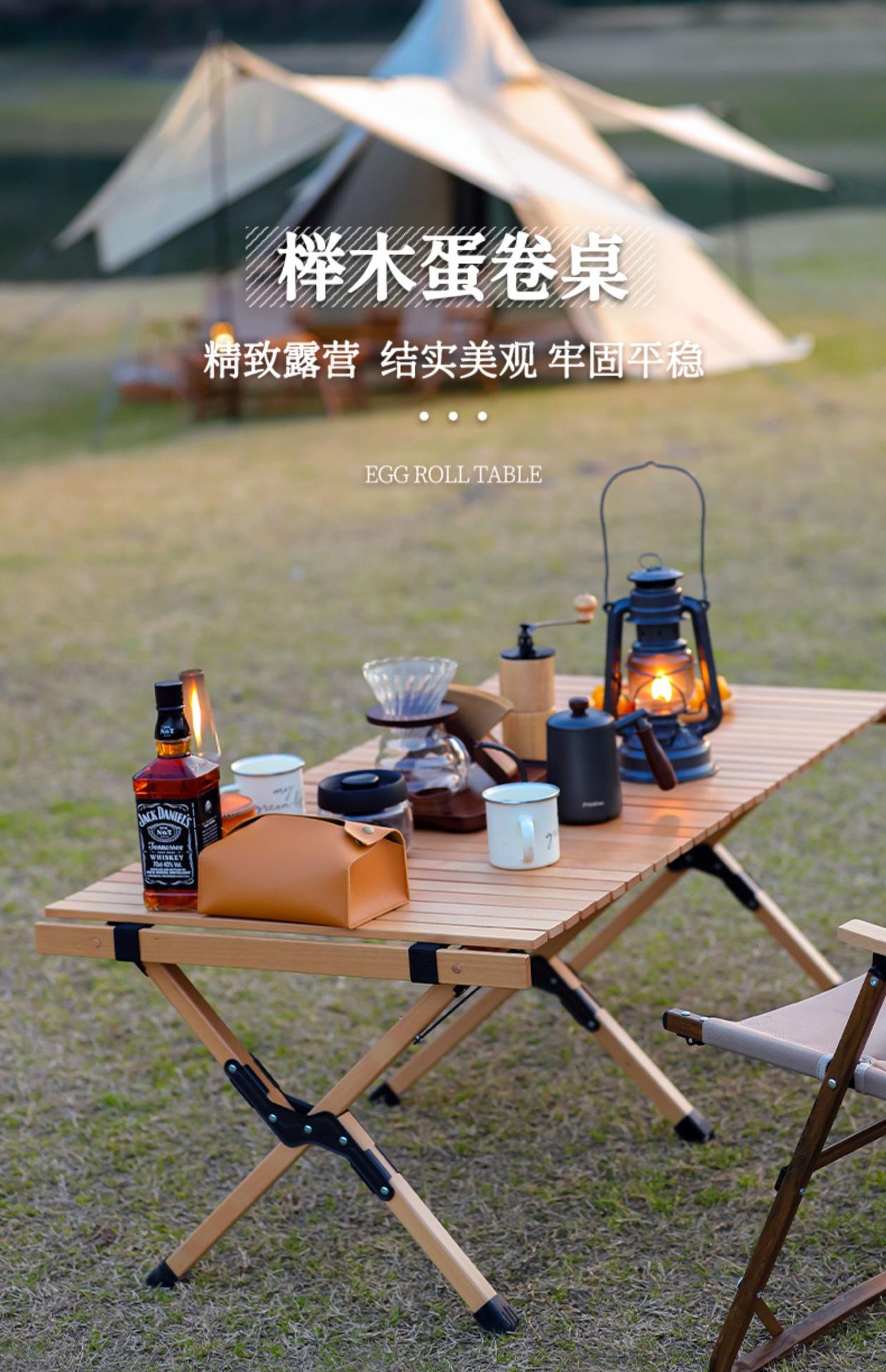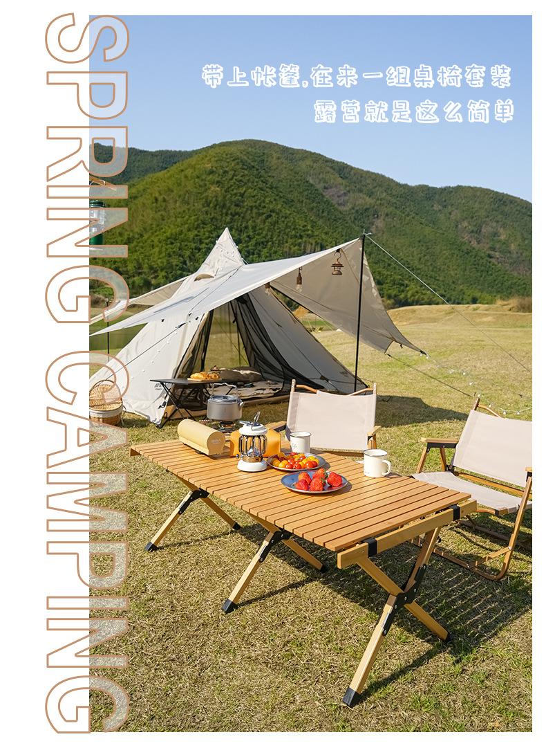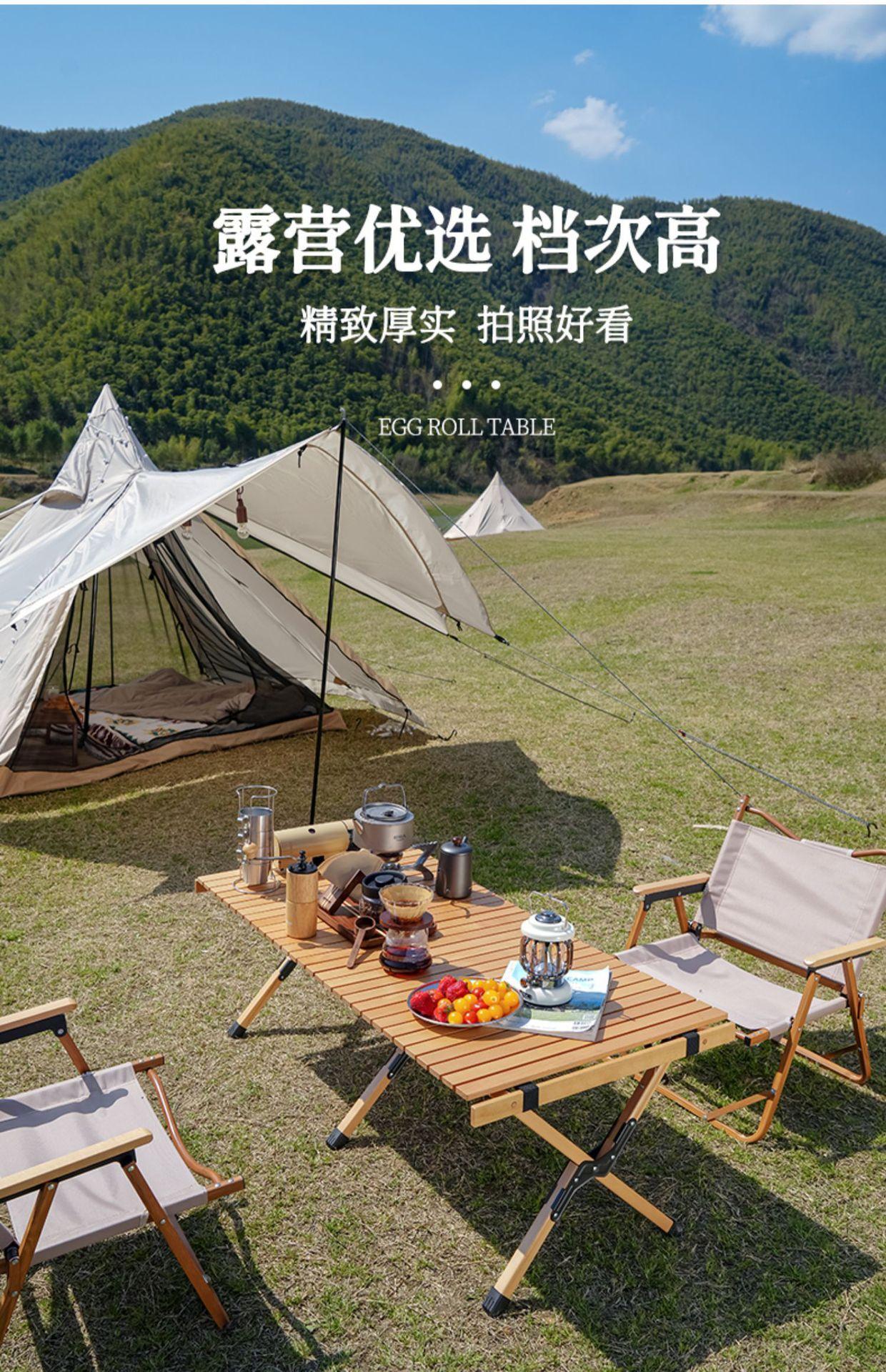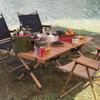 Mesa de Rollo de Haya Mesa Plegable para Exterior Mesa de Picnic y Silla Portátil para Camping Juego de Suministros y Equipo