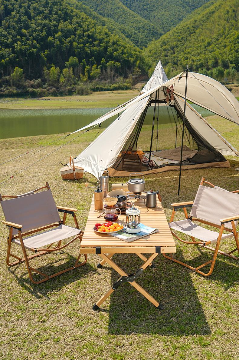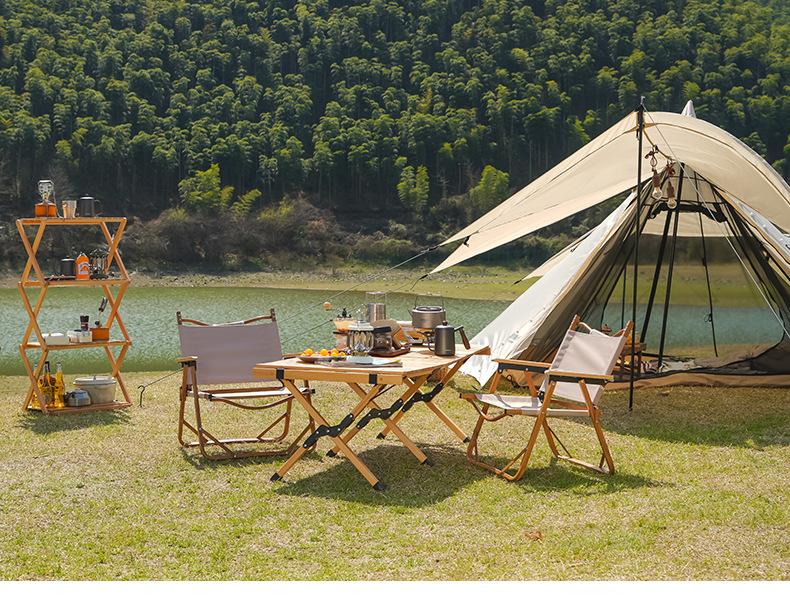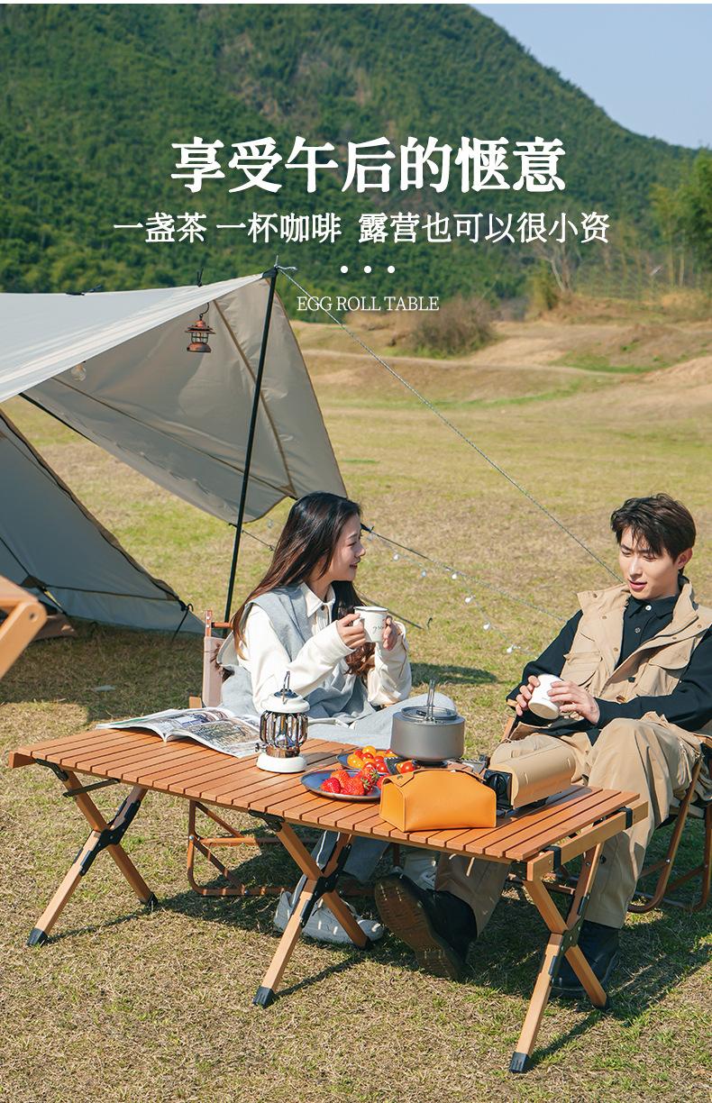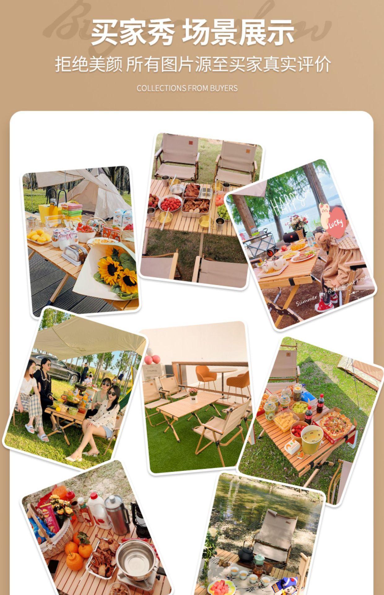 Mesa de Rollo de Haya Mesa Plegable para Exterior Mesa de Picnic y Silla Portátil para Camping Juego de Suministros y Equipo