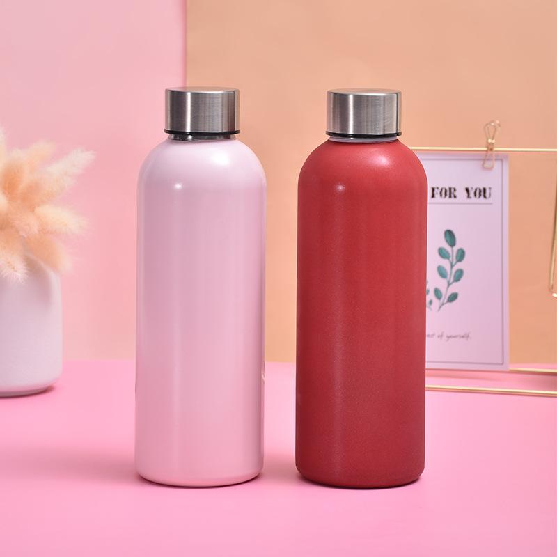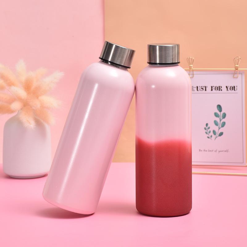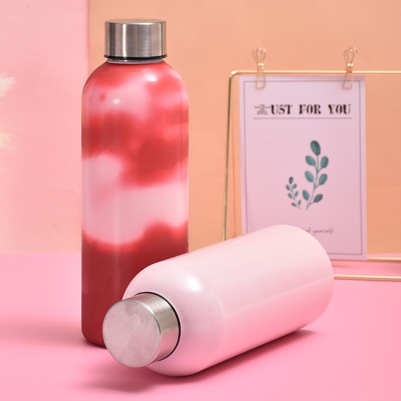 Taza termo de acero inoxidable 304 de una sola capa personalizada, botella deportiva para agua fría al aire libre con decoloración, portátil para coche, tipo botella de Coca-Cola