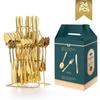 Amazon Transfronterizo Nuevo Juego de Cubiertos de Acero Inoxidable de 24 Piezas Estilo Occidental Cuchillo Dorado para Bistec, Tenedor, Cuchara con Soporte Caja de Regalo