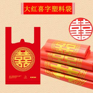 Bolsa de chaleco roja, bolsa de palabra feliz, bolsa de plástico para bodas, bolsa de embalaje, bolsa de plástico impresa, bolsa de chaleco engrosada, bolsa de regalo, lote