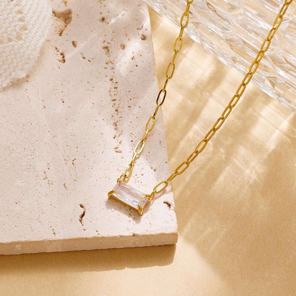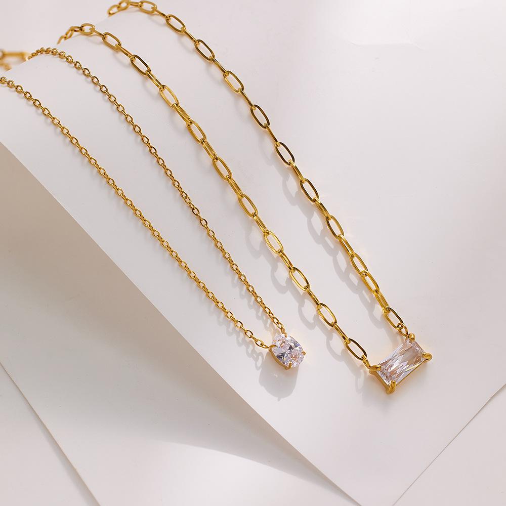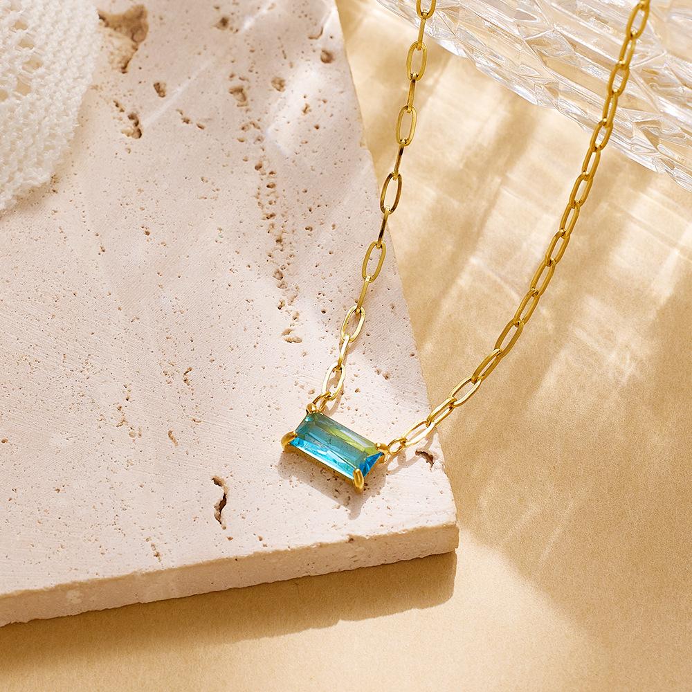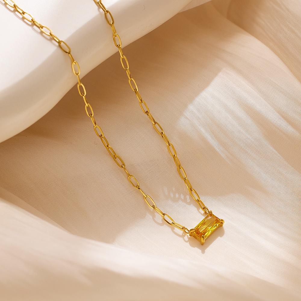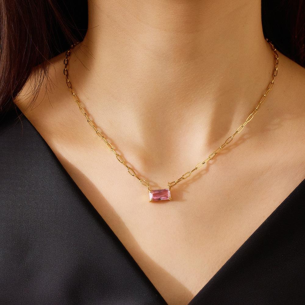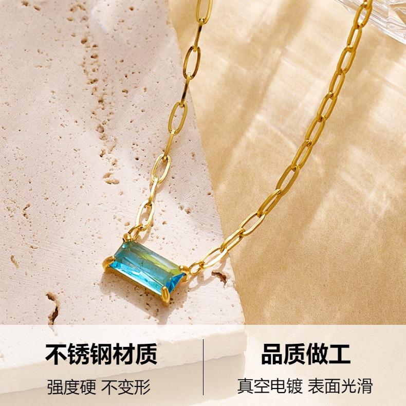 Collar de acero de titanio con diamantes de colores con incrustaciones de garra simple, estilo transfronterizo europeo y americano, de acero inoxidable de alto temperamento para mujer