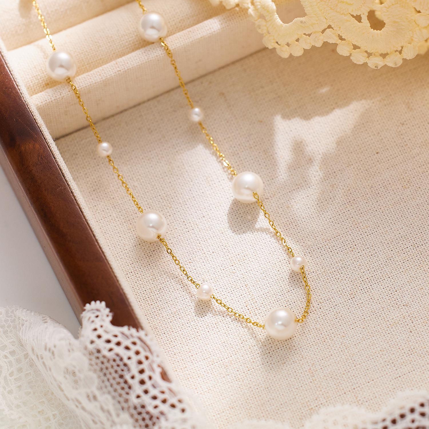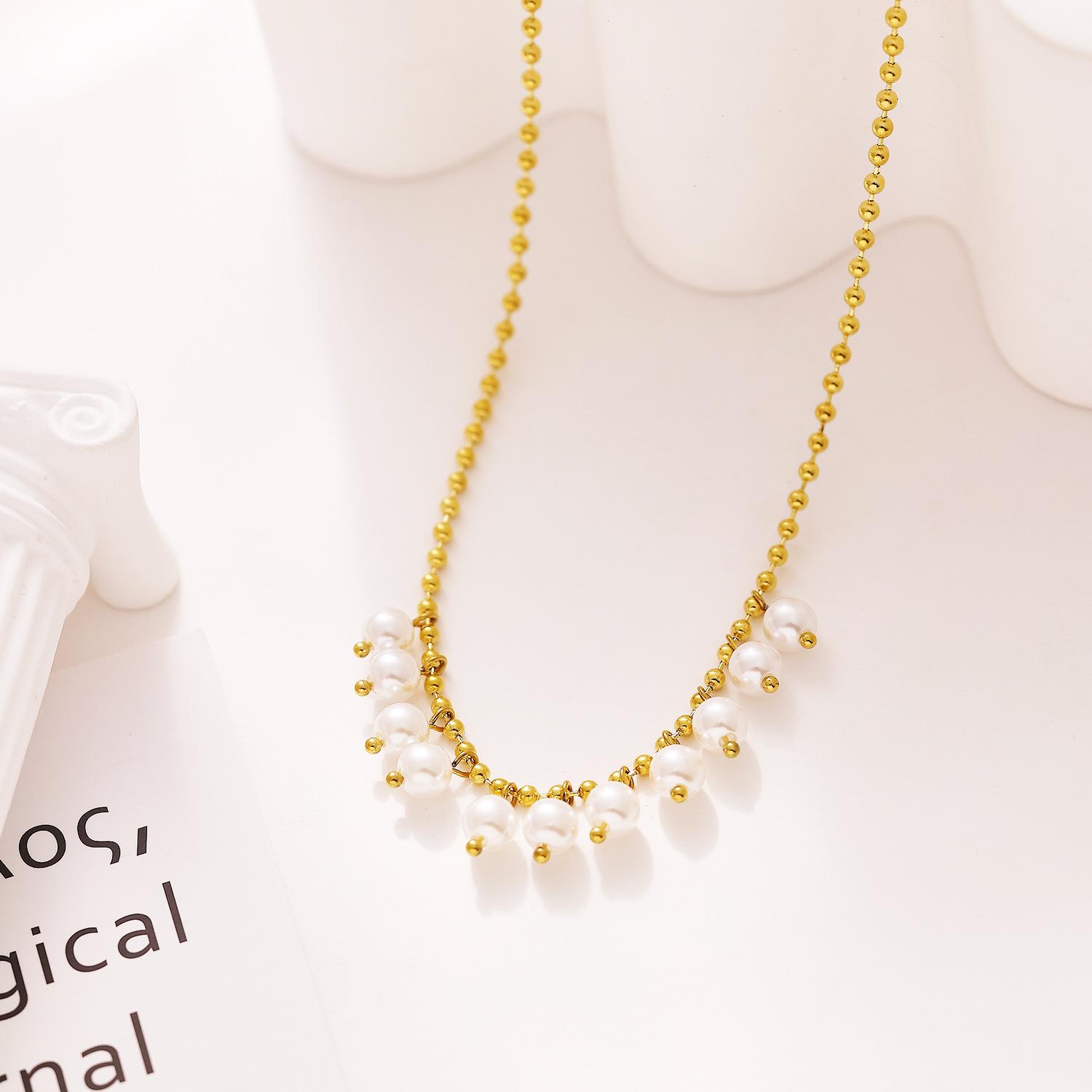 Collar de acero de titanio de la serie Pearl, estilo europeo y americano, cadena de clavícula de estilo frío, de alta calidad y venta transfronteriza.
