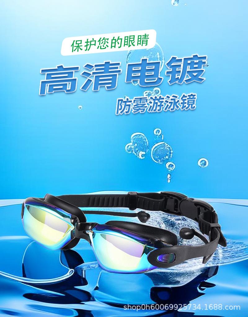 Gafas de natación de alta definición para adultos, populares en el extranjero, antivaho y galvanizadas, de silicona personalizadas, impermeables y resistentes al agua para hombres y mujeres.