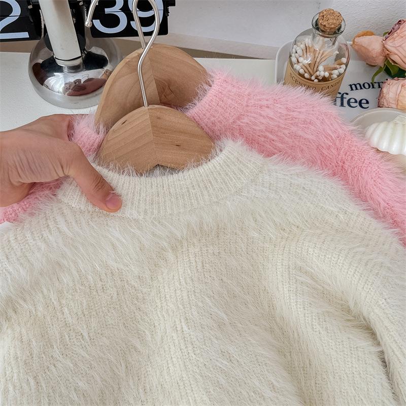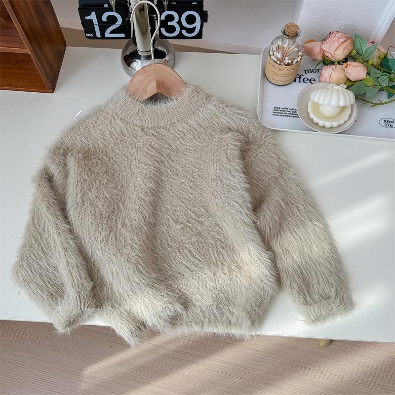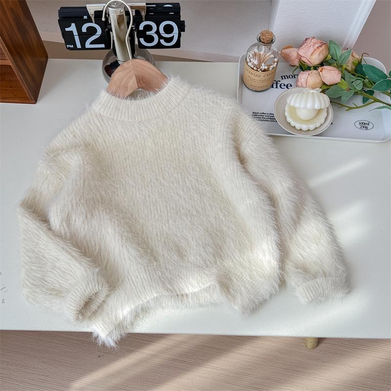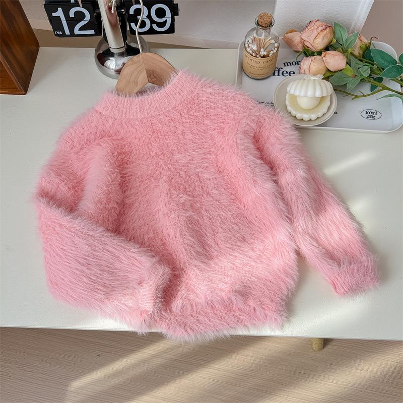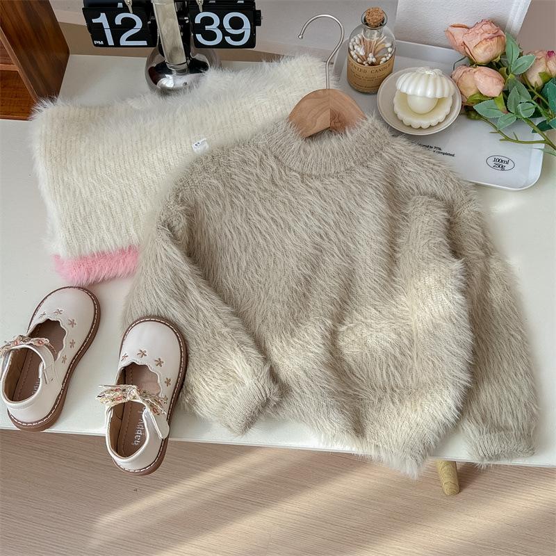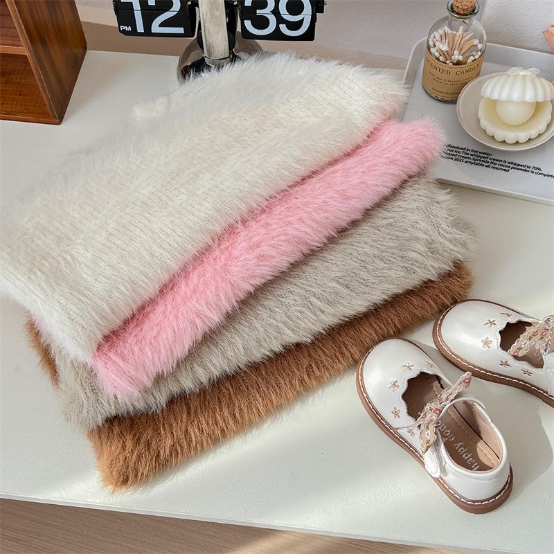 Tongxinguan 2024 Otoño e Invierno Nuevo Ropa para Niños Casual Niñas Estilo Coreano Color Puro Suéter de Visón