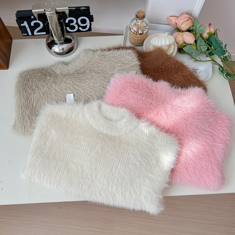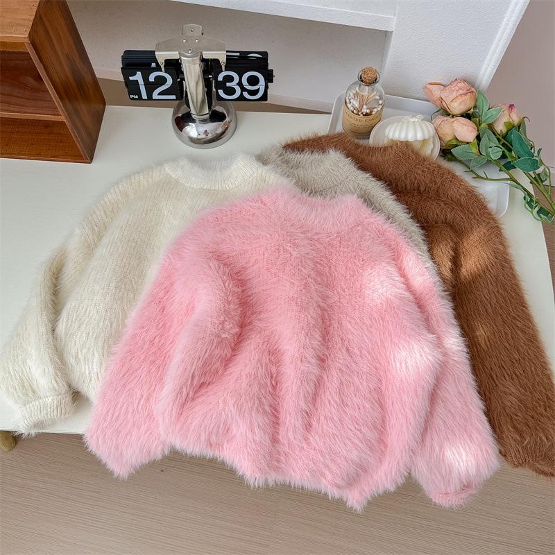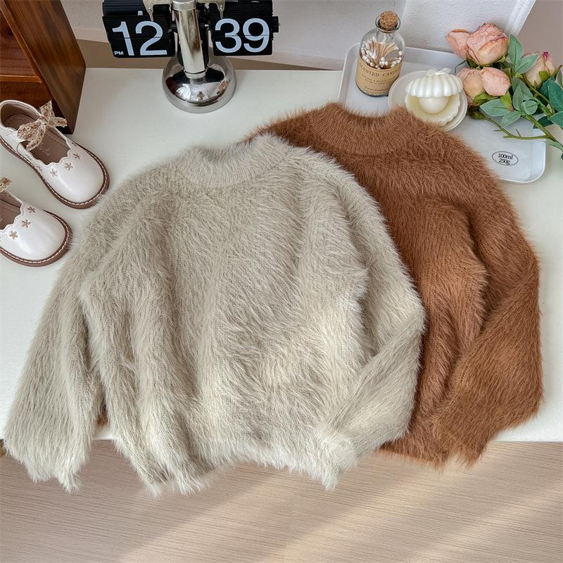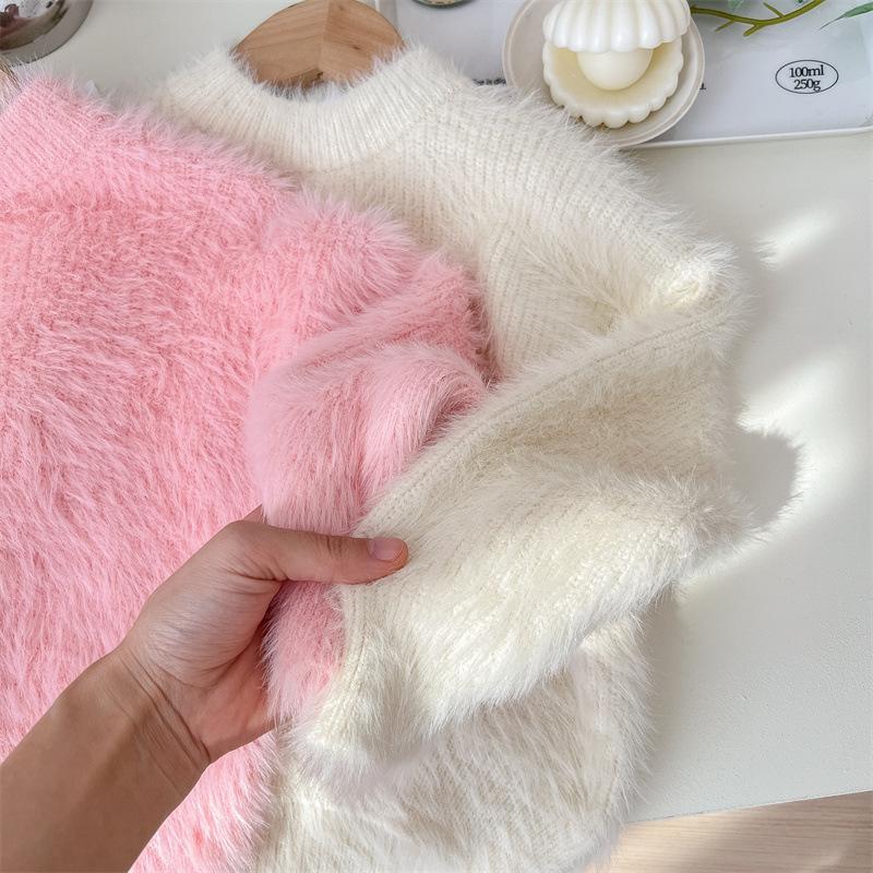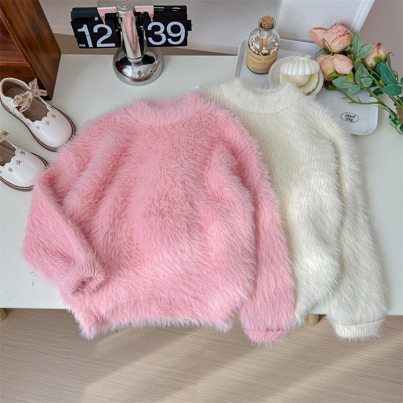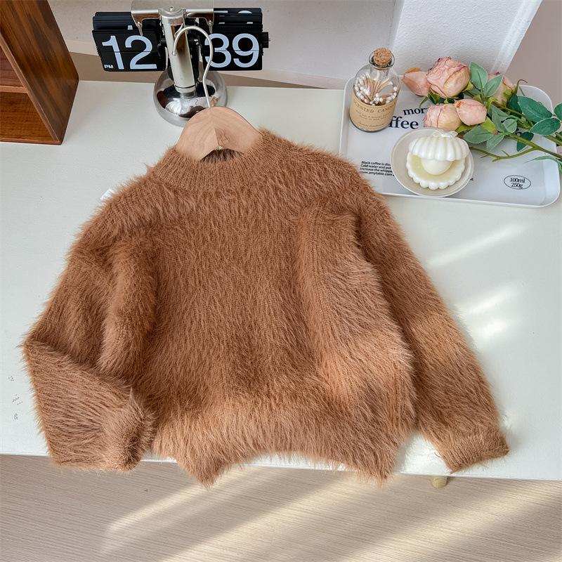 Tongxinguan 2024 Otoño e Invierno Nuevo Ropa para Niños Casual Niñas Estilo Coreano Color Puro Suéter de Visón