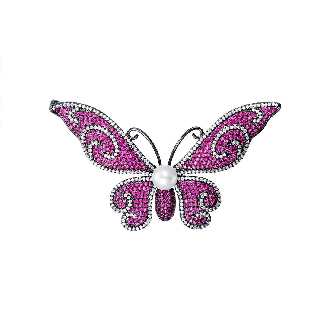 Broche de cobre con incrustaciones de circonitas, nuevo producto personalizado, a la moda, con ramillete de mariposa, accesorios de lujo para mujer, para traje, abrigo grande