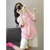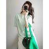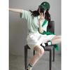 Traje deportivo casual fresco pequeño de estilo coreano para mujer 2025 Verano Nuevo Verde Holgado Manga Corta Shorts Conjunto de Dos Piezas