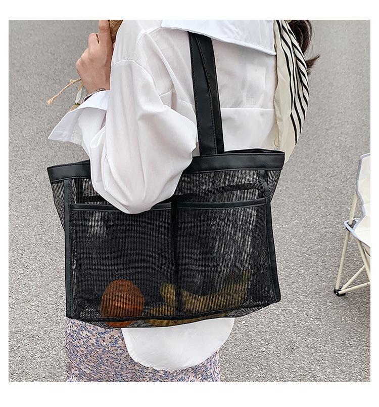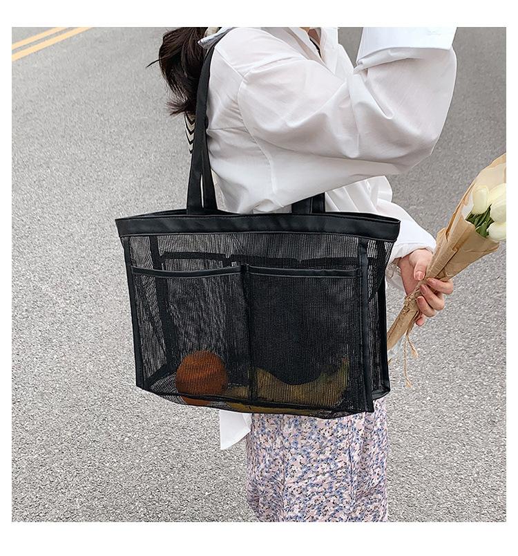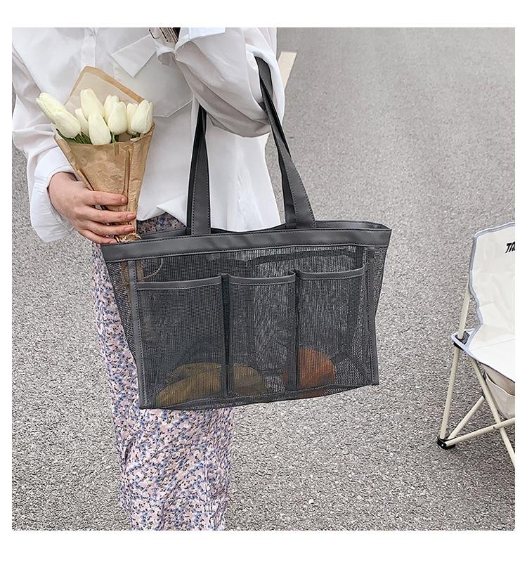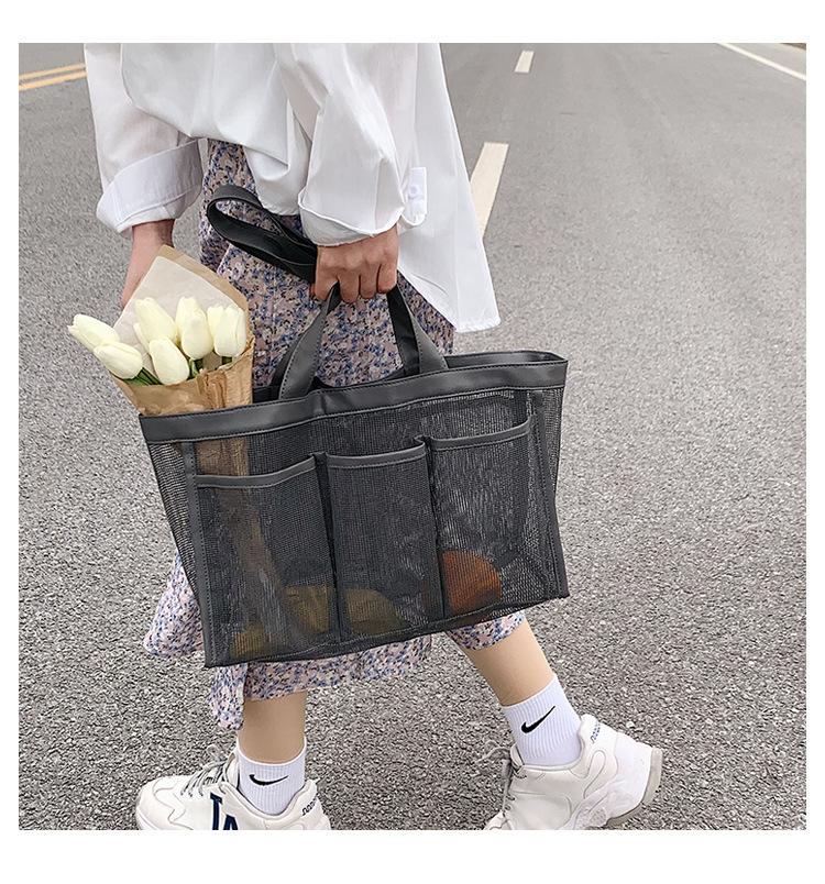 Bolsa de baño Bolsa de malla portátil para playa Bolsa de baño para natación Bolsa de malla para maquillaje Bolsa de almacenamiento Bolsa de aseo transparente