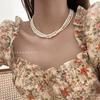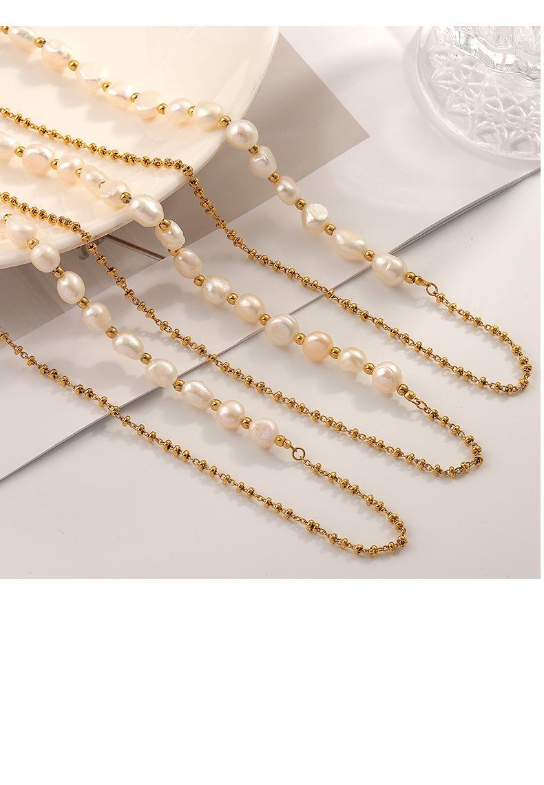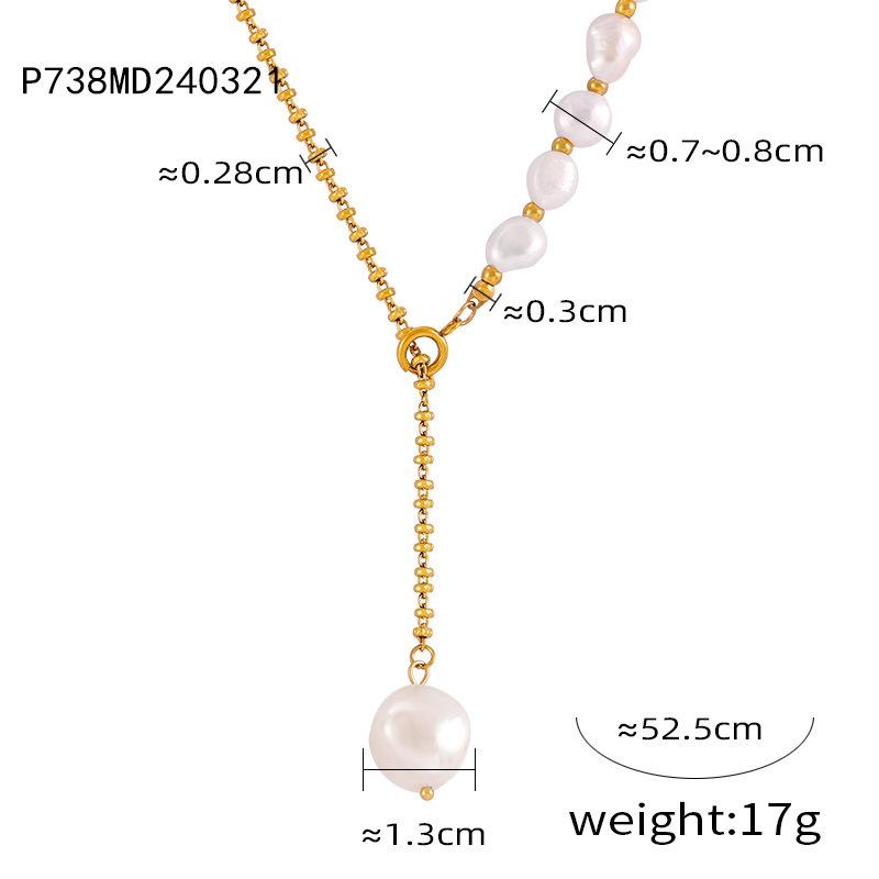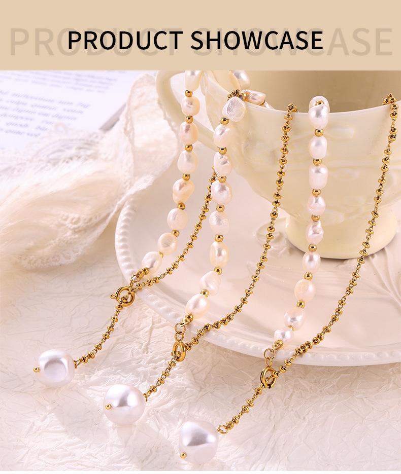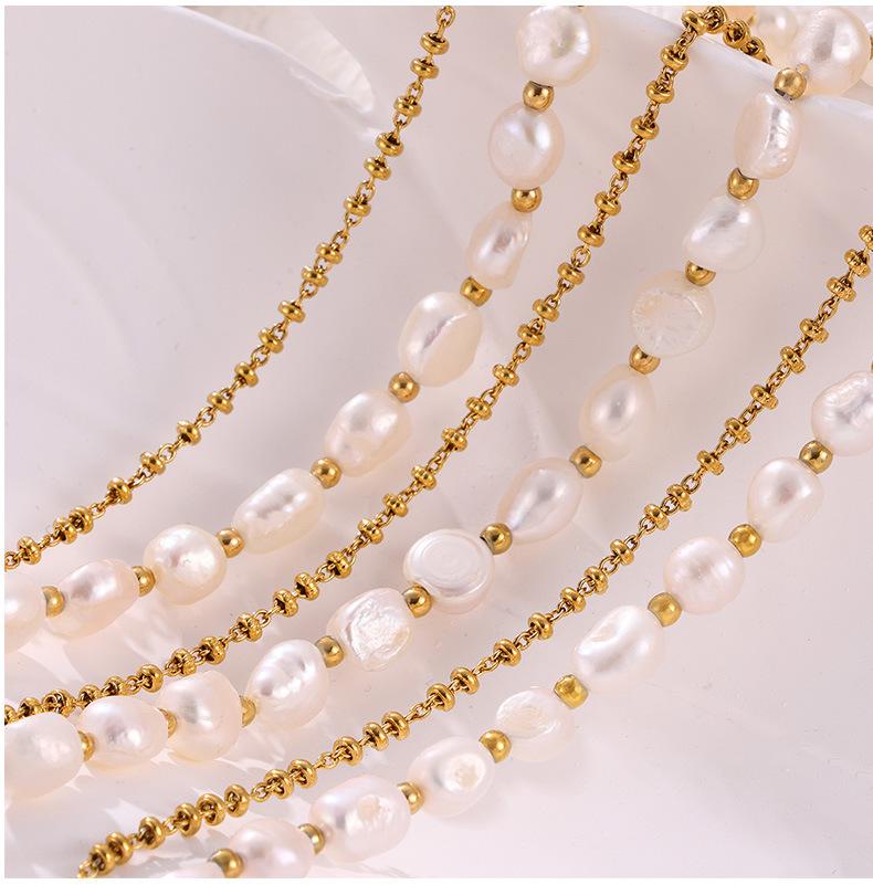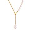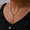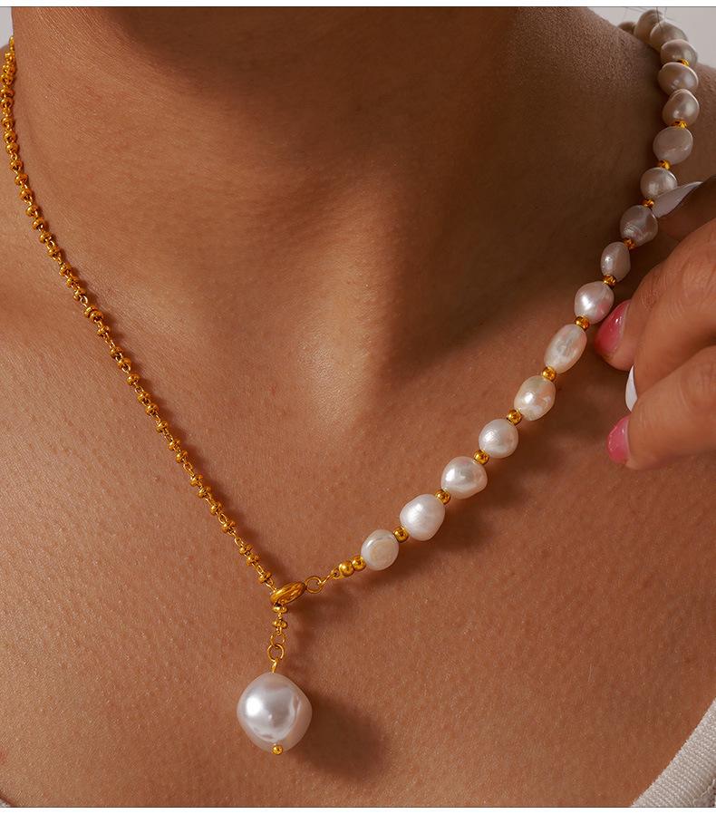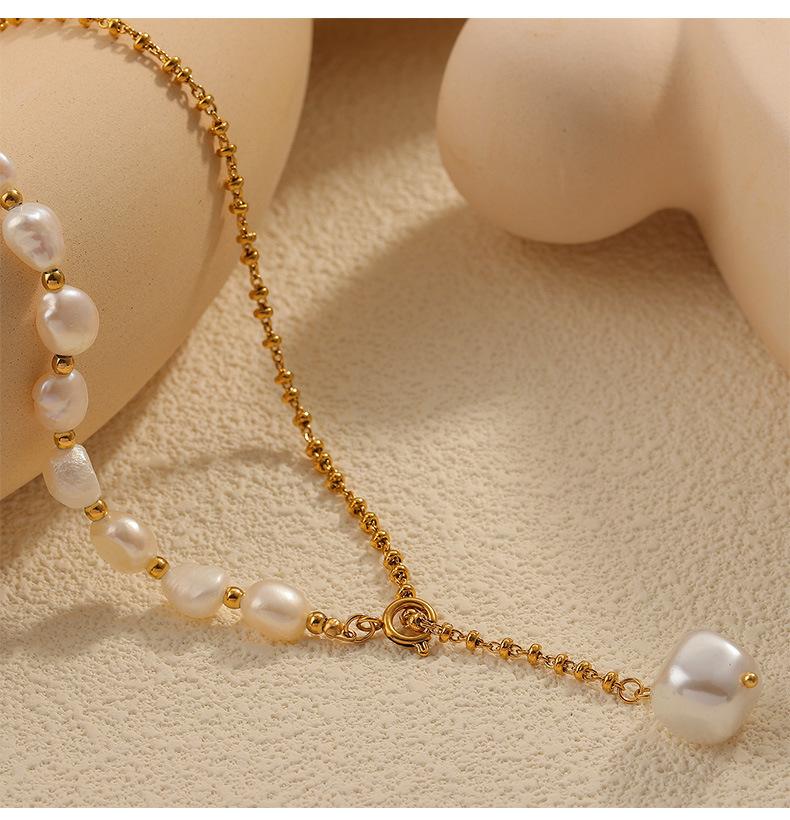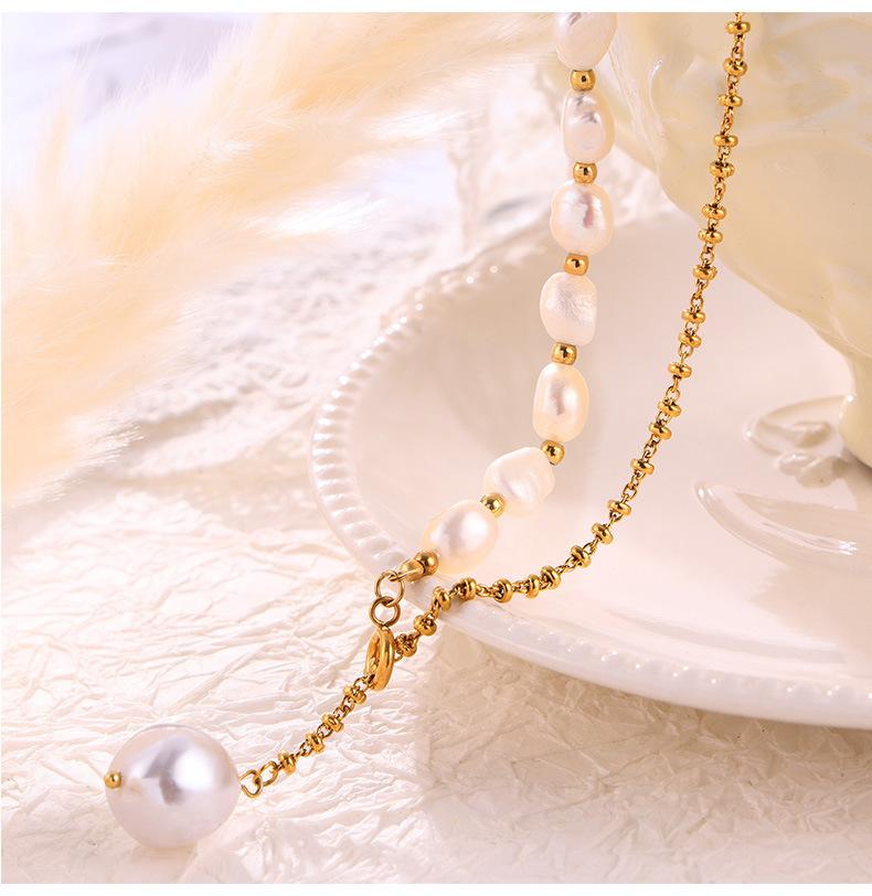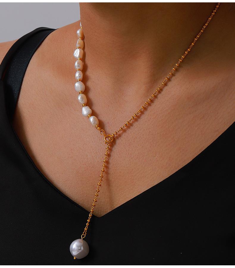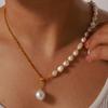 Elegante collar francés de acero de titanio con colgante de perla de agua dulce, joyería delicada y de temperamento suave, con hebilla de diseño, cadena de clavícula.
