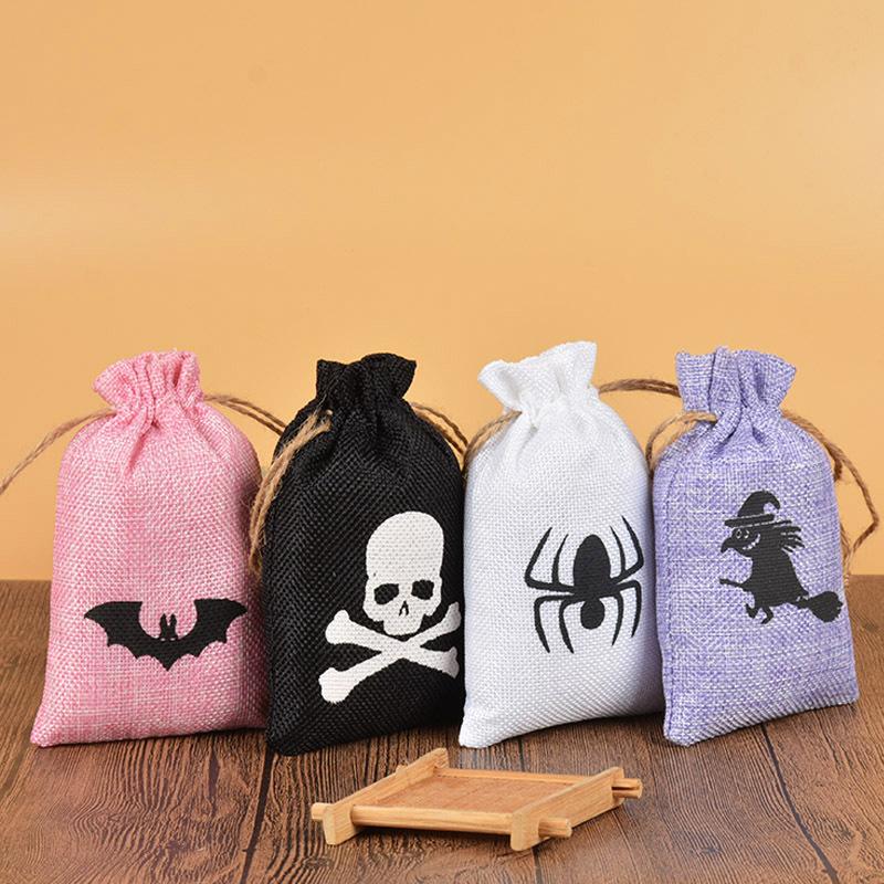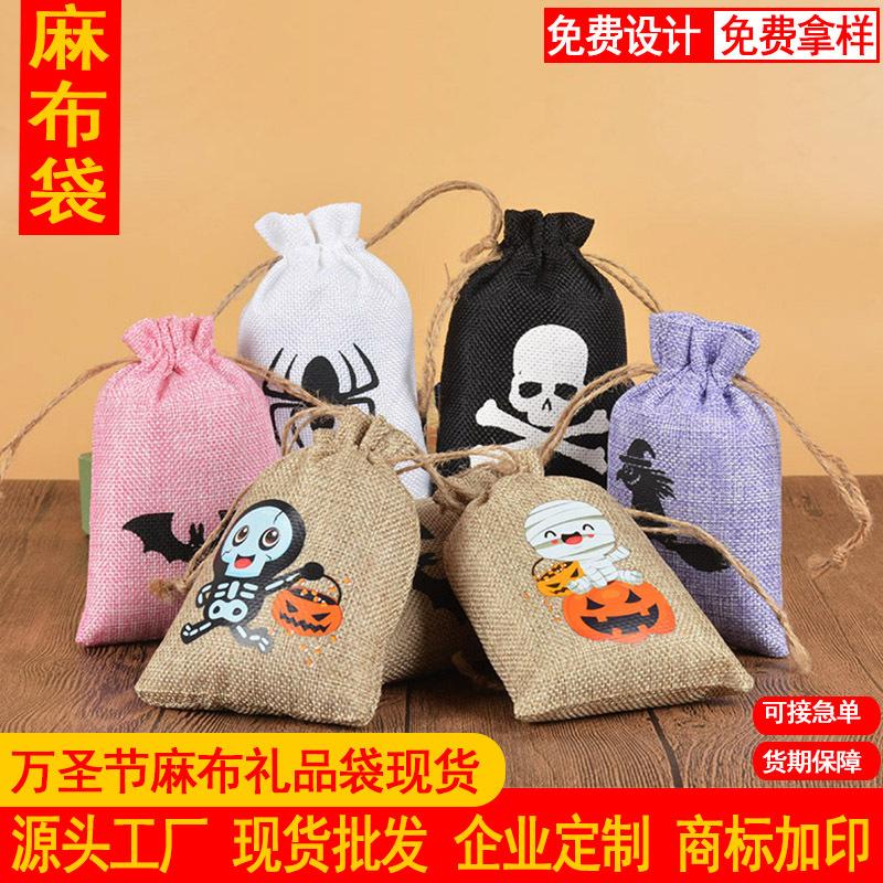 Bolsa de regalo de lino con cordón para Halloween, venta al por mayor, para niños