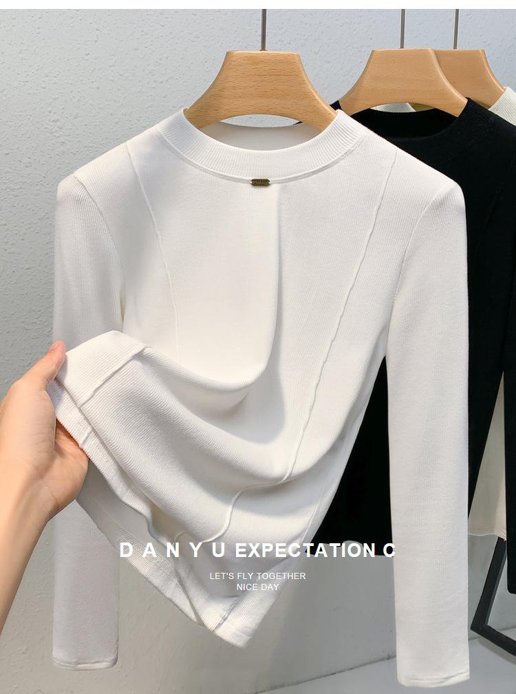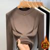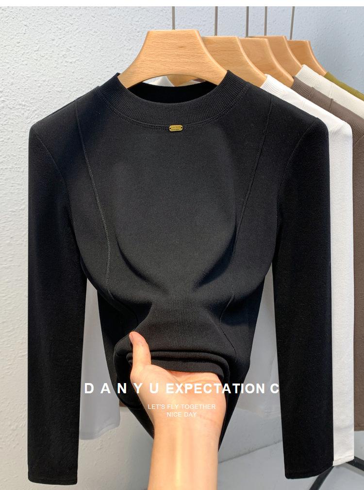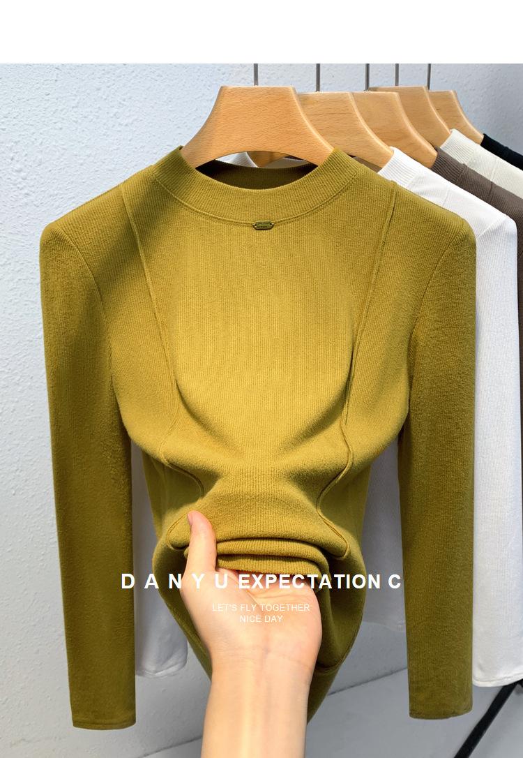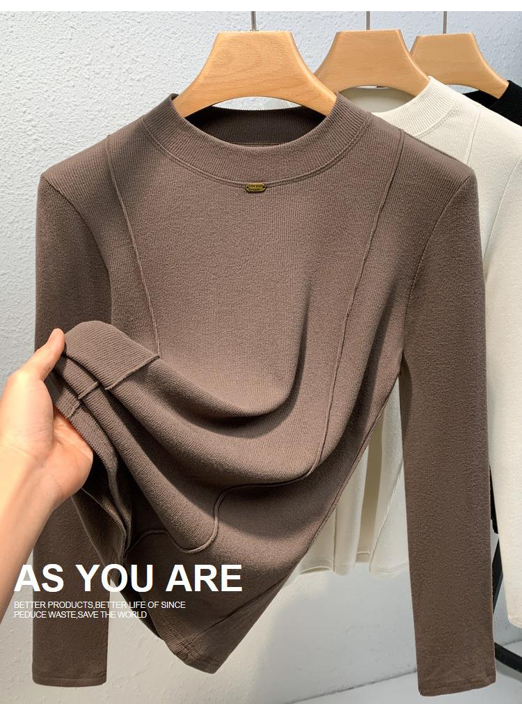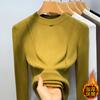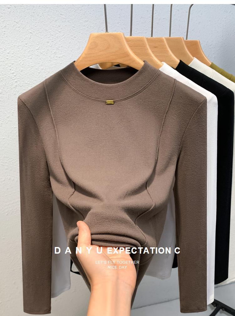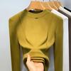 2023 Nueva camiseta de hilo, camisa de fondo para mujer, otoño e invierno, interior de manga larga con forro polar, gruesa, ajustada, estilo occidental, cálida.