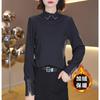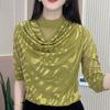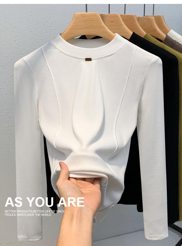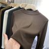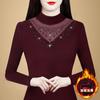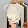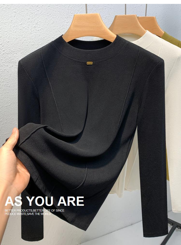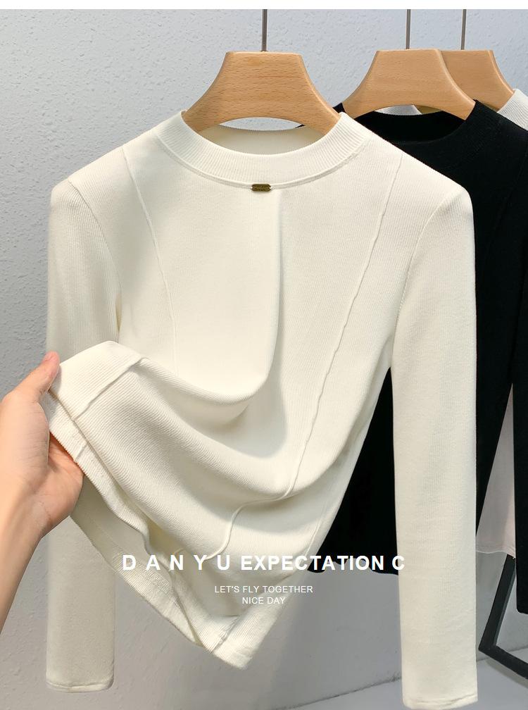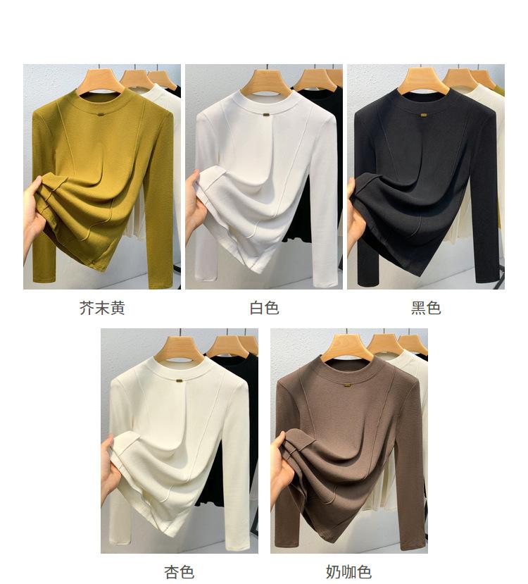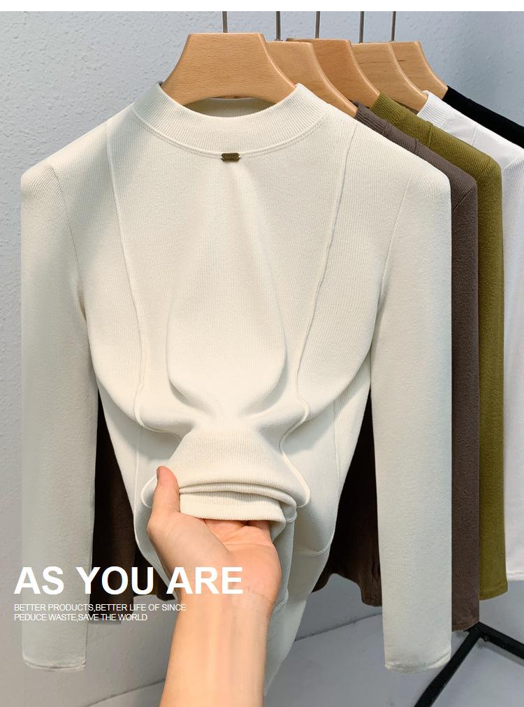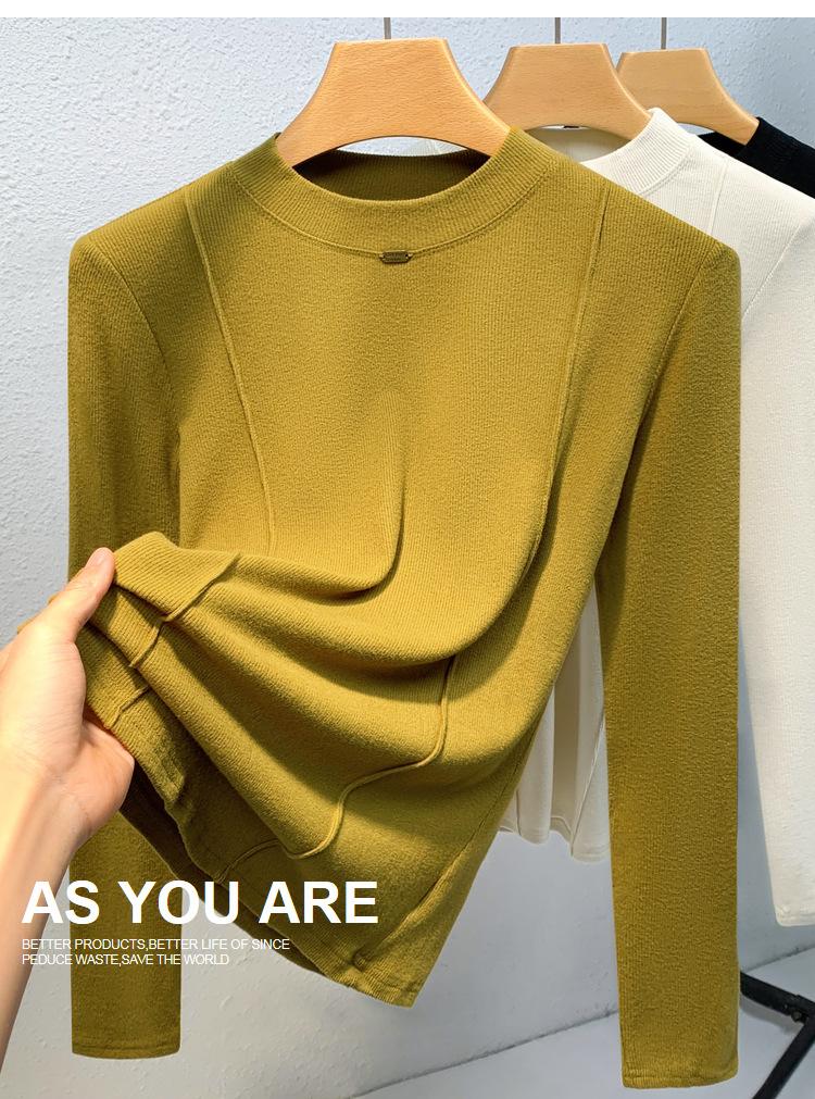 2023 Nueva camiseta de hilo, camisa de fondo para mujer, otoño e invierno, interior de manga larga con forro polar, gruesa, ajustada, estilo occidental, cálida.
