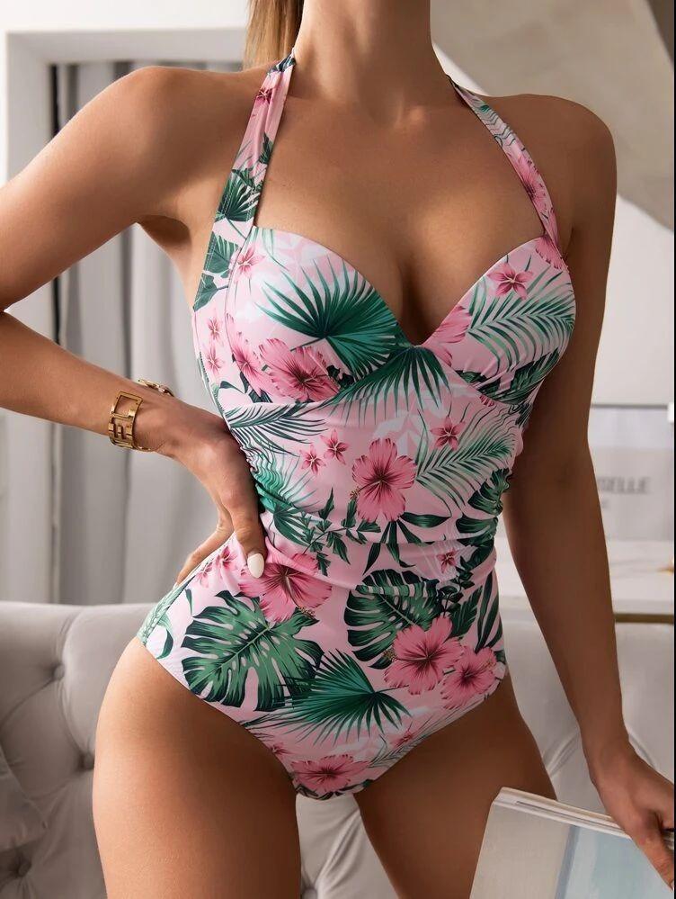 2025 Nuevo Estampado Amazon Conservador Una Pieza Halter Una Pieza Bolsa Dura Europeo y Americano Sexy Transfronterizo Comercio Exterior