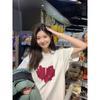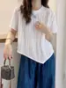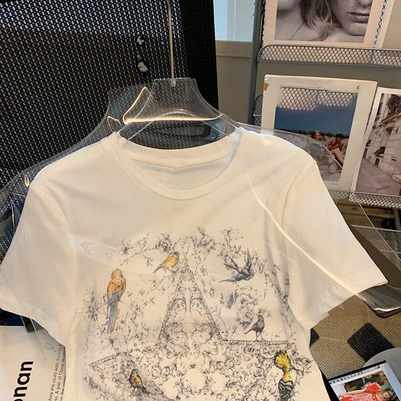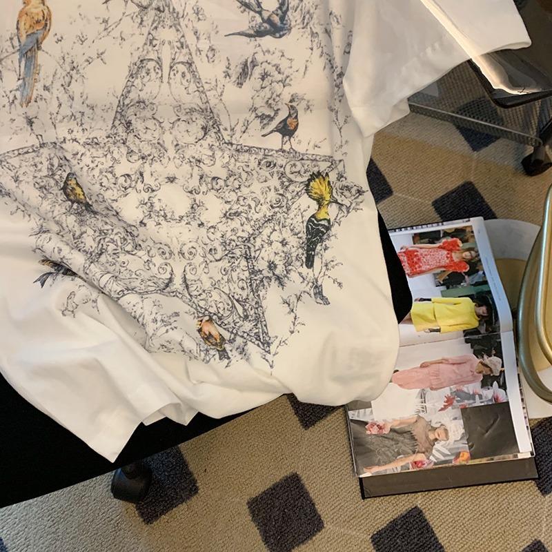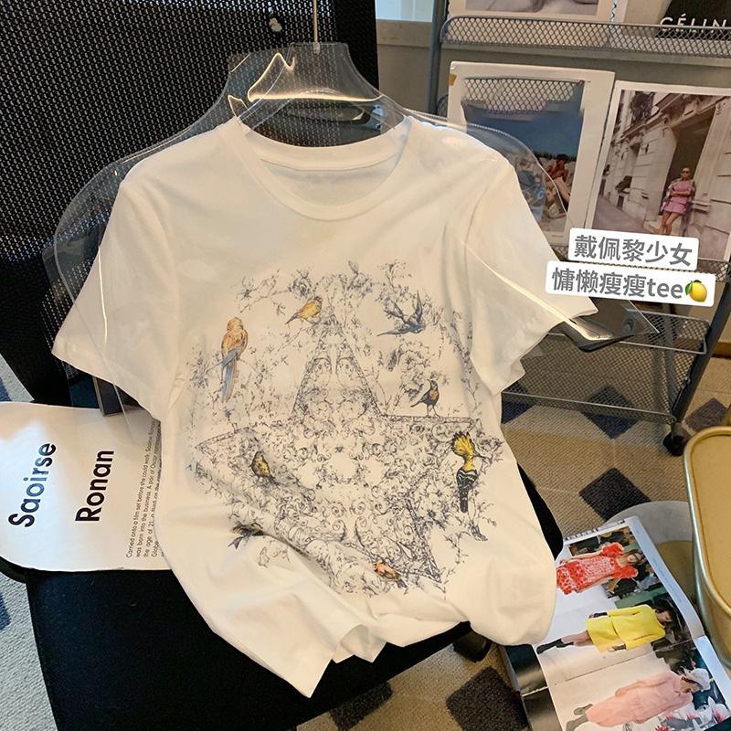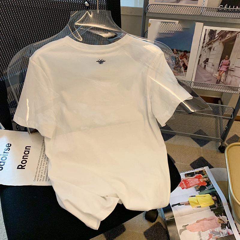 Camiseta Blanca de Algodón Puro con Cuello para Mujer 2024 Verano Nuevo Estilo Coreano Holgada Creativa Estampada Casual Top para Mujer
