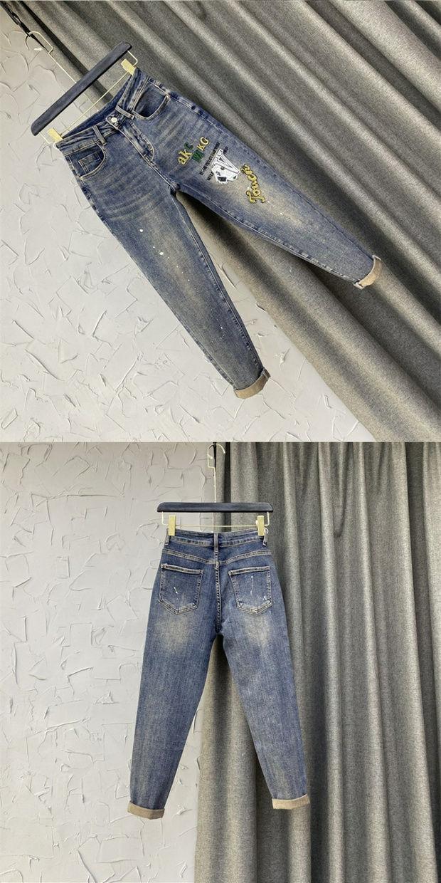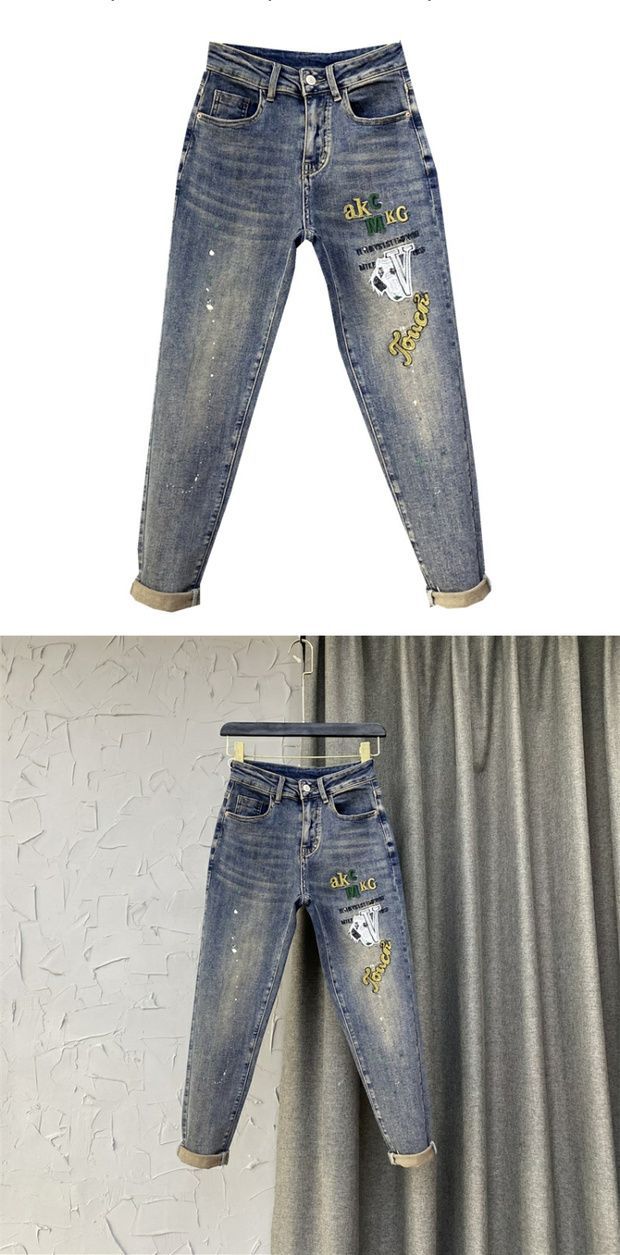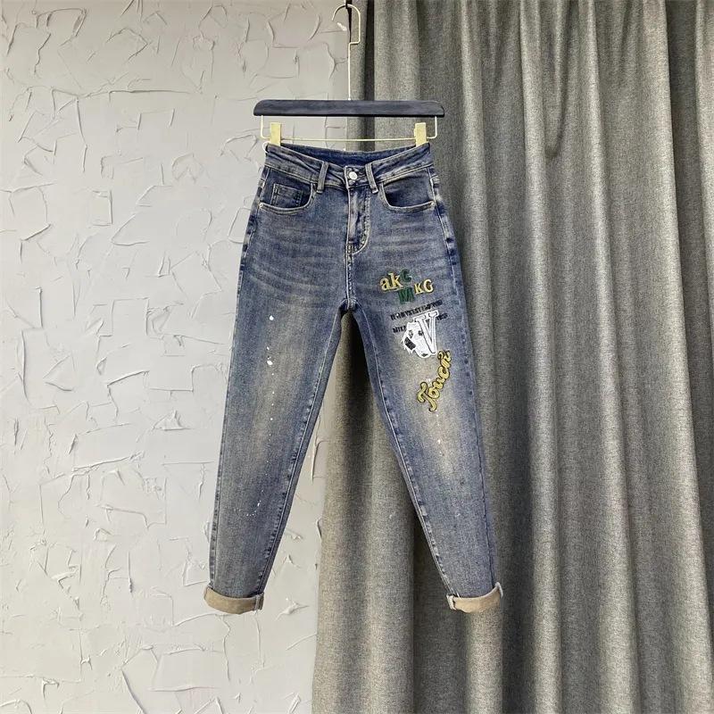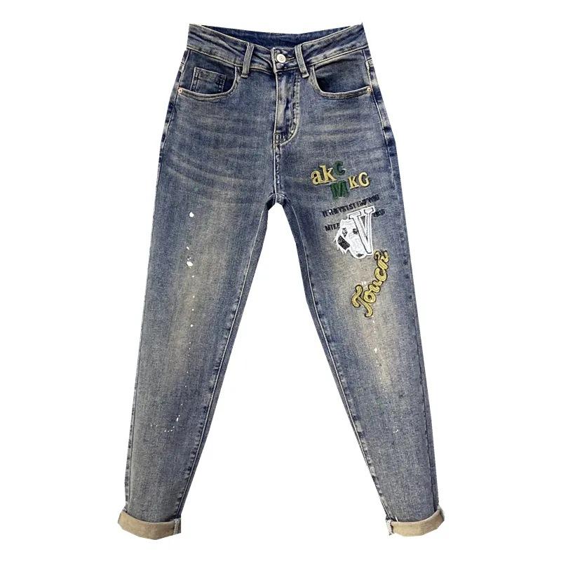 Jeans Vintage Bordados con Agujeros Azules para Mujer, Nuevos, con Letras, Slim, Tipo Harem, Cintura Alta, Pie Pequeño, Jeans Daddy