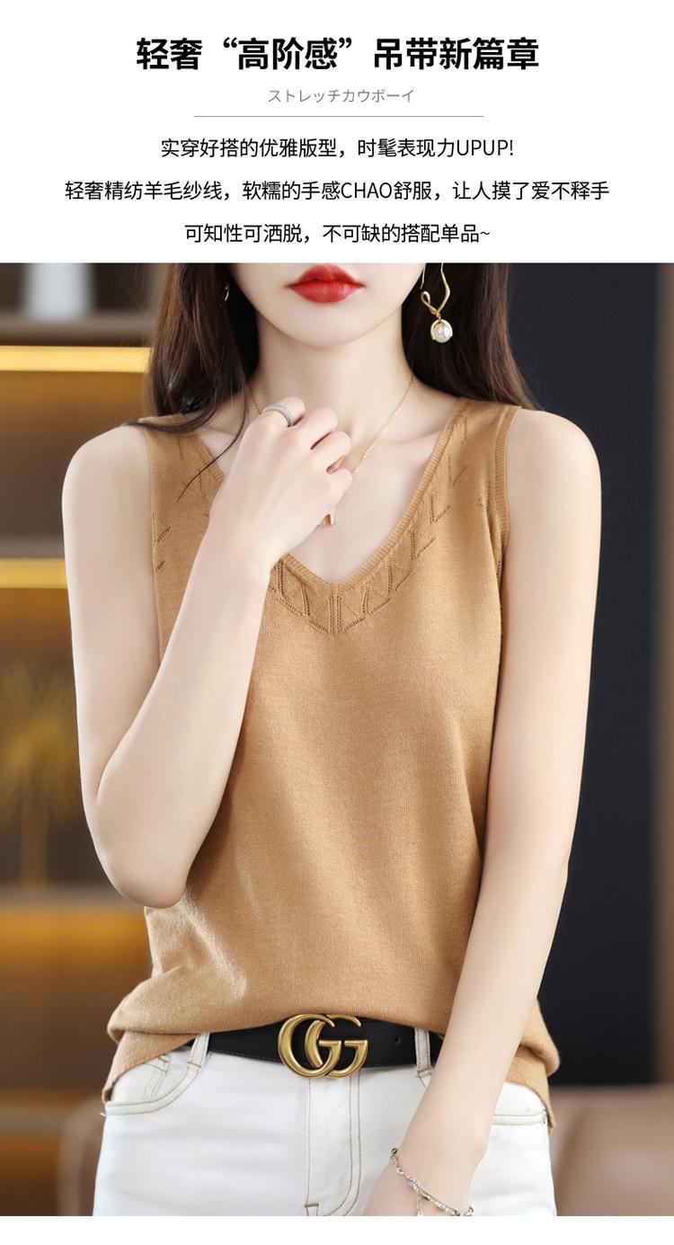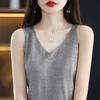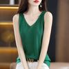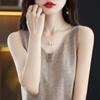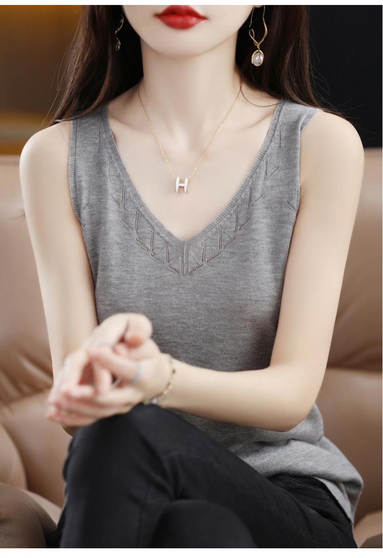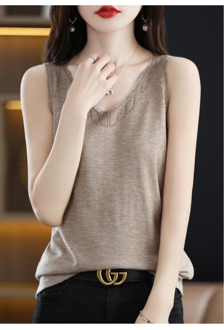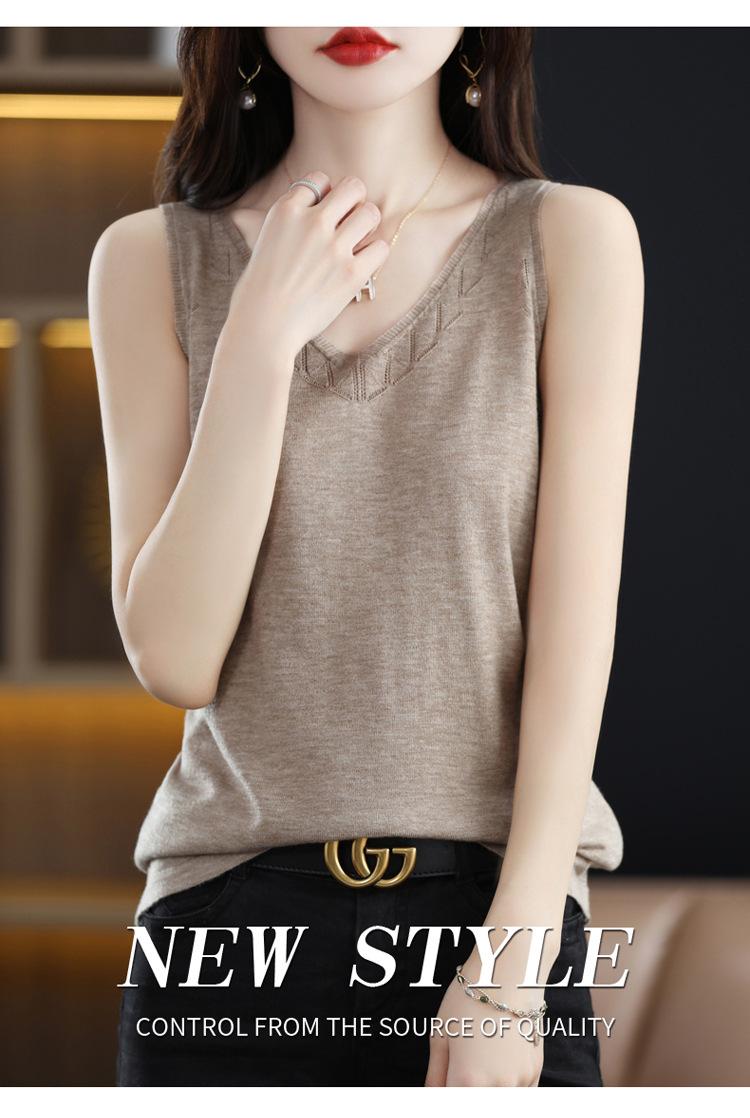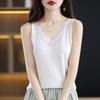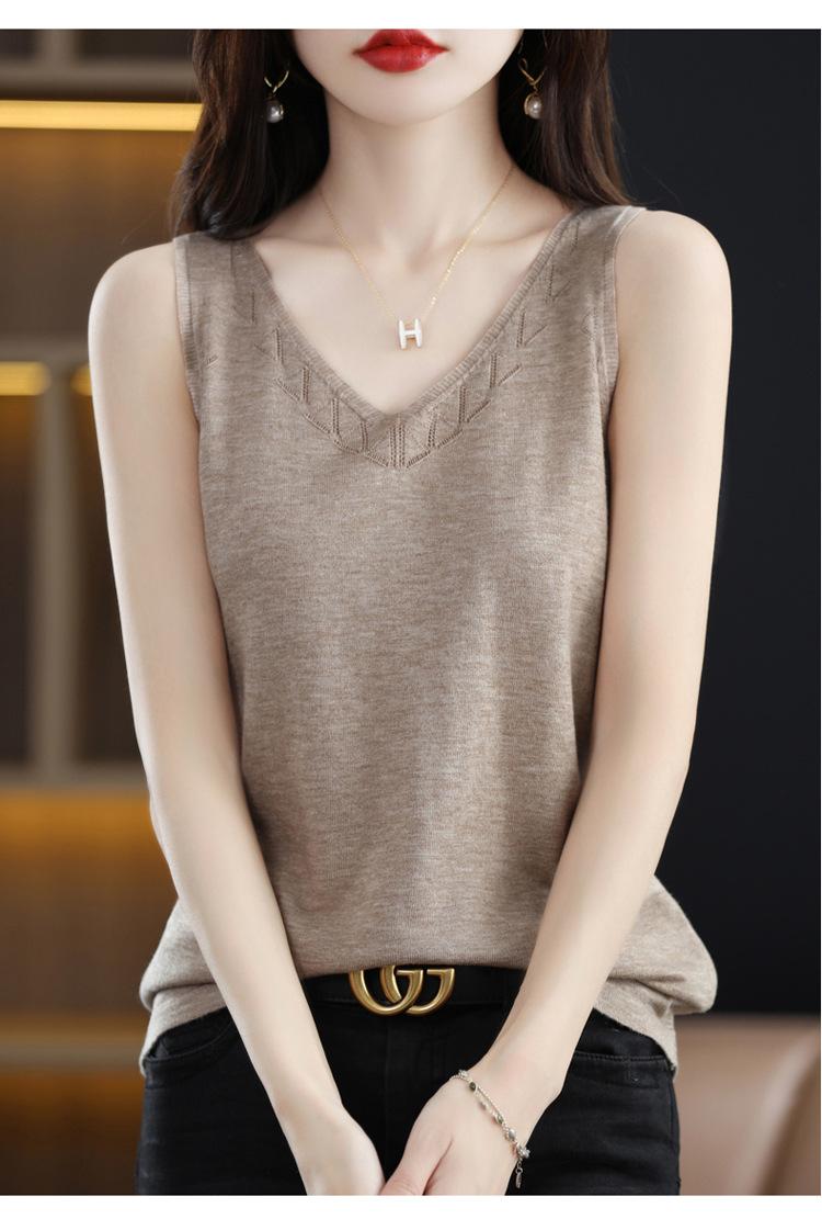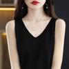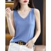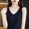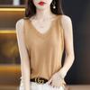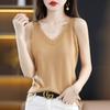 Chaleco de punto sin mangas de lana 100% para mujer, camisola con cuello en V, corta, fina y pequeña, para primavera y verano