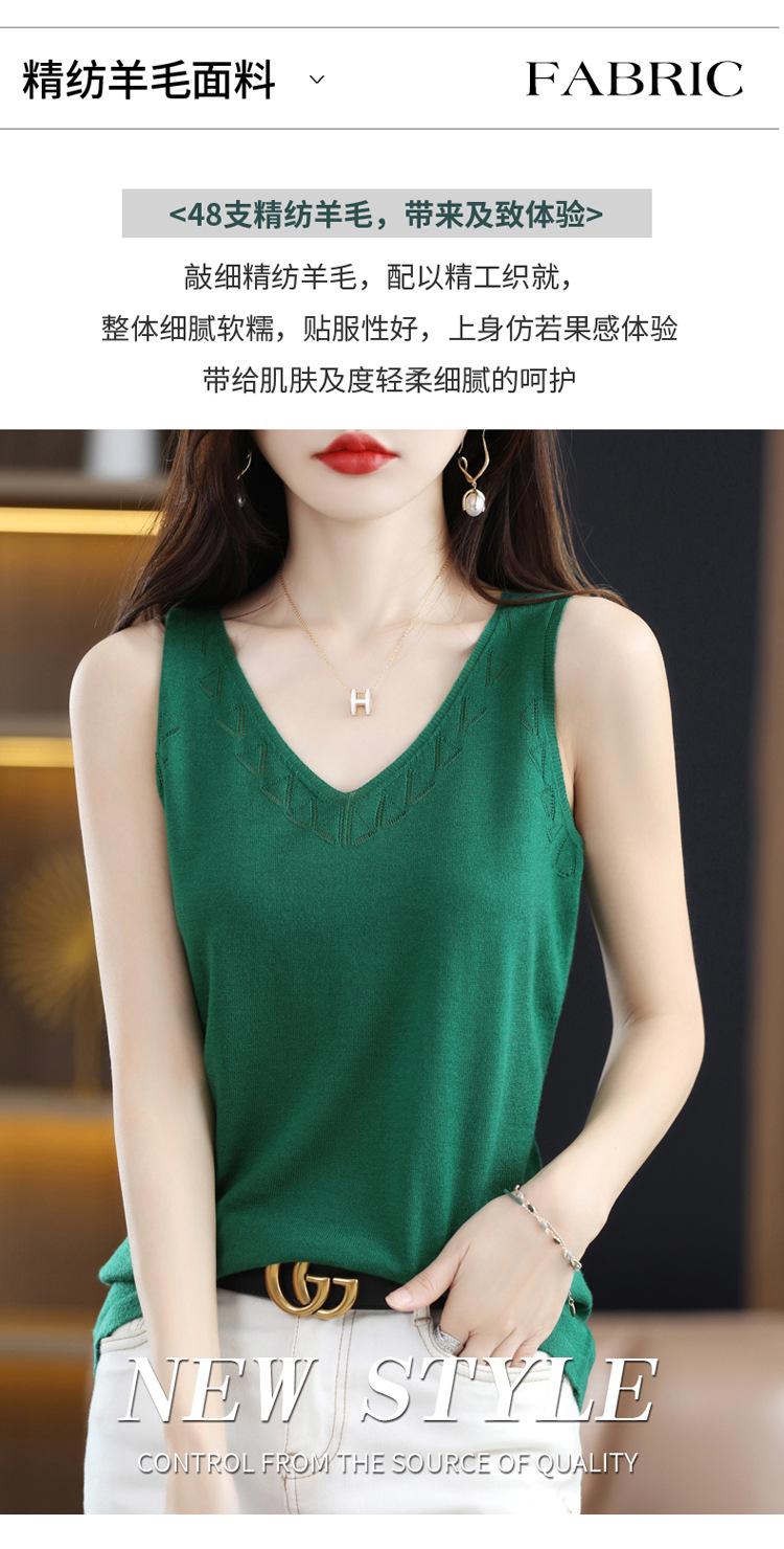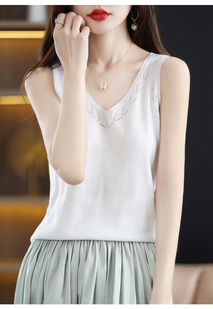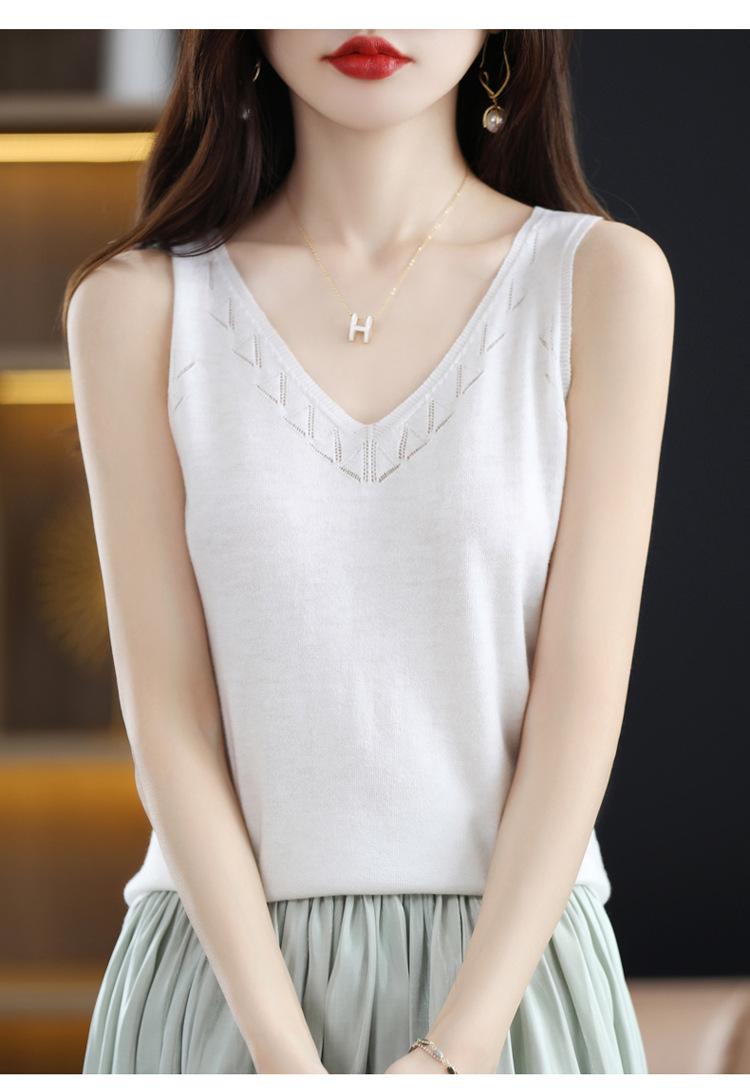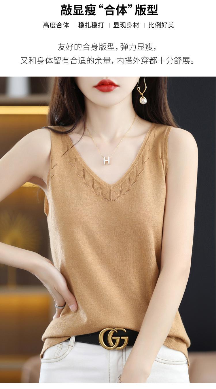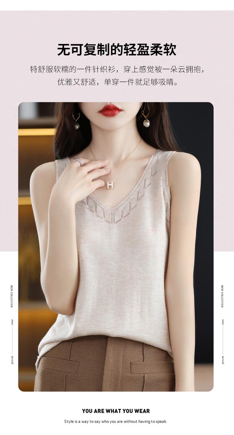 Chaleco de punto sin mangas de lana 100% para mujer, camisola con cuello en V, corta, fina y pequeña, para primavera y verano