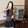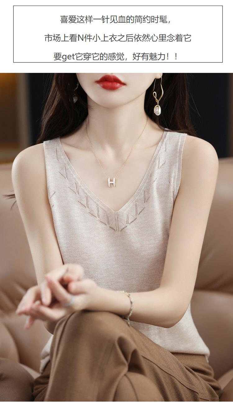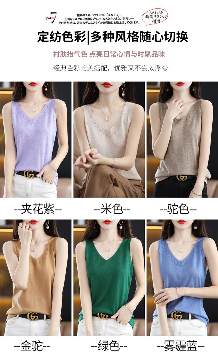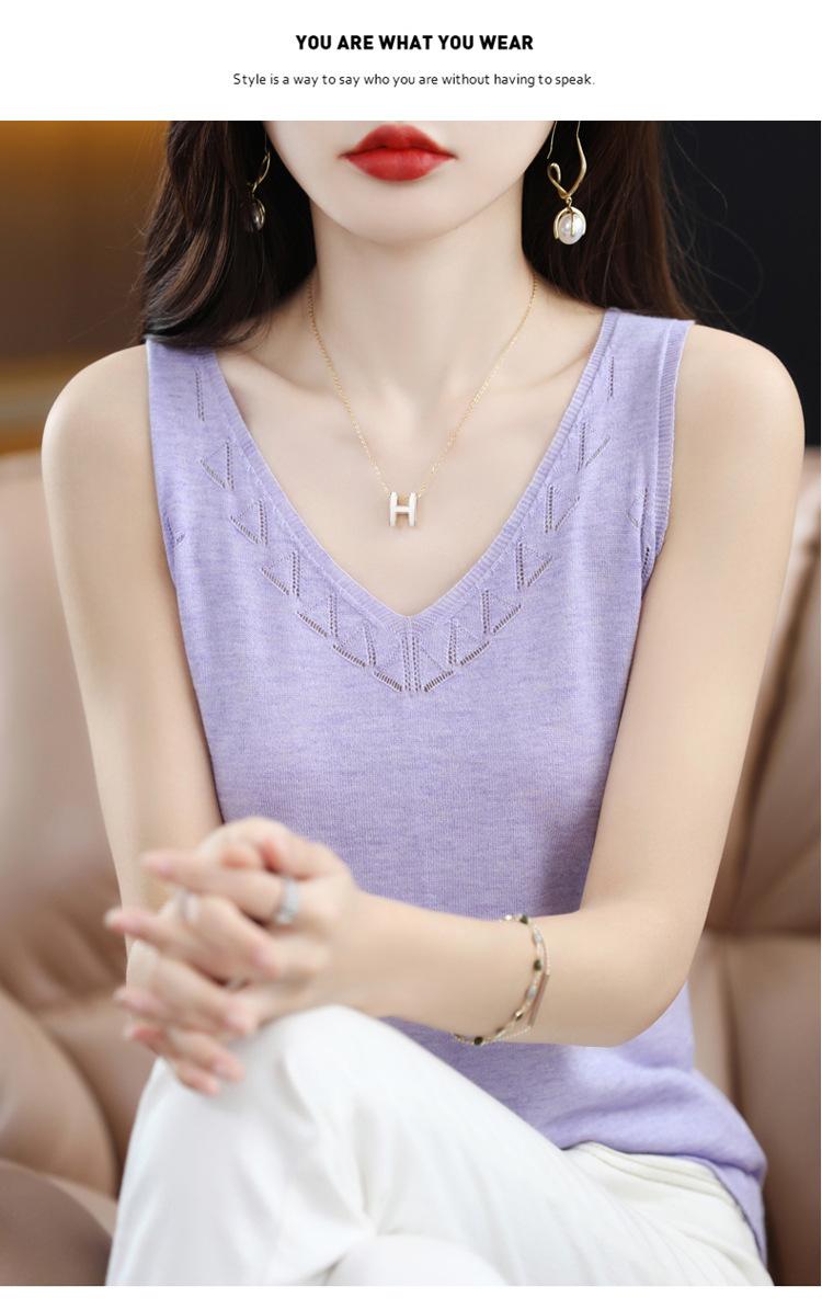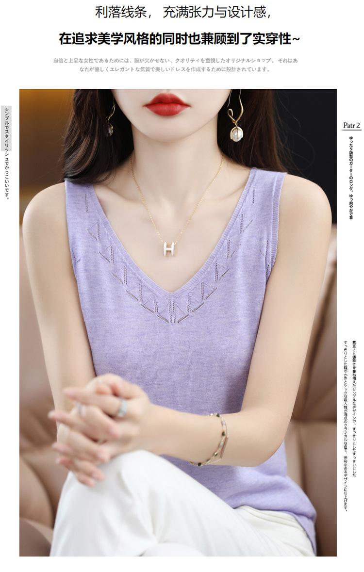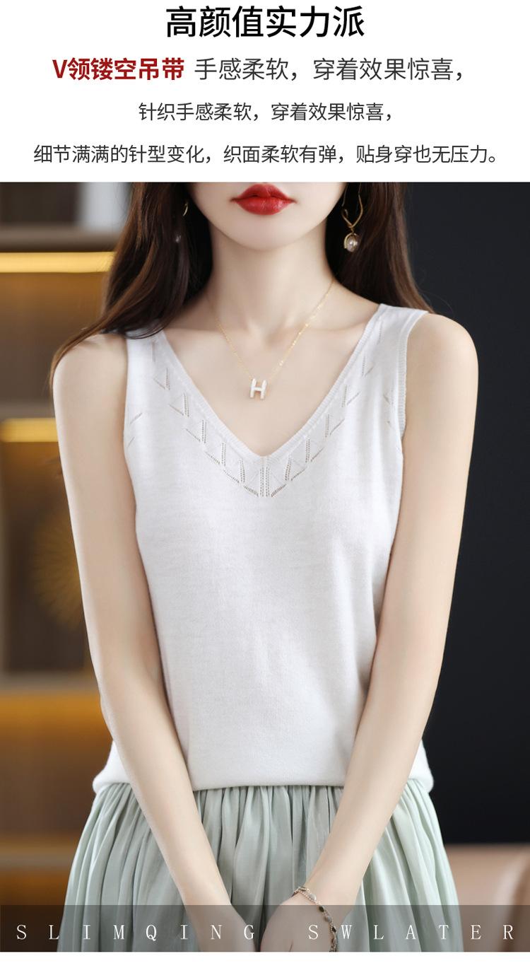 Chaleco de punto sin mangas de lana 100% para mujer, camisola con cuello en V, corta, fina y pequeña, para primavera y verano