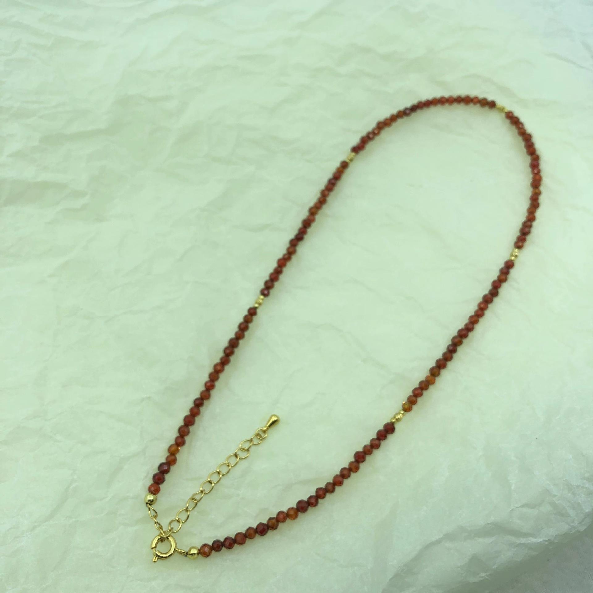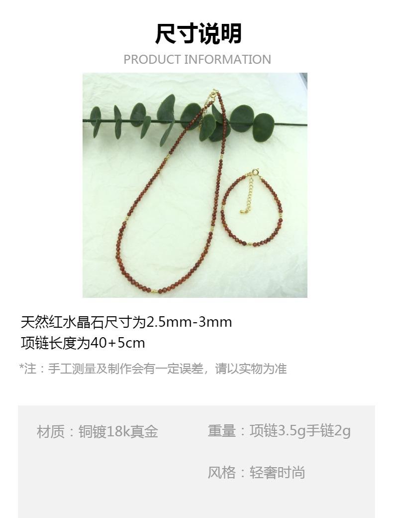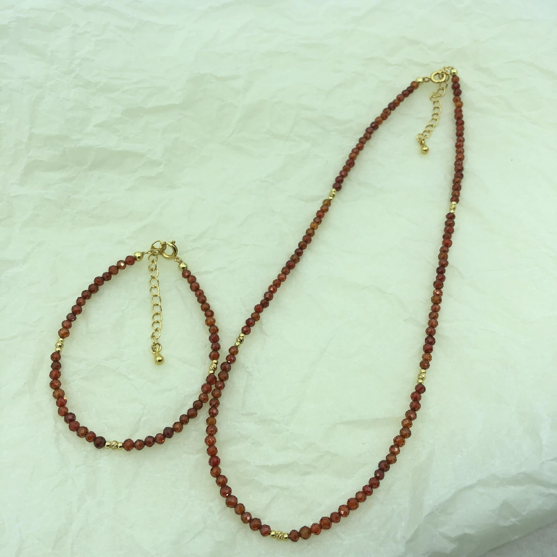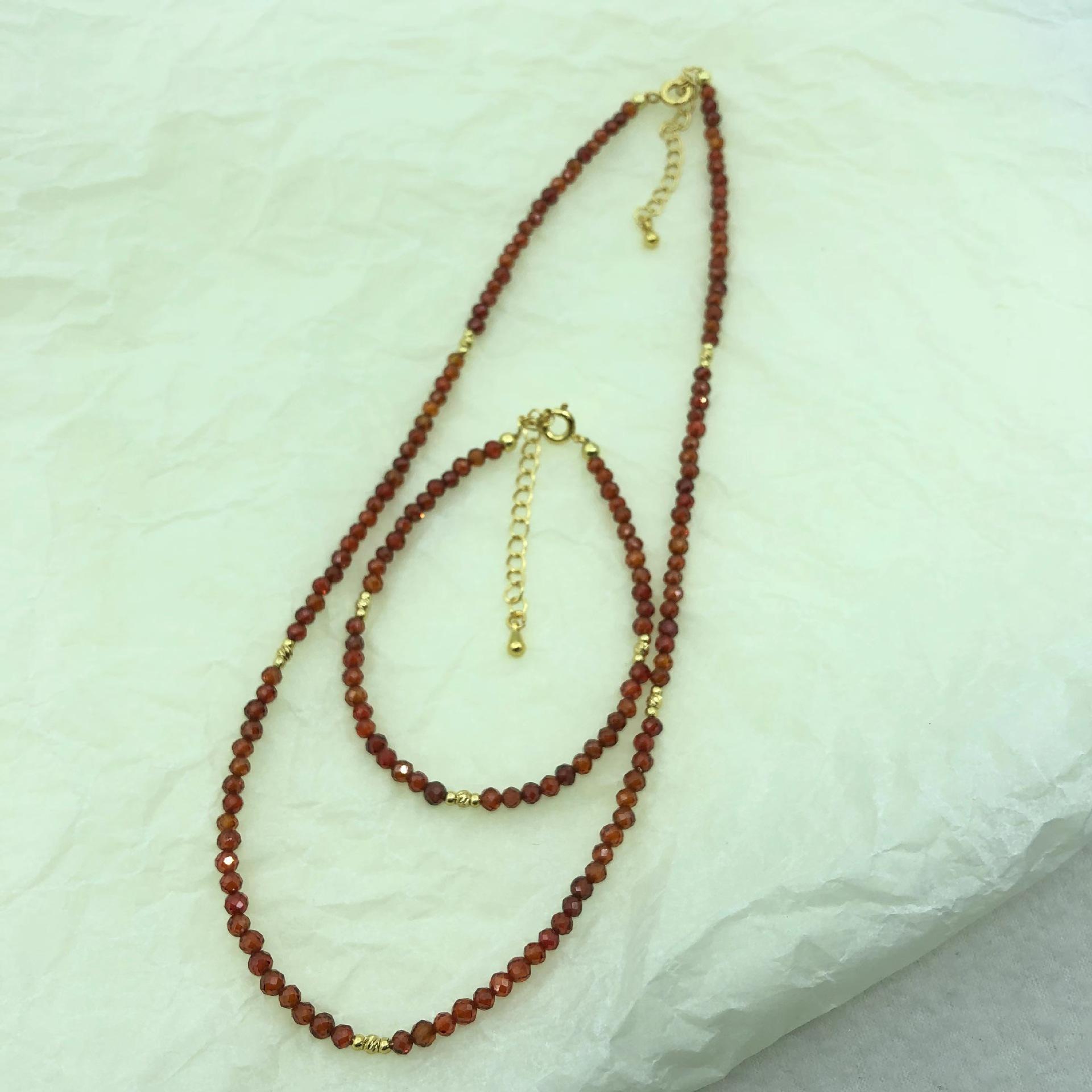 Natural red crystal stone necklace 40 + 5cm, Natural red crystal stone bracelet 40 + 5cm