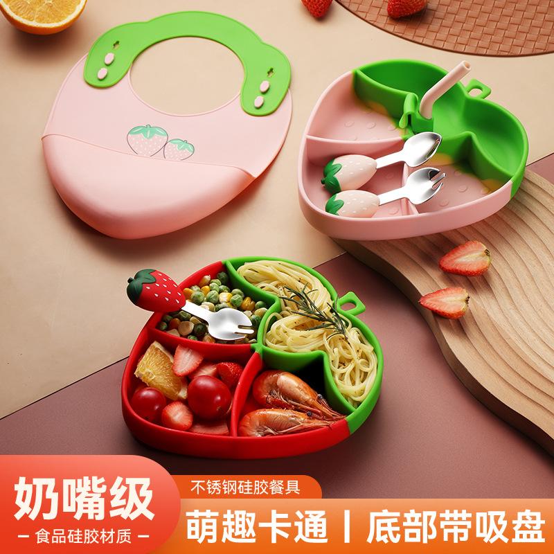 Set de Plato de Cena de Silicona de Fresa
