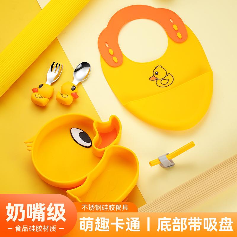Set de plato de cena de silicona de patito amarillo