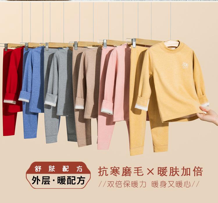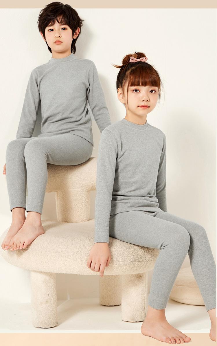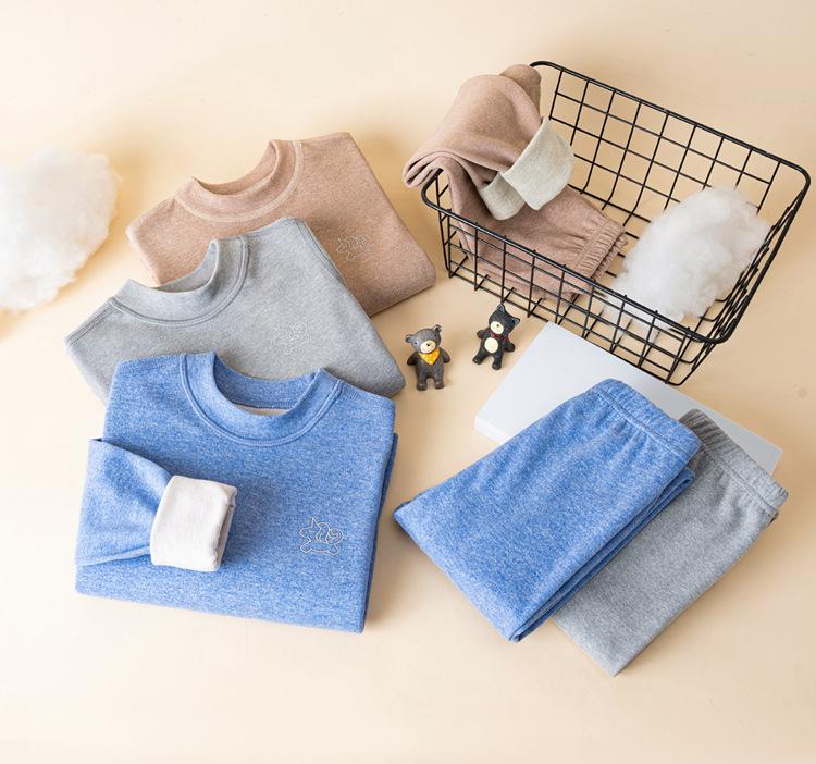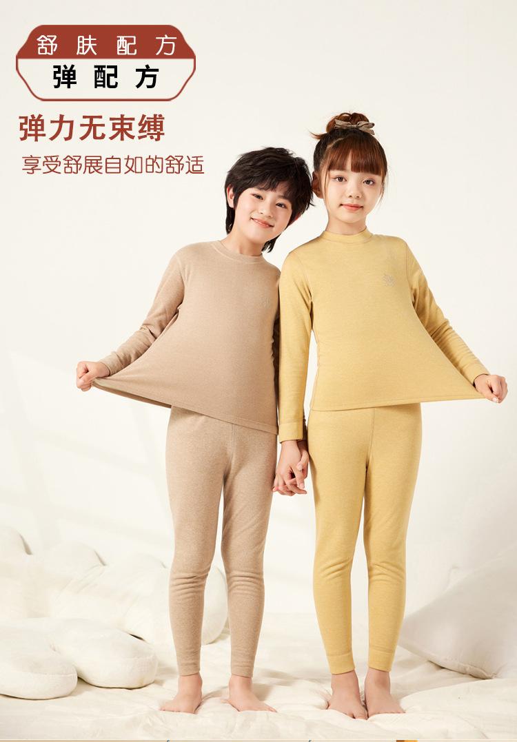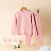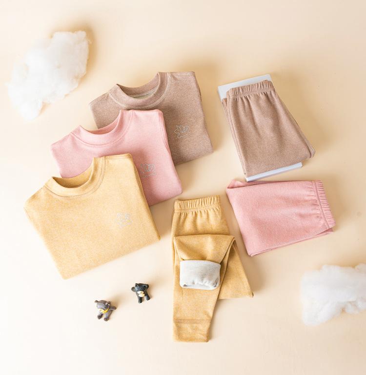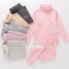 Traje de cuello alto de seda y lana para niños de otoño e invierno, ropa de hogar para niños y niñas, ropa de otoño gruesa y cálida con forro polar, pantalones largos