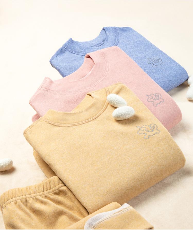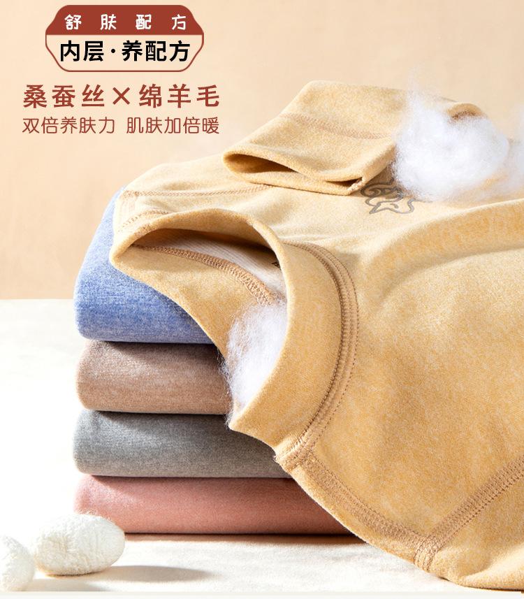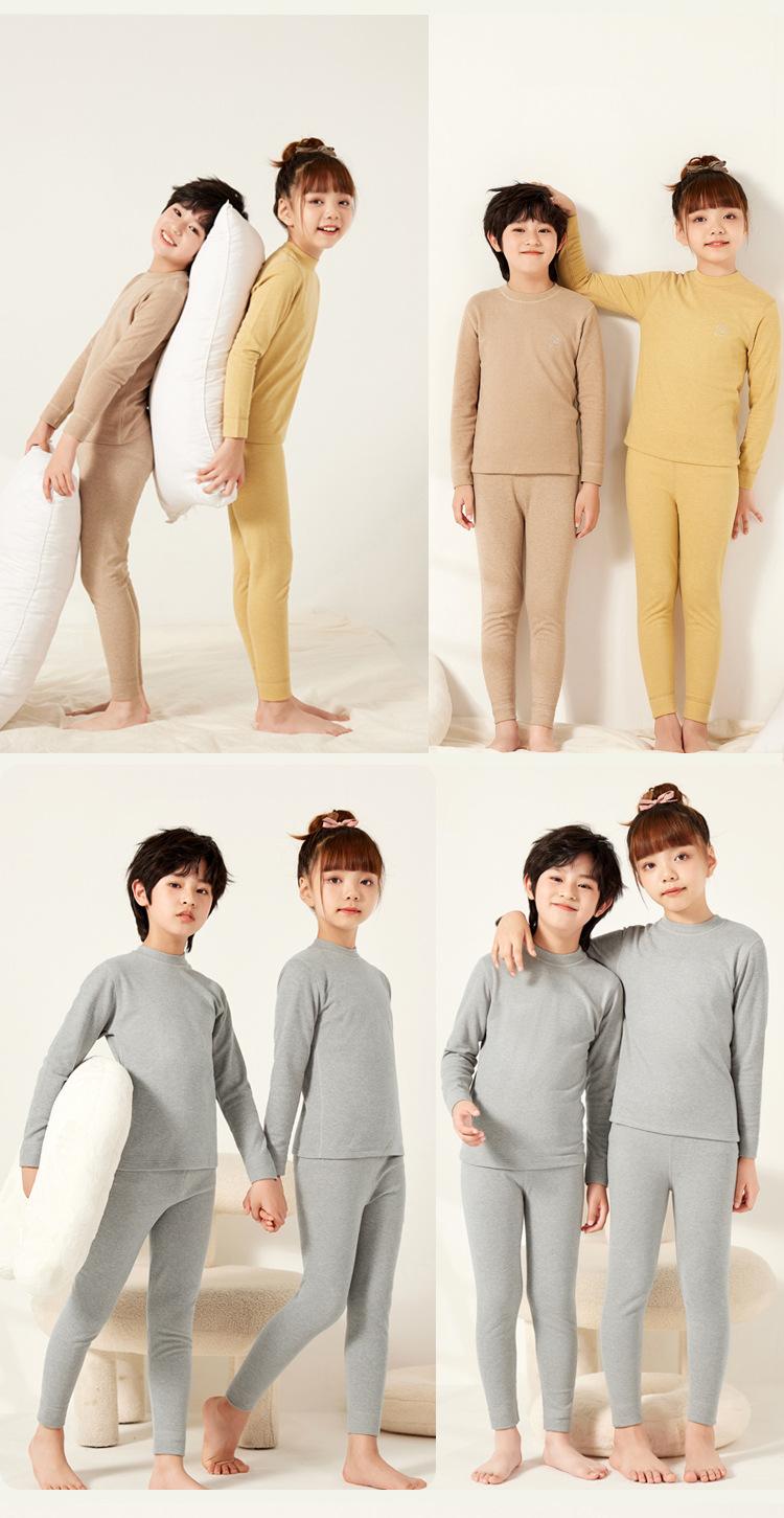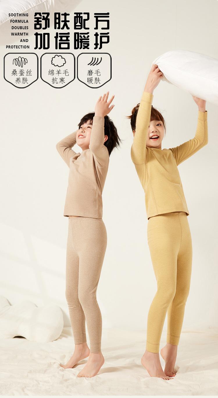 Traje de cuello alto de seda y lana para niños de otoño e invierno, ropa de hogar para niños y niñas, ropa de otoño gruesa y cálida con forro polar, pantalones largos