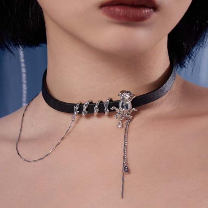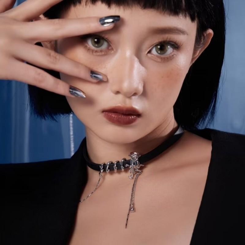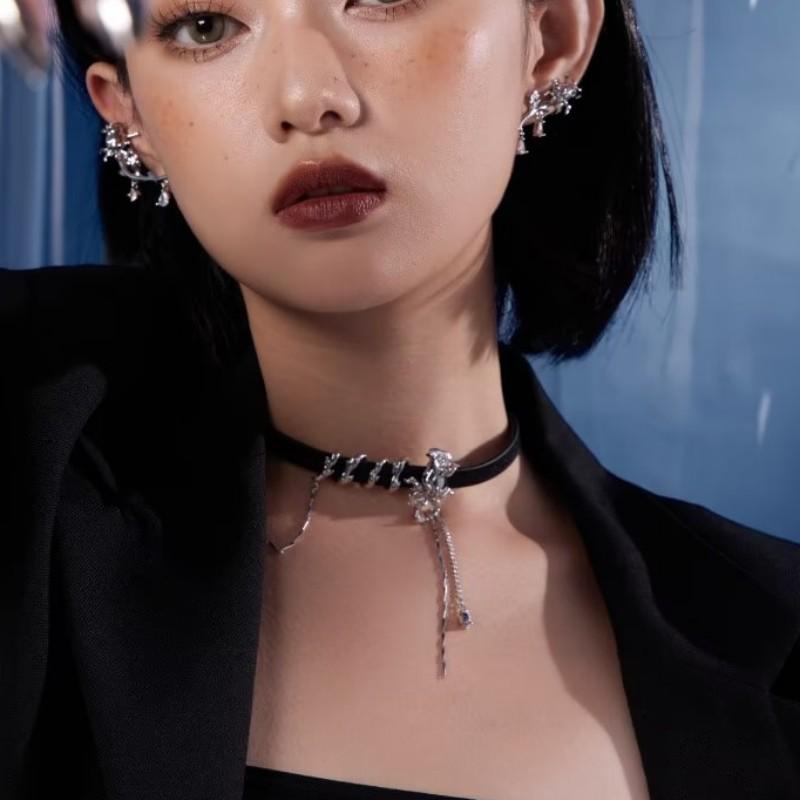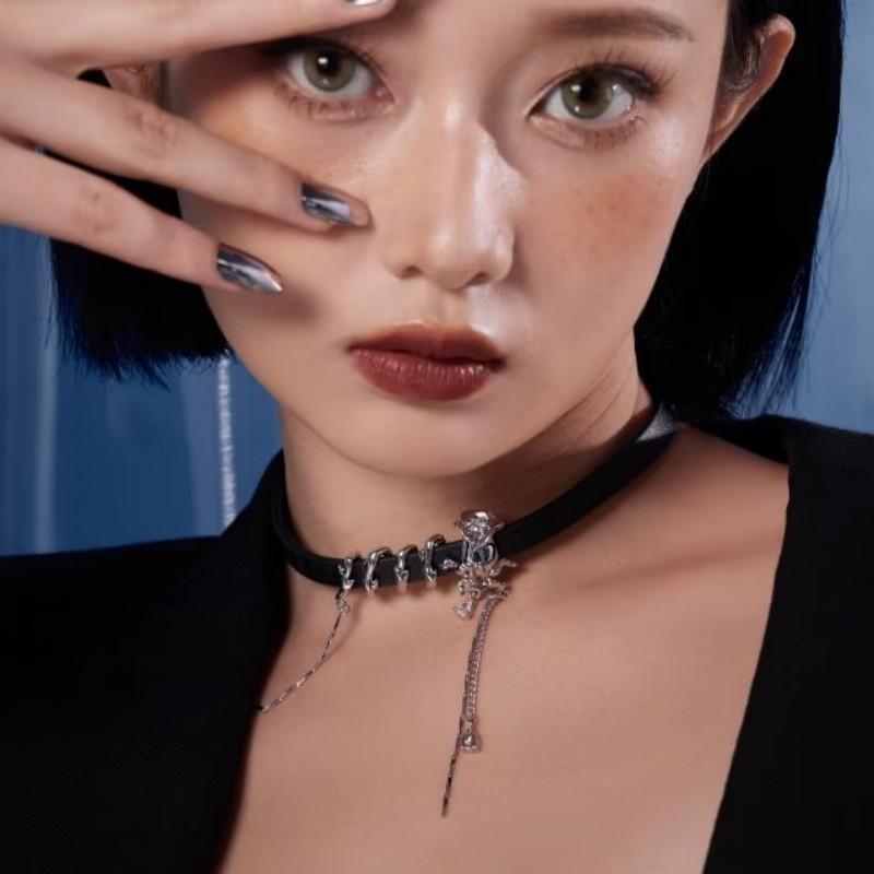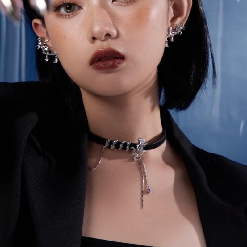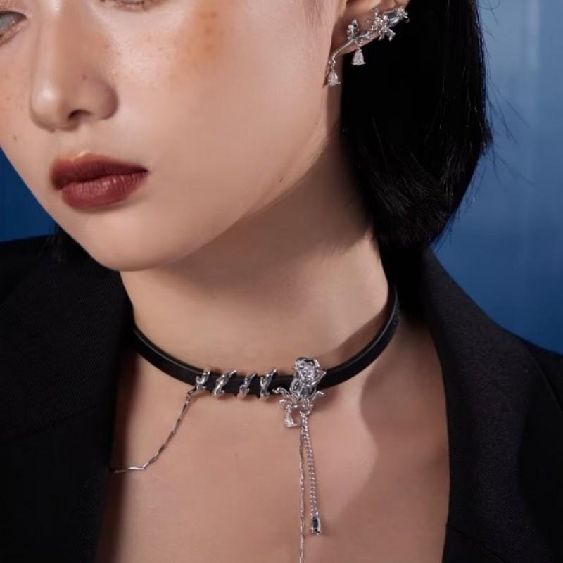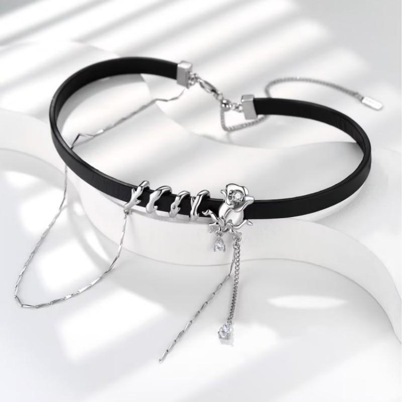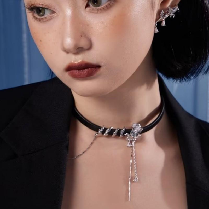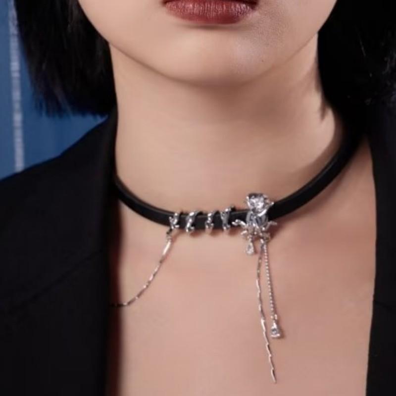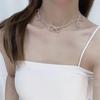 Elegante collar de lujo con borlas de doble capa y diamantes de imitación rosas, cadena de clavícula, elegante y a la moda.