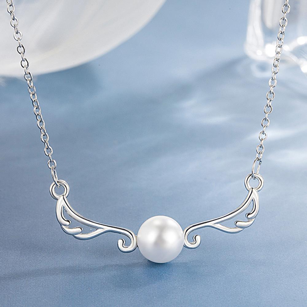 Collar de alas elegante y de moda, cadena de clavícula, collar de perlas de imitación ABS simple, ligero, de lujo, regalo de vacaciones femenino de alto sentido.