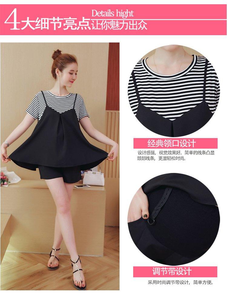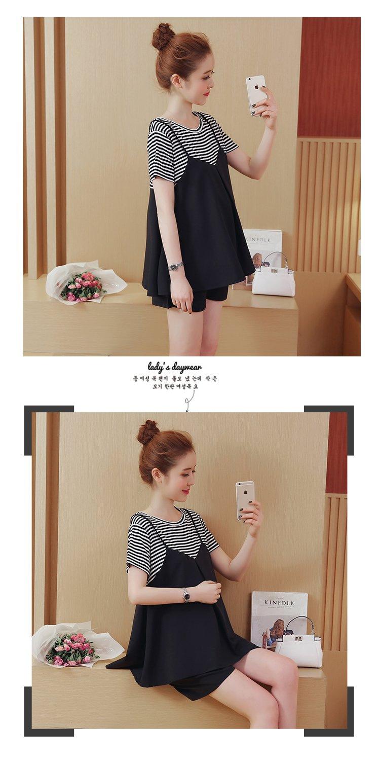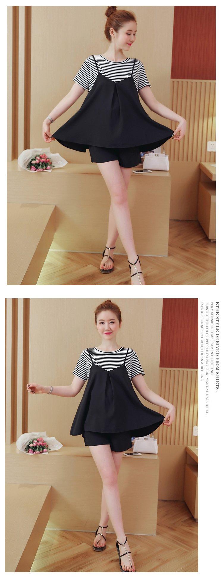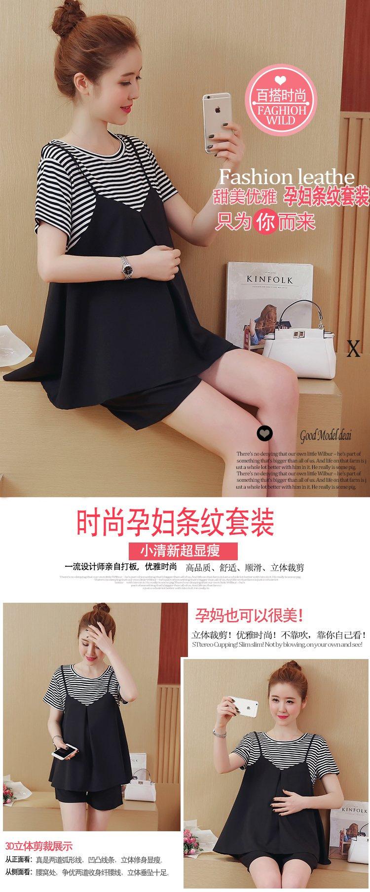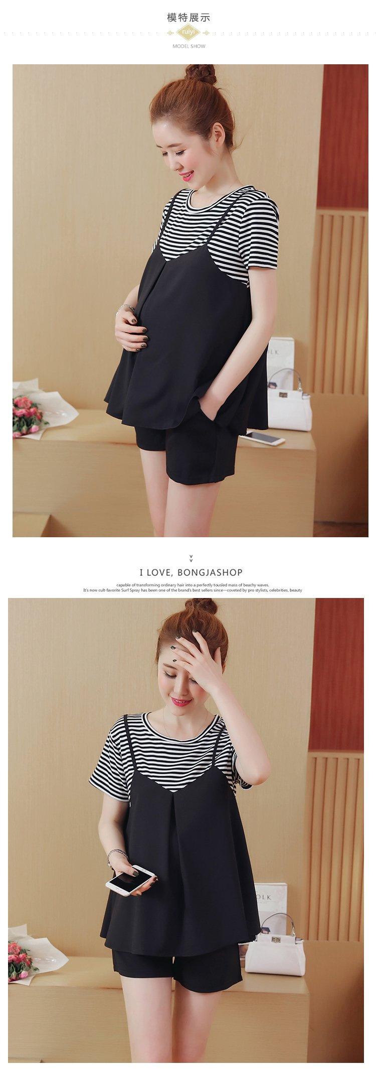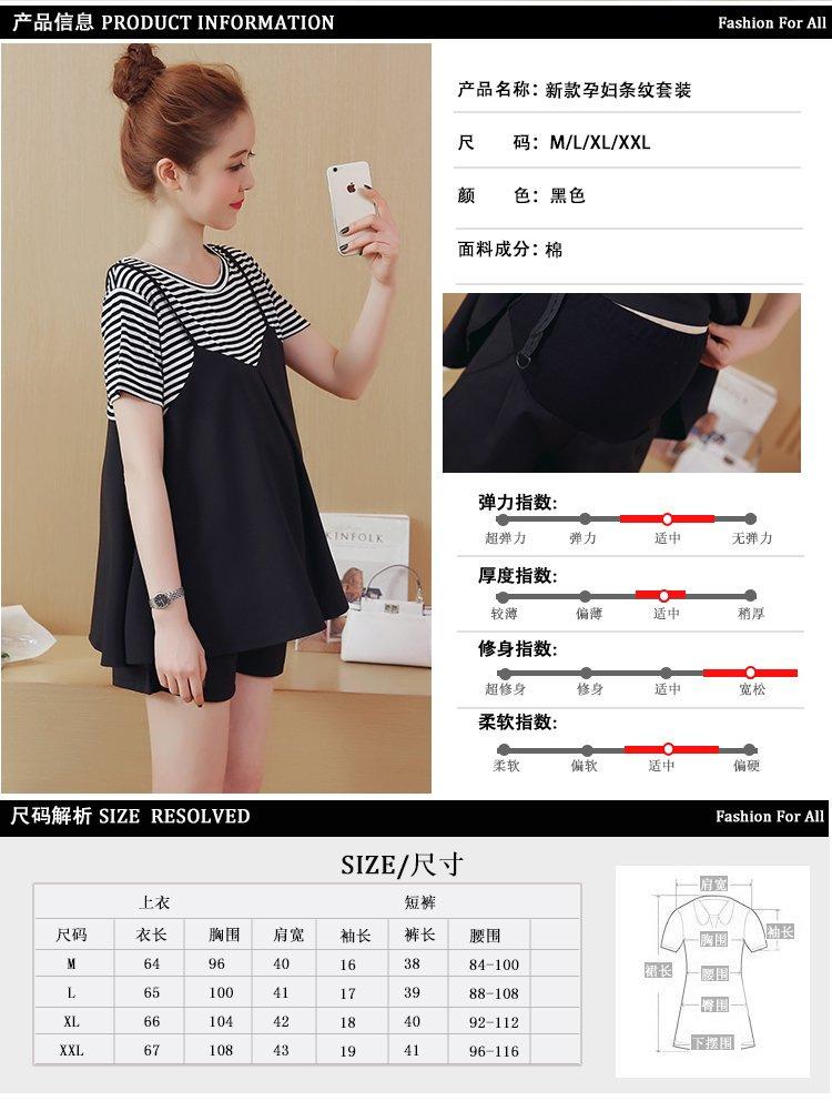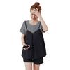 Conjunto de dos piezas de verano para embarazadas, estilo occidental, con pantalones cortos y camiseta de manga corta.