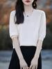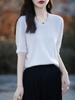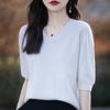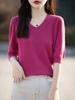 Suéter de cuello en V manga corta para mujer color sólido manga media holgado jersey tejido camiseta base 25 primavera nueva línea ropa camiseta