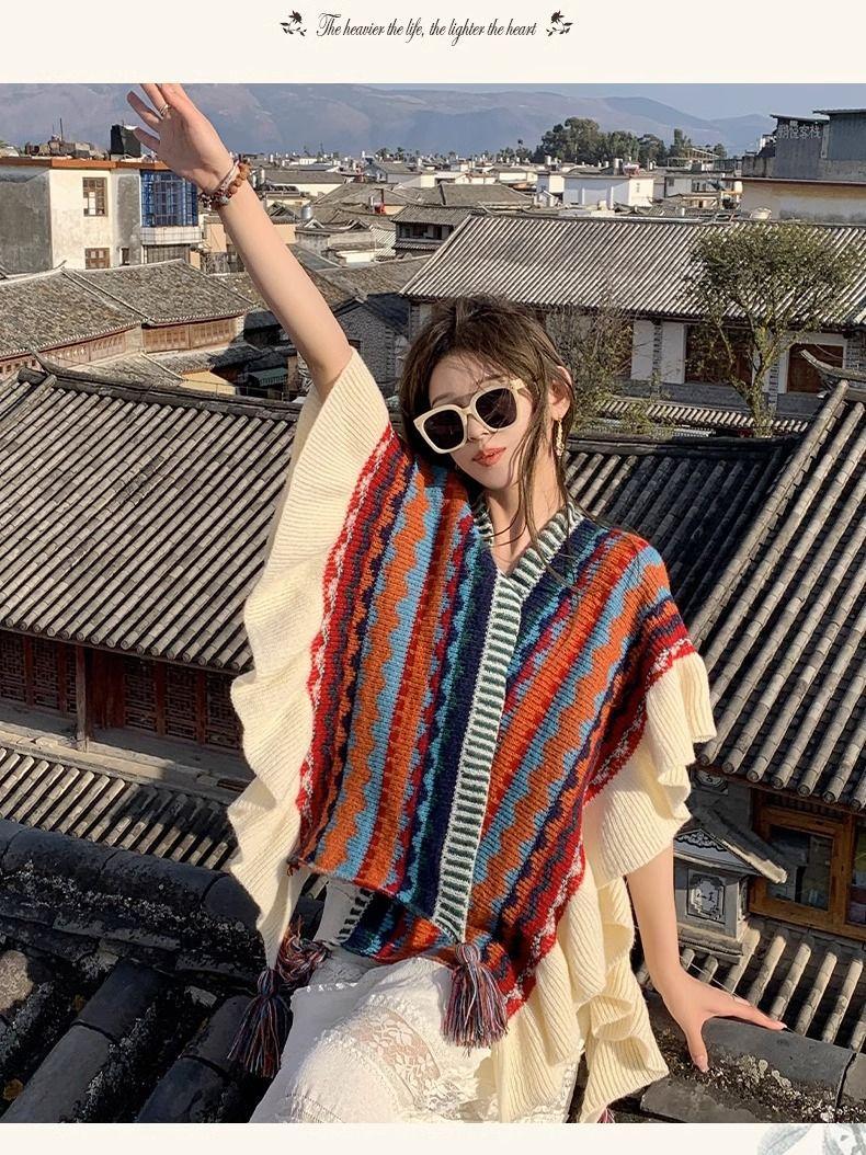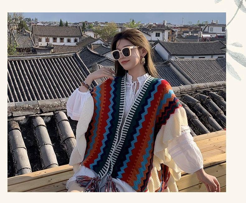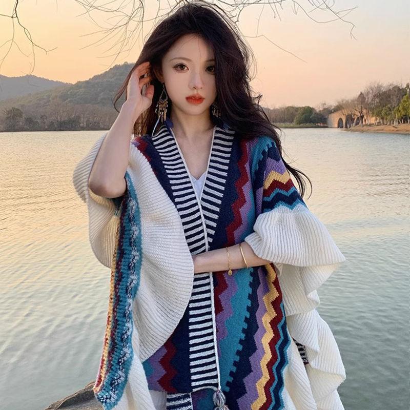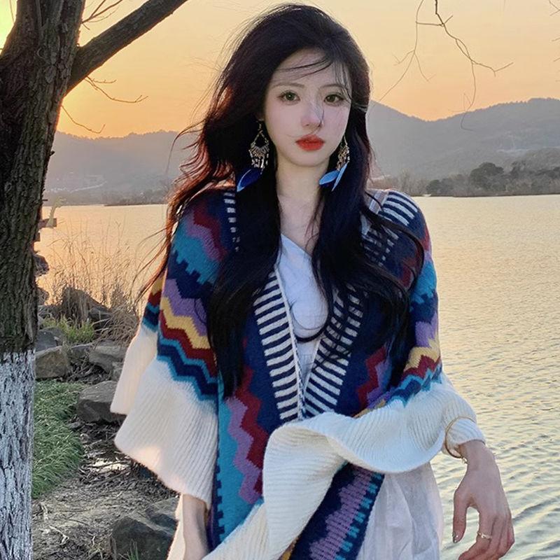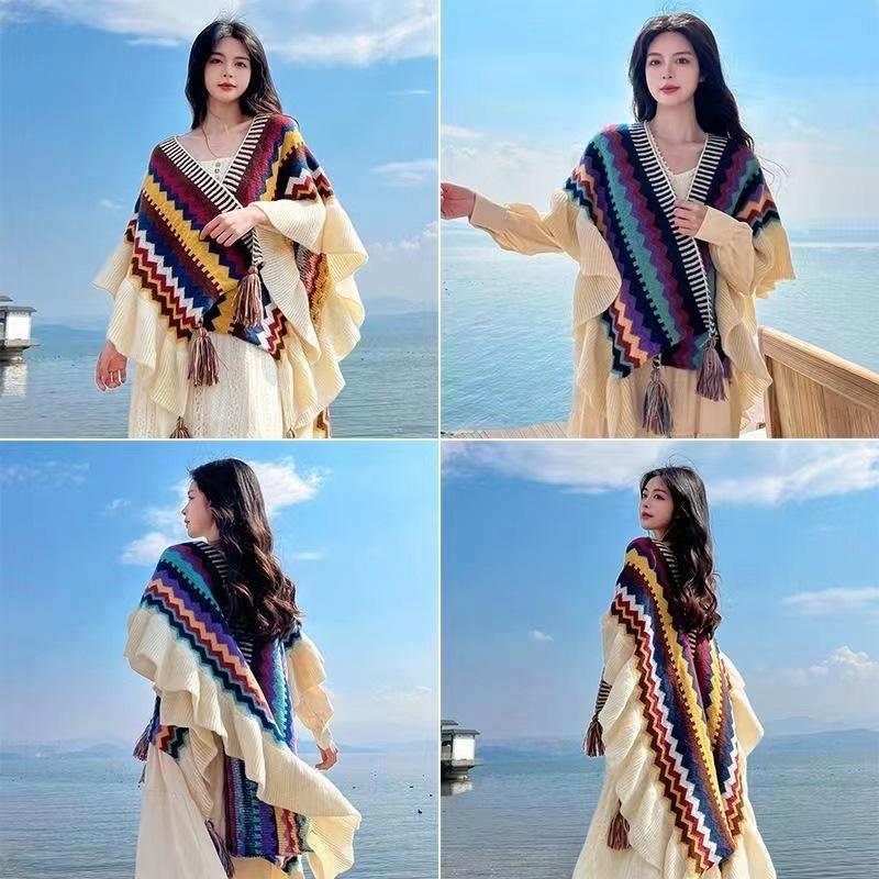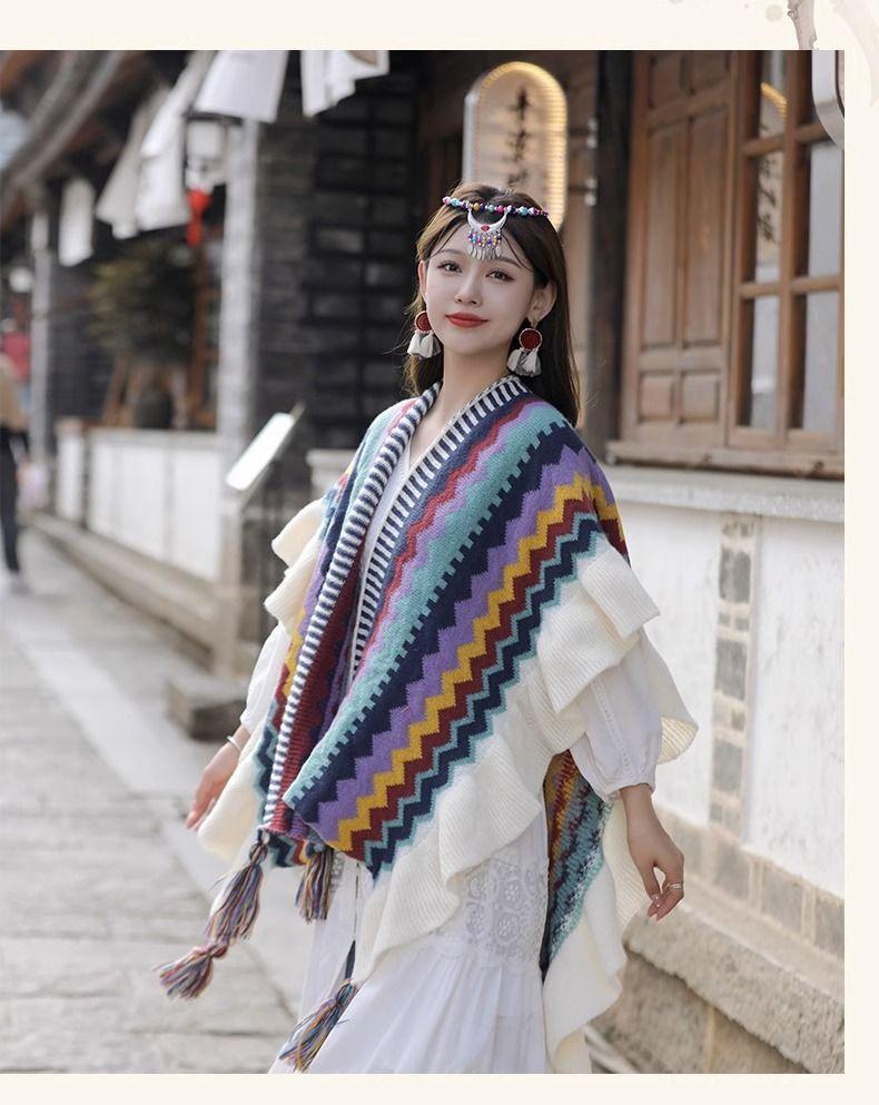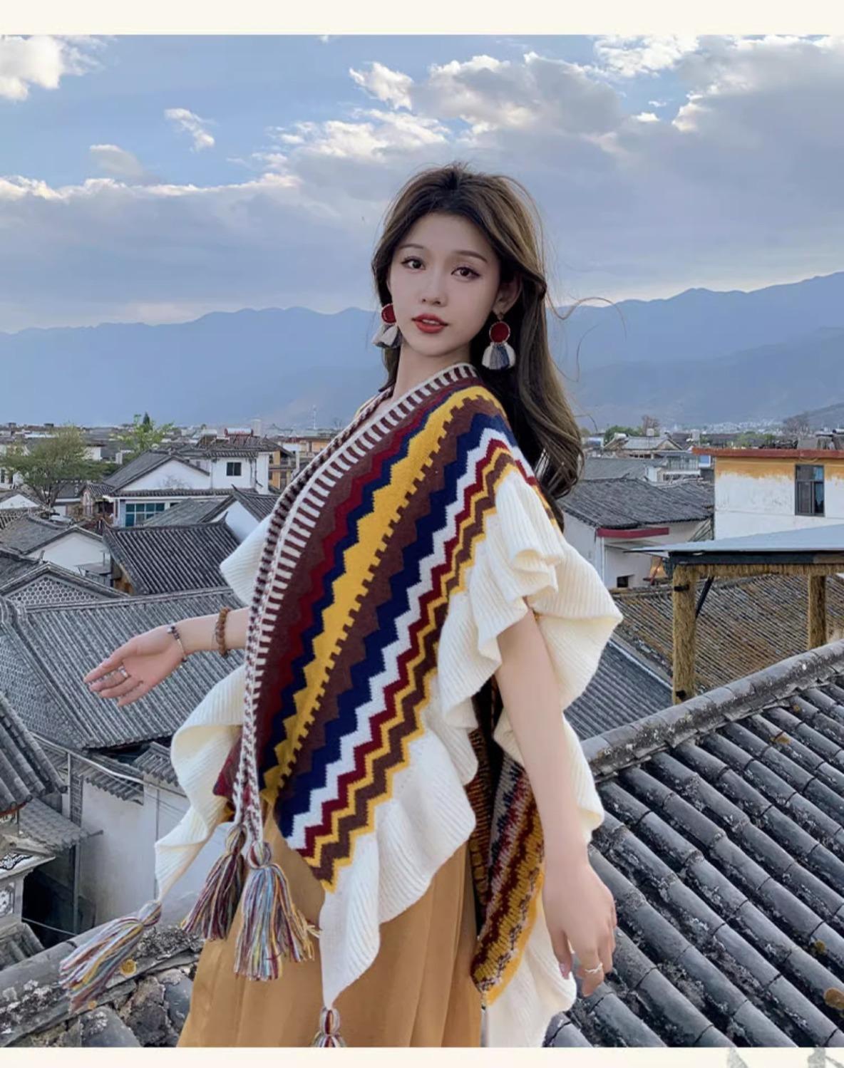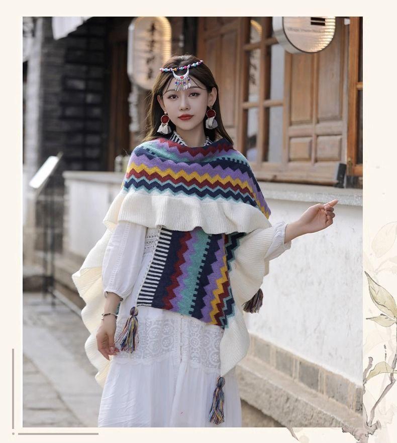 Chal Estilo Étnico Yunnan Lijiang Dali Xizang Turismo Popular en Internet para Usar Capa Cálida Capa Gruesa
