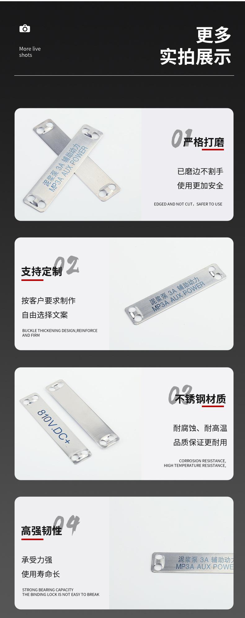 Letrero de Acero Inoxidable en Stock Placa de Identificación Etiqueta de Cable 0.5*19*90 Placa de Marcado para Construcción Eléctrica Placa de Identificación de Cable