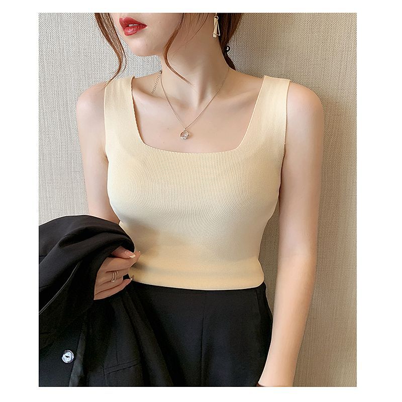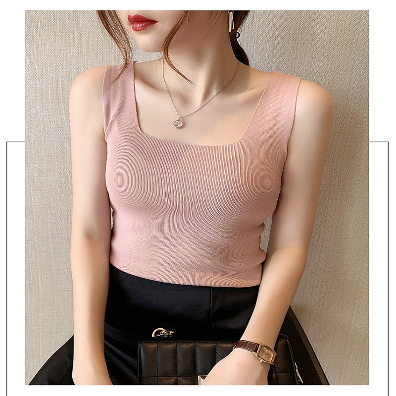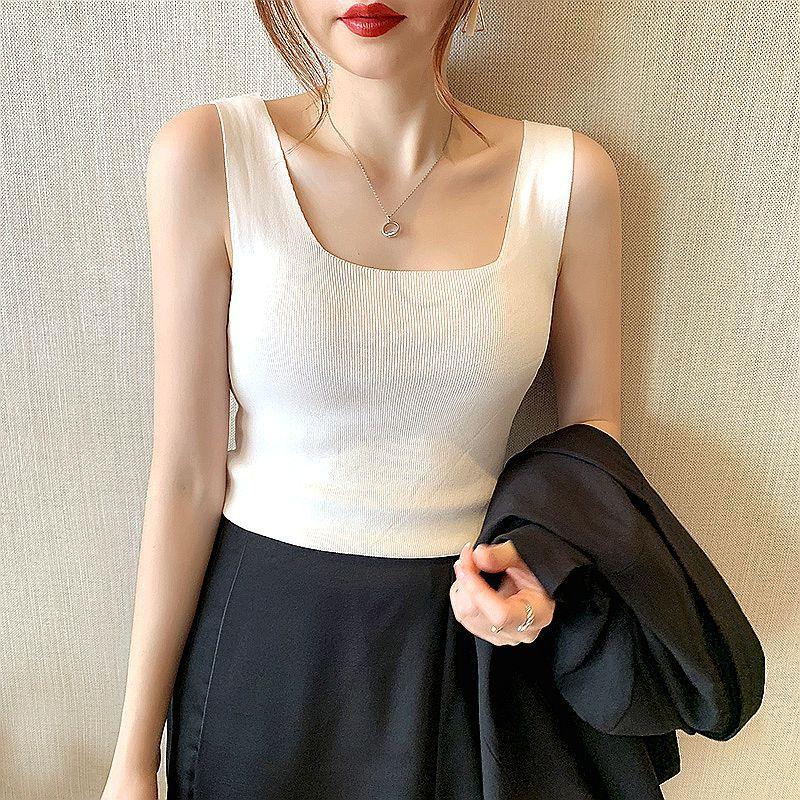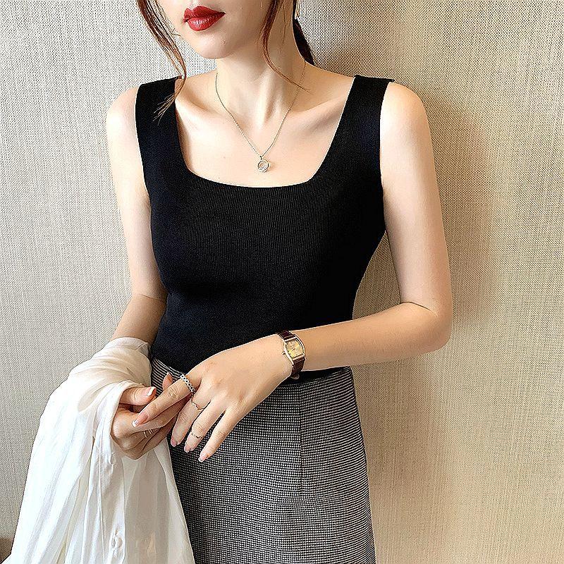 Chaleco Jersey Primavera y Verano Fondo Nuevo Delgado Tejido Punto Prendas de Punto Top Corto sin Mangas Negro Camisola Ropa Interior para Mujer