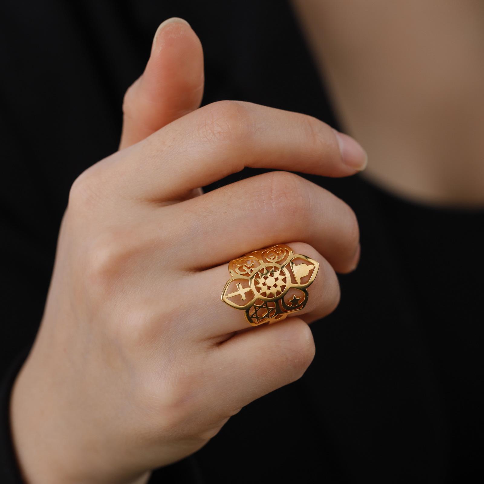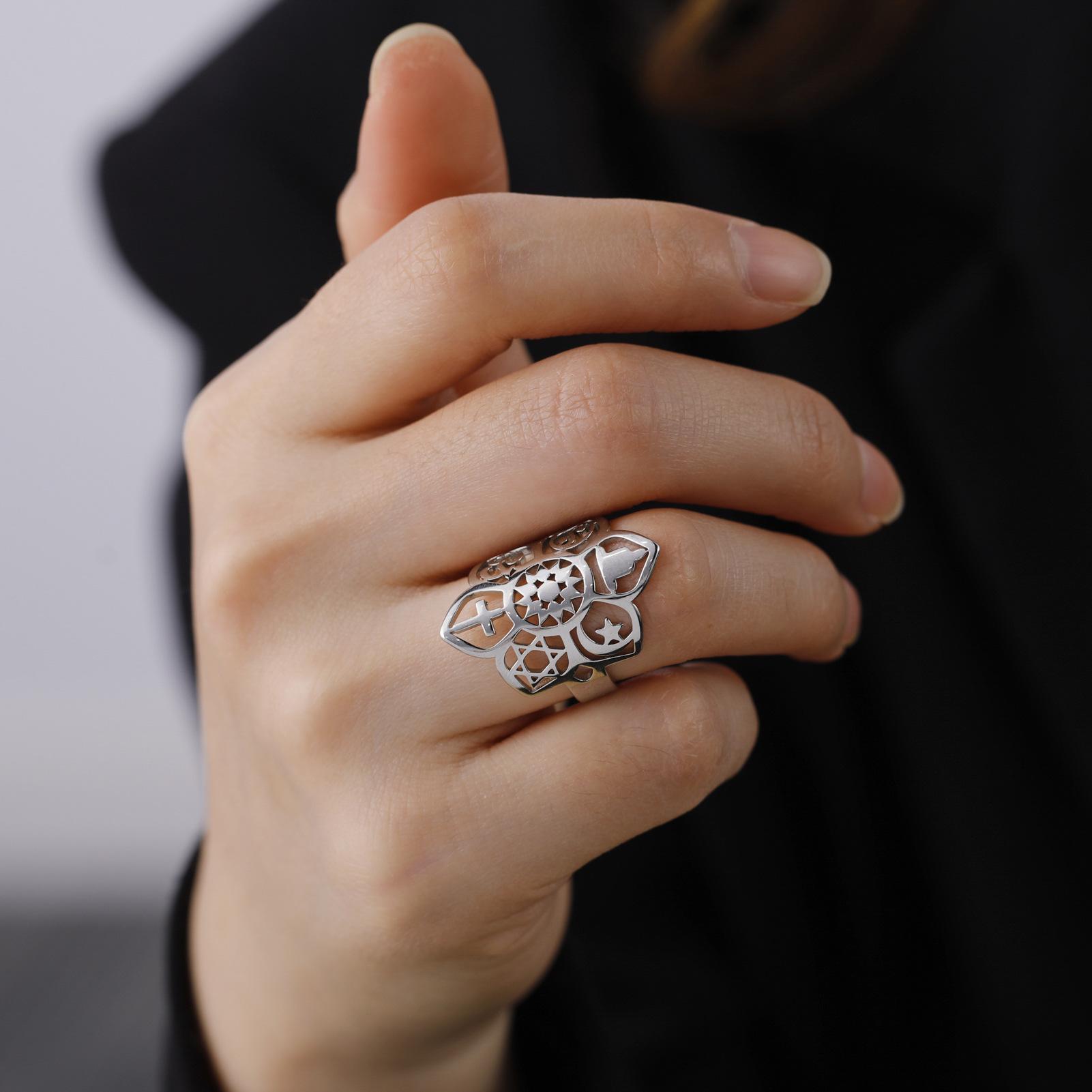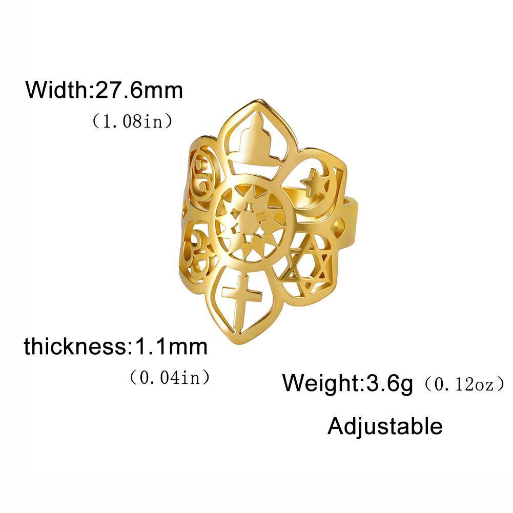 Hollow Om symbol cross six-pointed star ring, Advanced sense