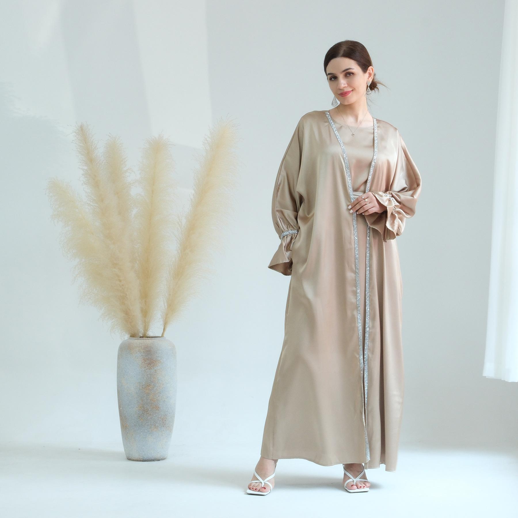 2023Loriya AliExpress Amazon Dubái Vestido Bata Manga Trompeta Pequeña con Cuentas Color Sólido Diario LR633