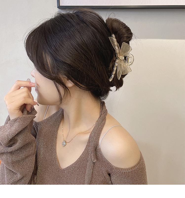 Clip de Moño de Malla Coreano Nuevo de Alta Gama Clip para el Cabello Nicho Parte Posterior de la Cabeza Clip Tiburón para el Cabello Tocado para Mujeres