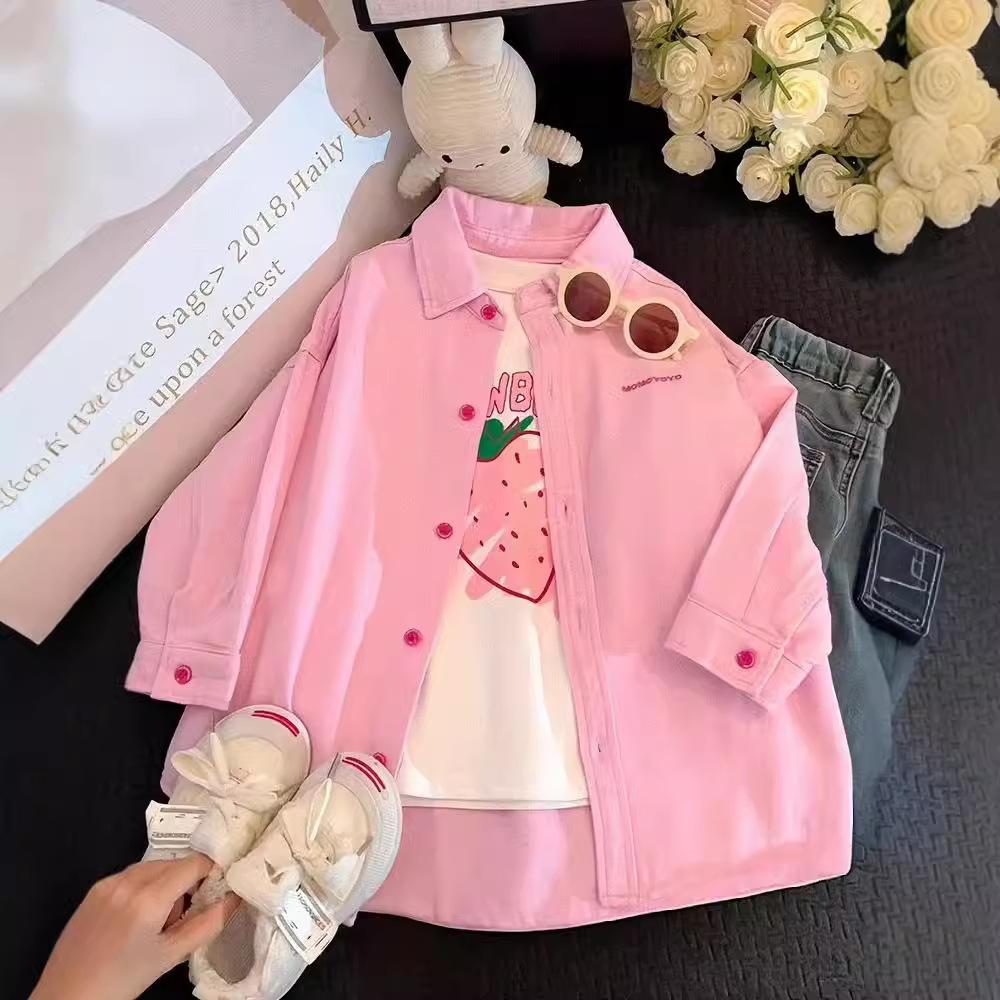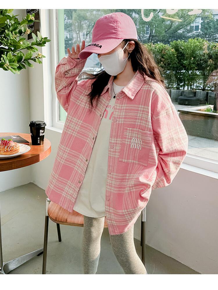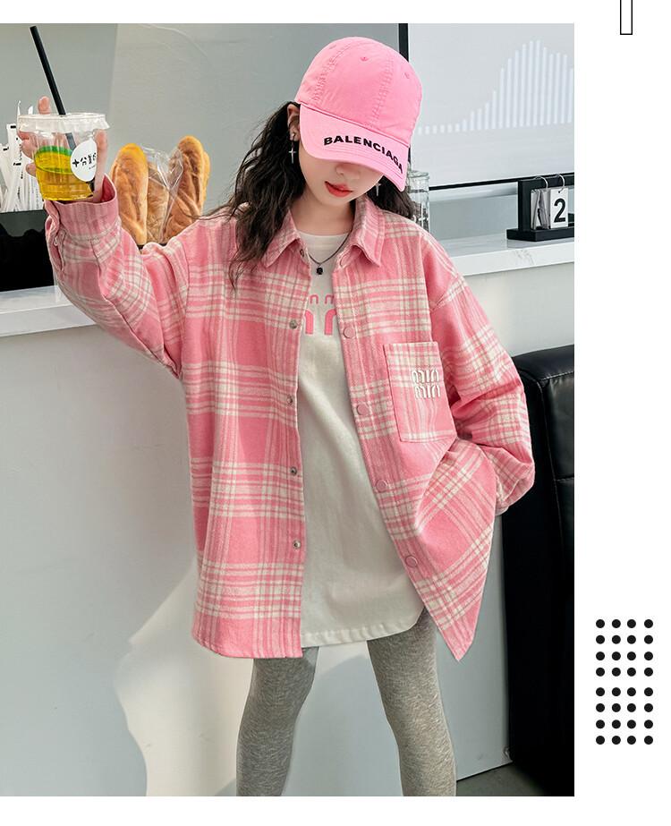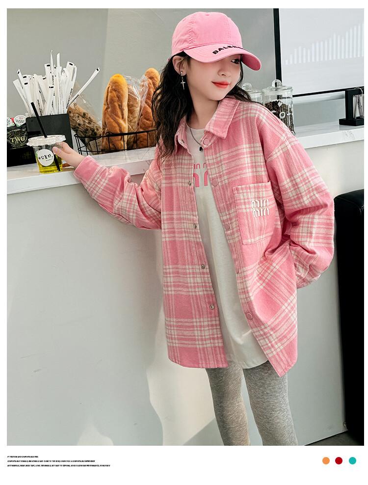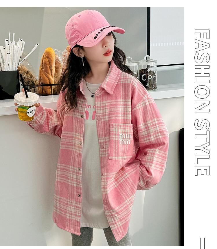Camisa para Niñas 2024 Nueva Tejido para Niños Grandes Ropa para Niños Top de Primavera Chaqueta de Camisa Pequeña Camisa de Uniforme para Niños