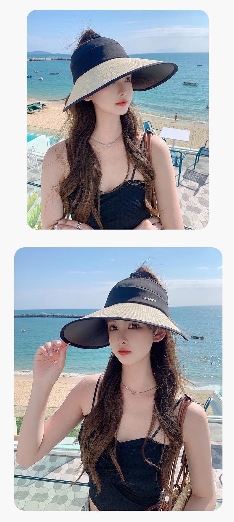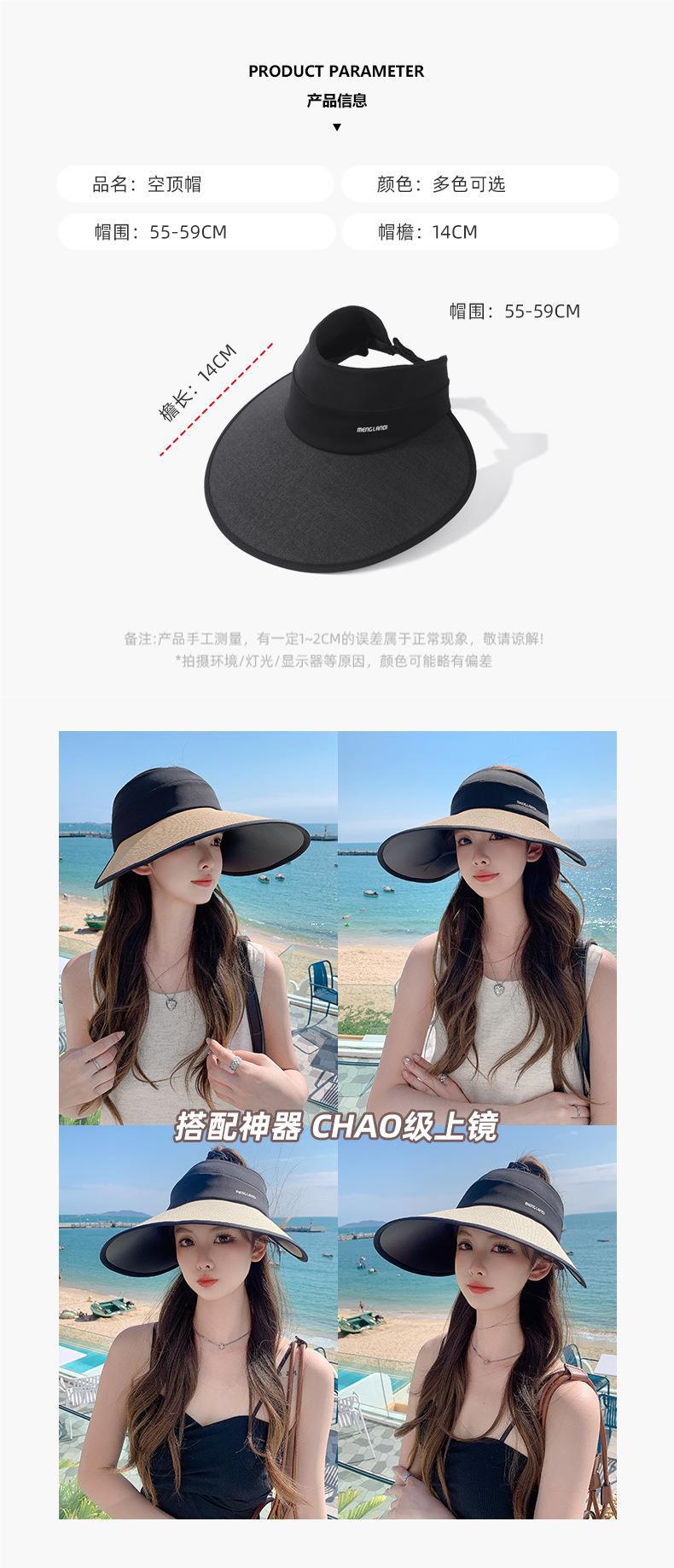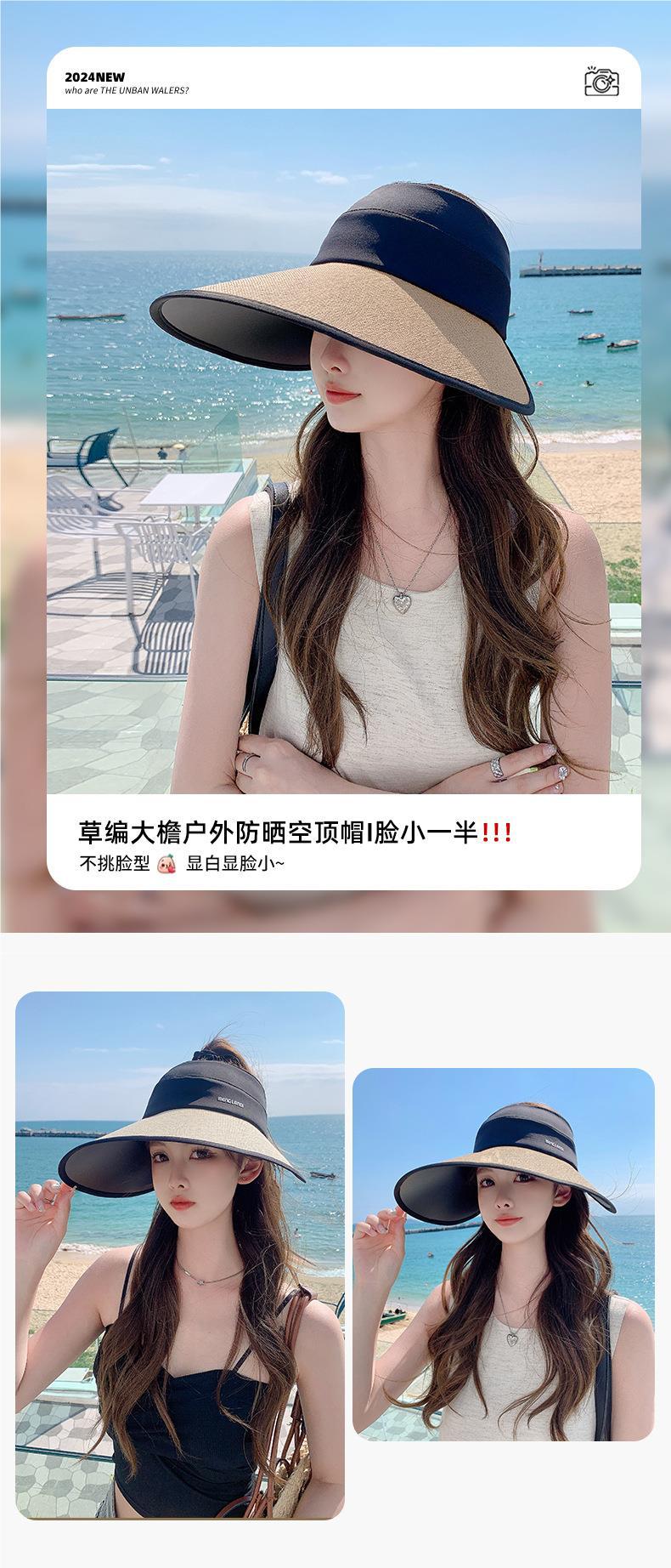 Sombrero de ala grande para mujer, nuevo sombrero de paja con protección UV para verano 2024, sombrero de ciclismo para el sol, sombrero de sol con parte superior vacía.