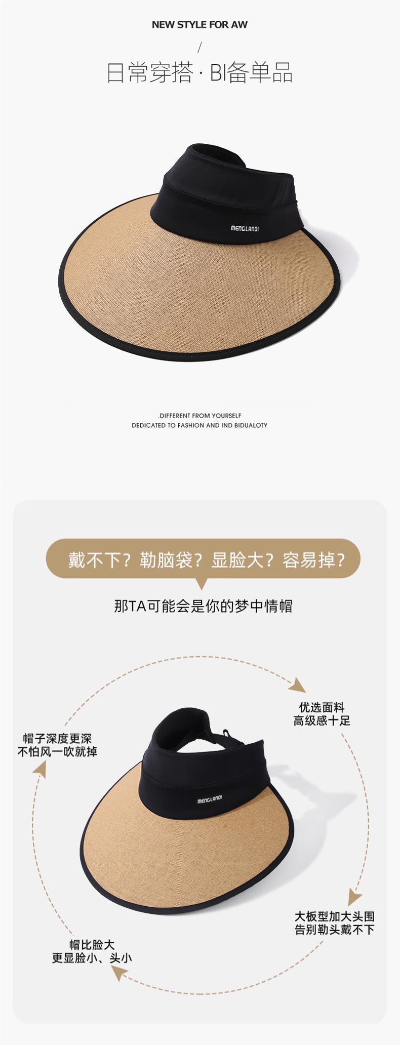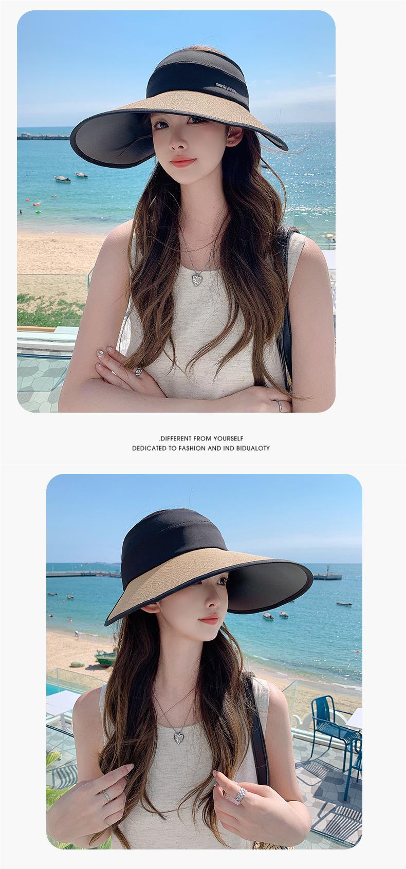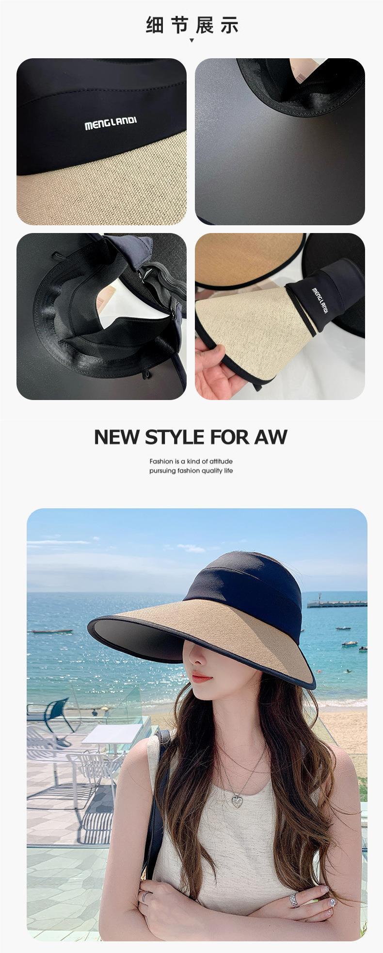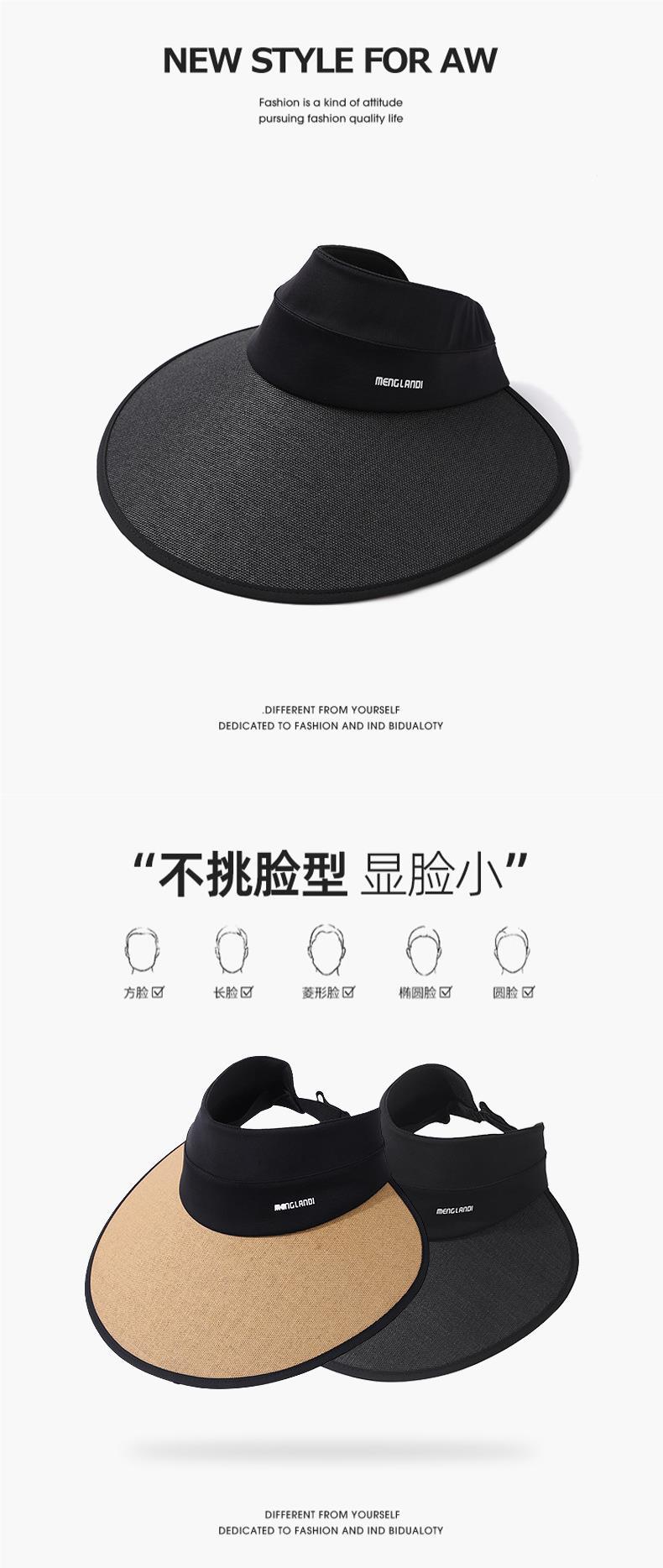 Sombrero de ala grande para mujer, nuevo sombrero de paja con protección UV para verano 2024, sombrero de ciclismo para el sol, sombrero de sol con parte superior vacía.