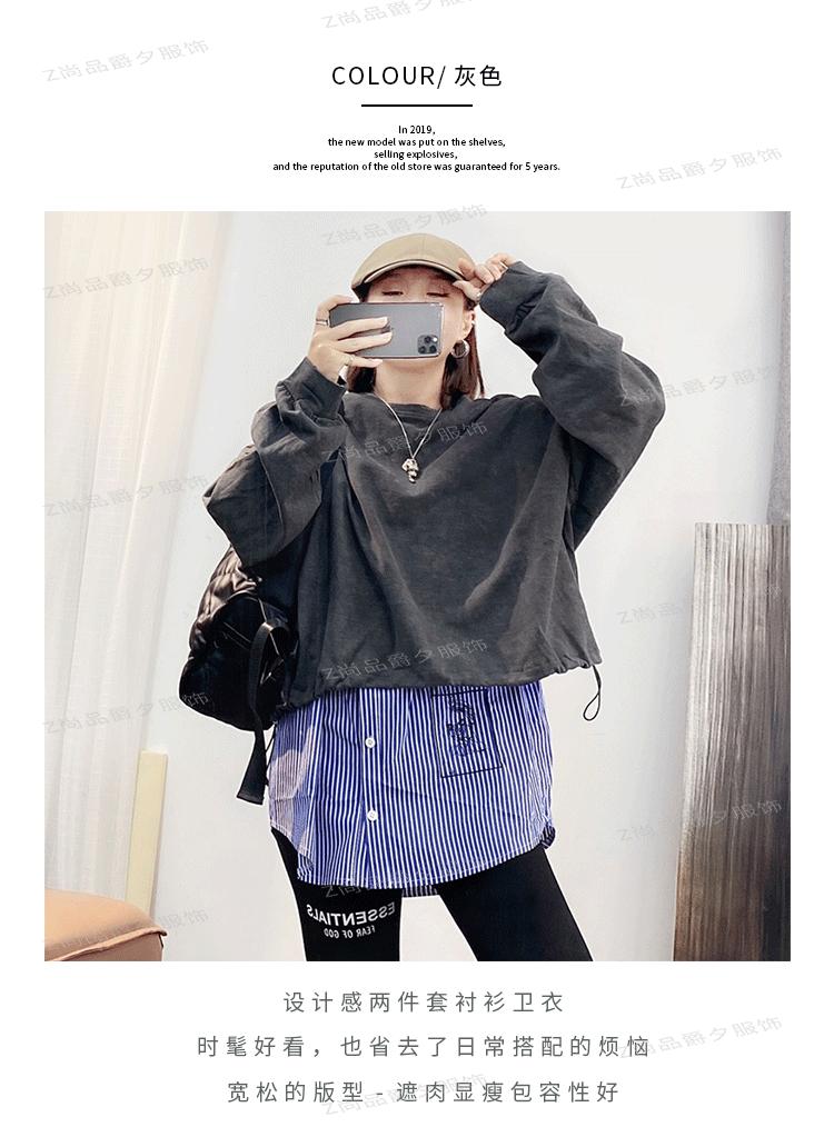2025 Ropa Nueva de Otoño para Mujer Conjunto de Dos Piezas Sudadera de Diseño Camisa Casual a Rayas Top Holgado con Cordón