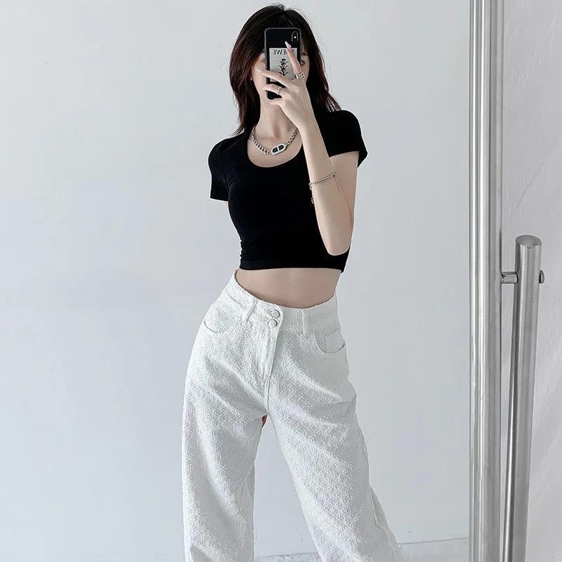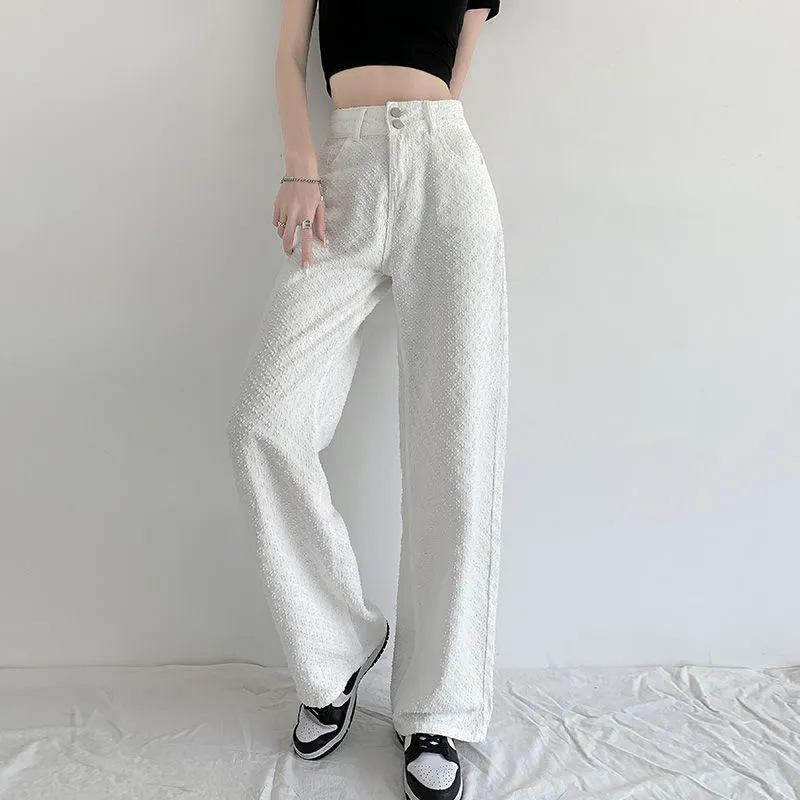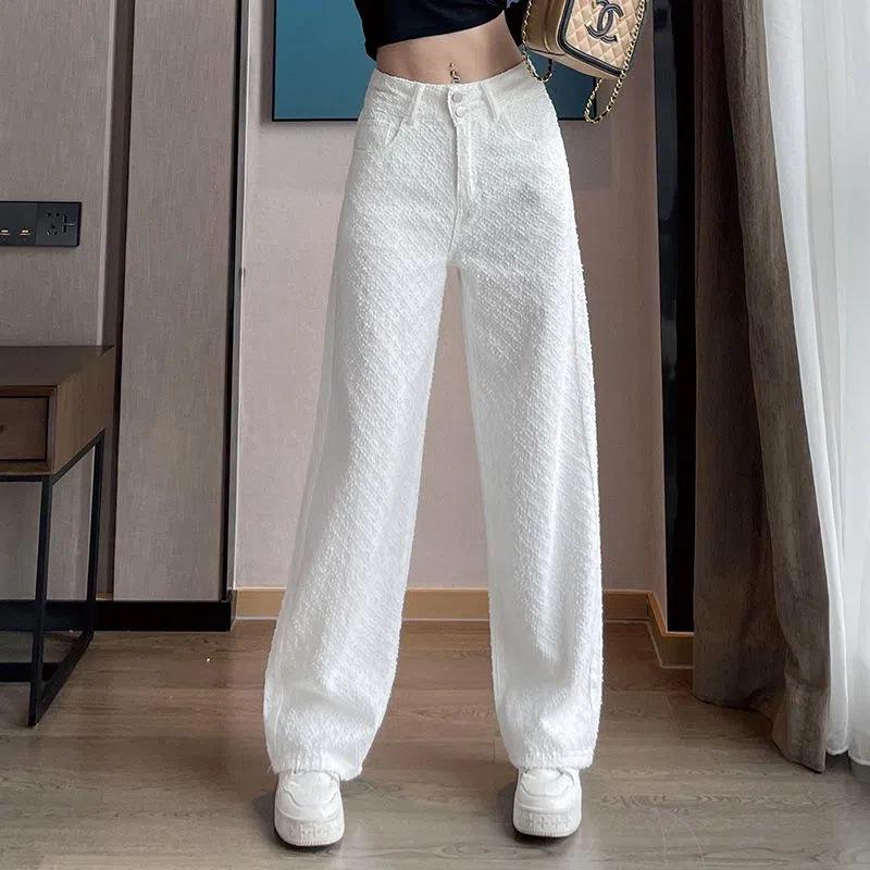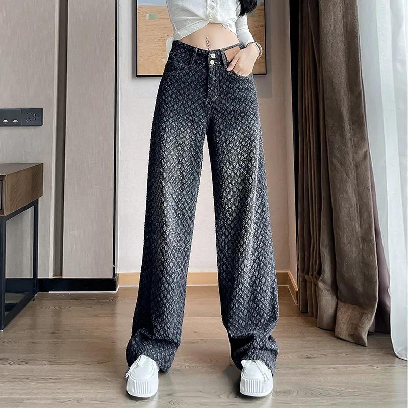 Nuevos pantalones vaqueros de pierna ancha para mujer, primavera y otoño 2025, tallas grandes, cintura alta, informales, holgados, de pierna ancha y rectos, para mujer