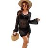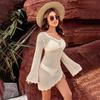 Blusa hueca de playa con protección solar para mujer, estilo europeo y americano de comercio exterior, blusa de playa hueca con manga acampanada al por mayor