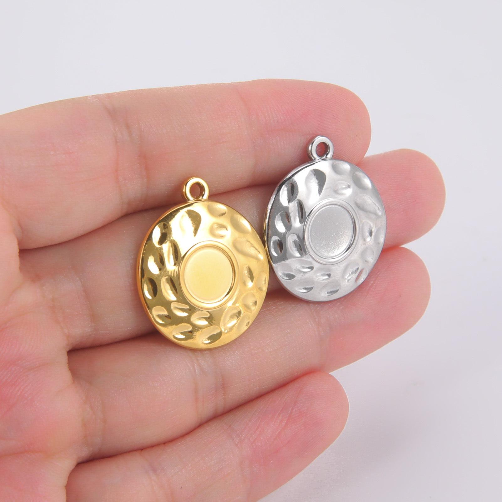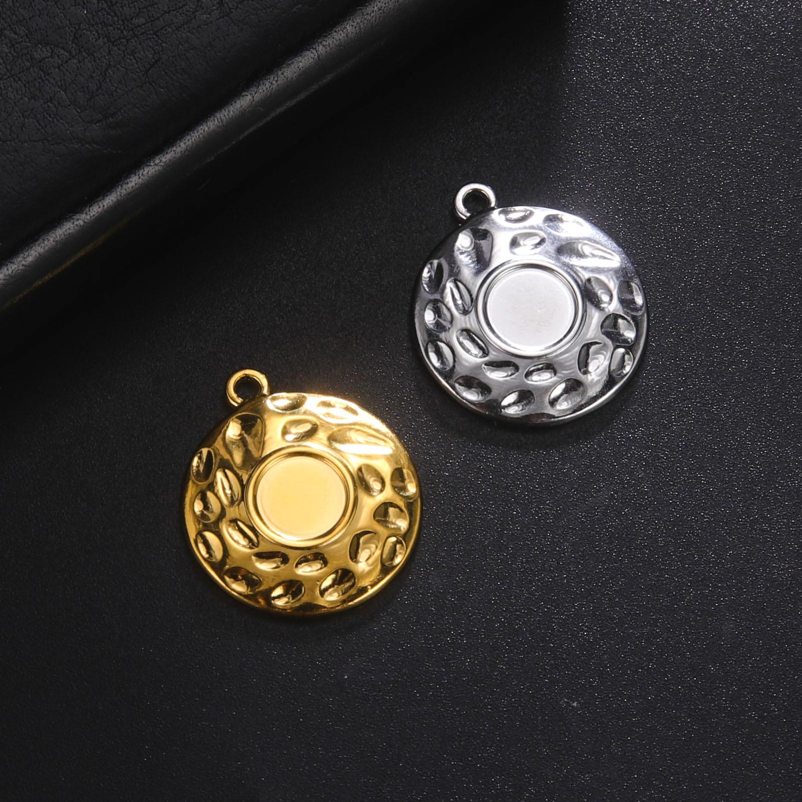 Colgante de acero inoxidable redondo de marca europea y americana con forma irregular de foso, colgante pequeño de acero de titanio, collar, pendientes, pulsera, accesorios de joyería DIY