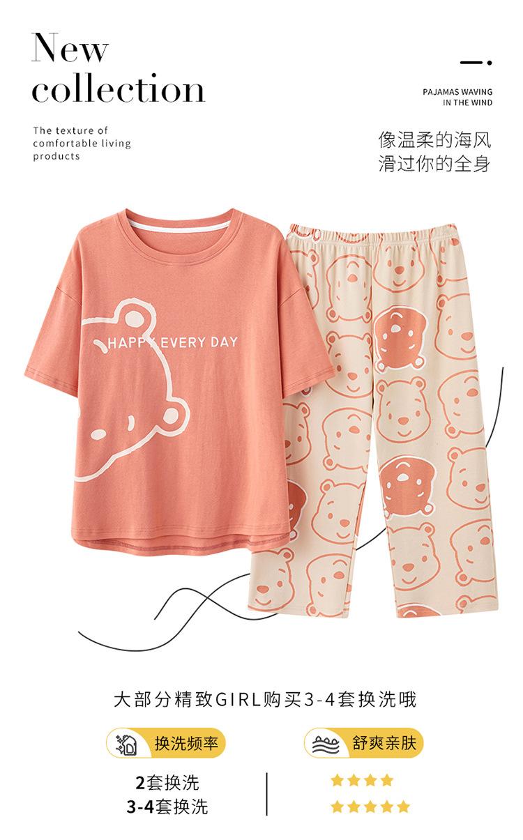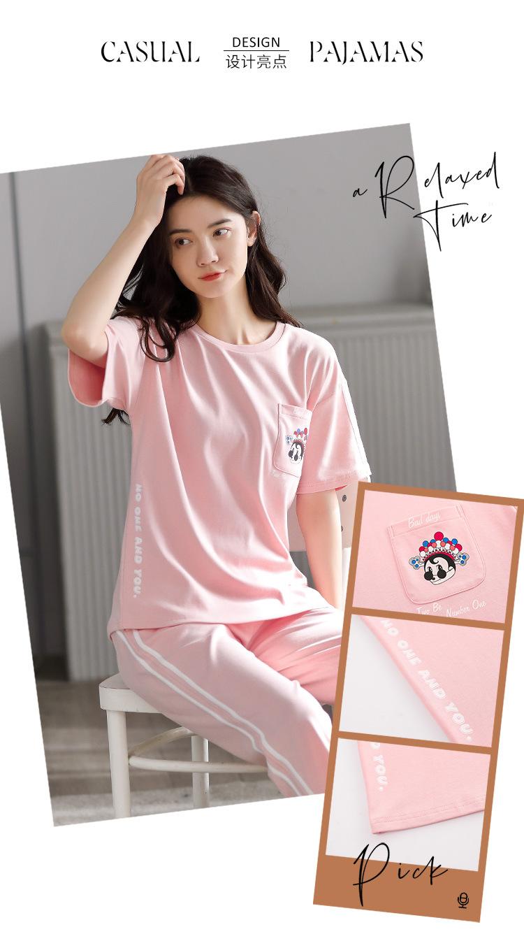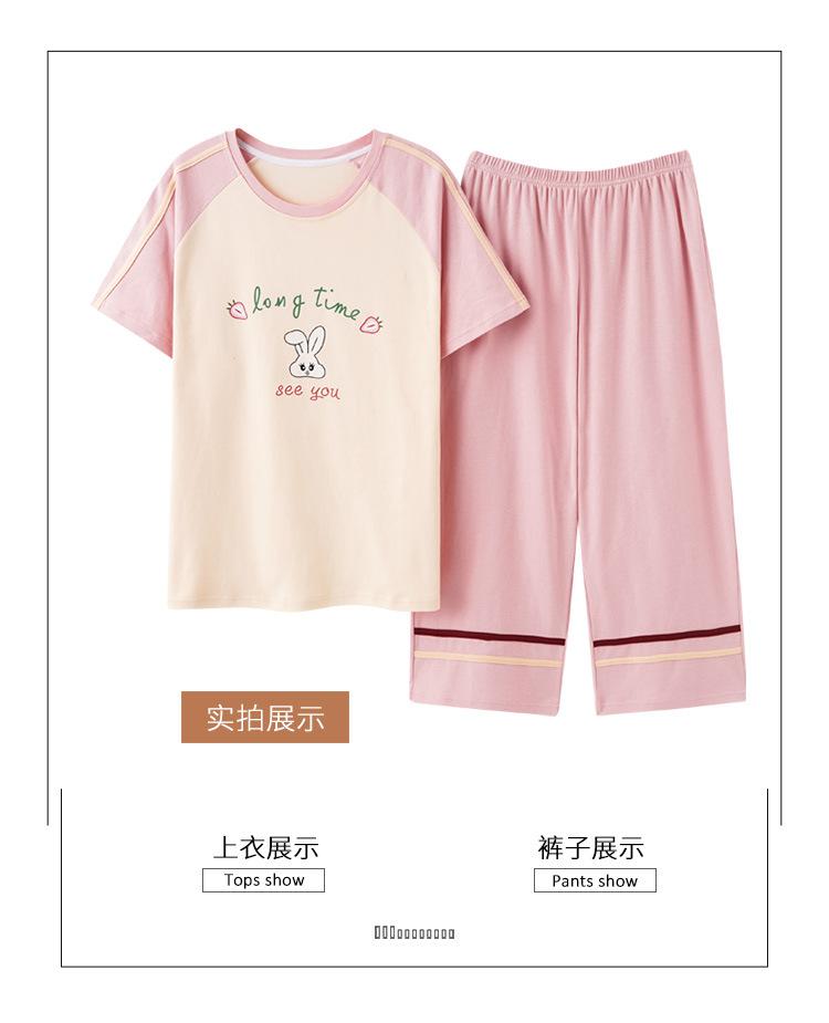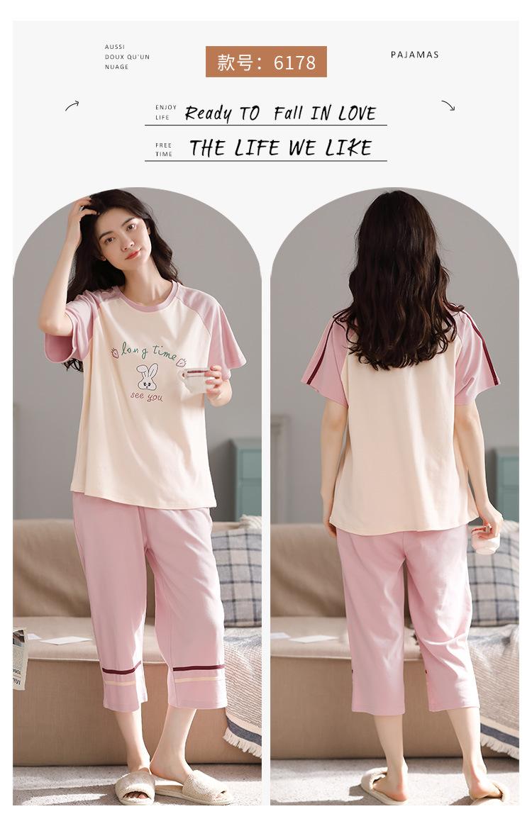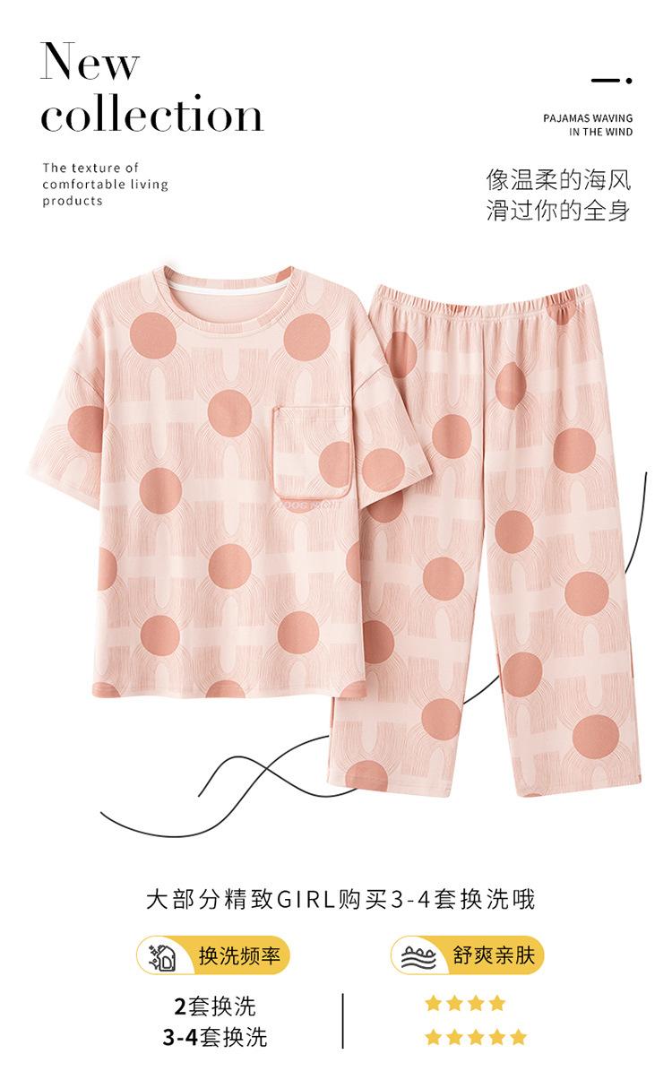 Pijama Nuevo Verano para Mujer Algodón Manga Corta Pantalón Capri Ropa para el Hogar Cuello Redondo Ropa Exterior Casual Traje de Dos Piezas Delgado