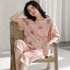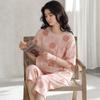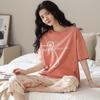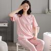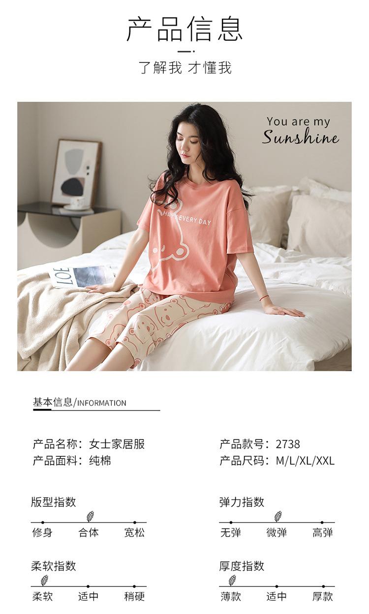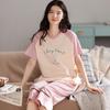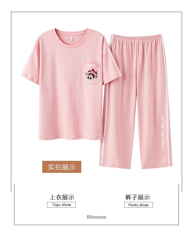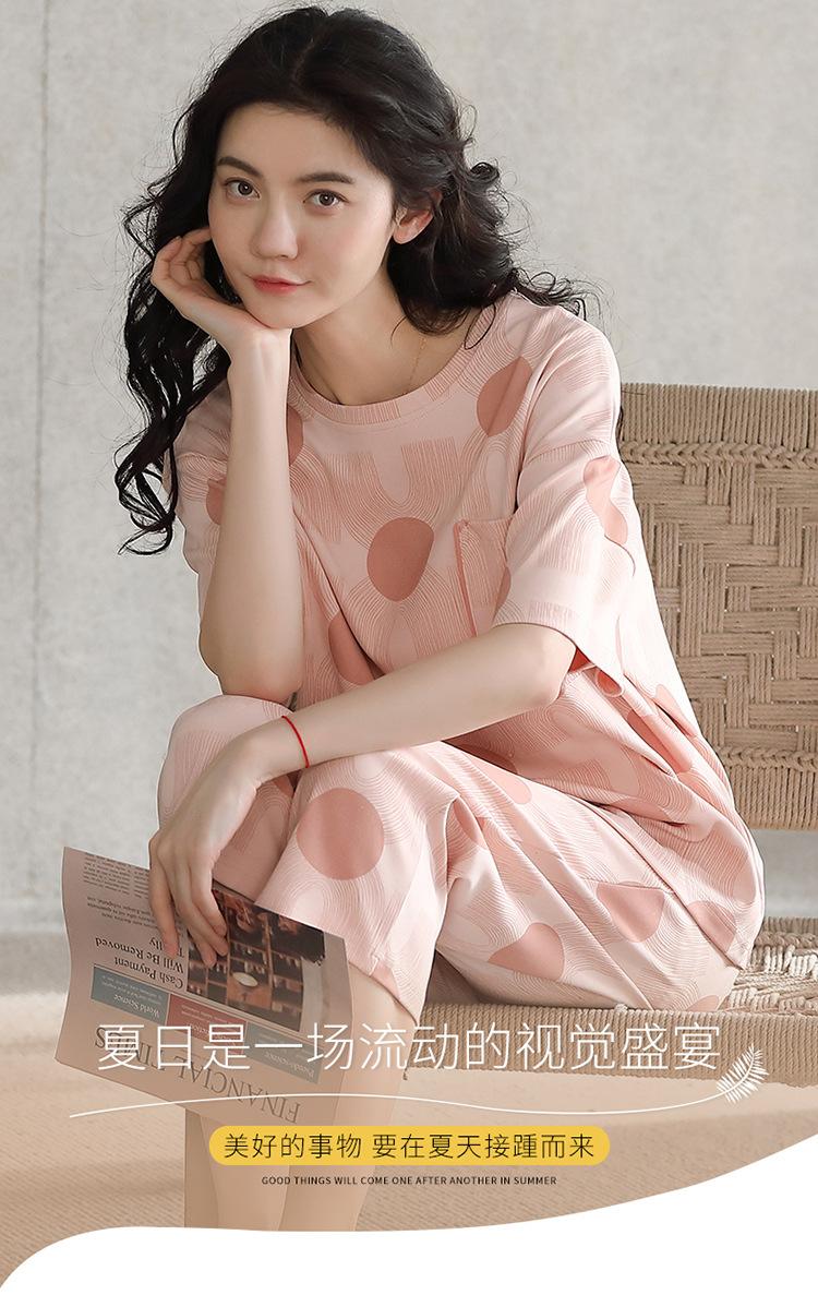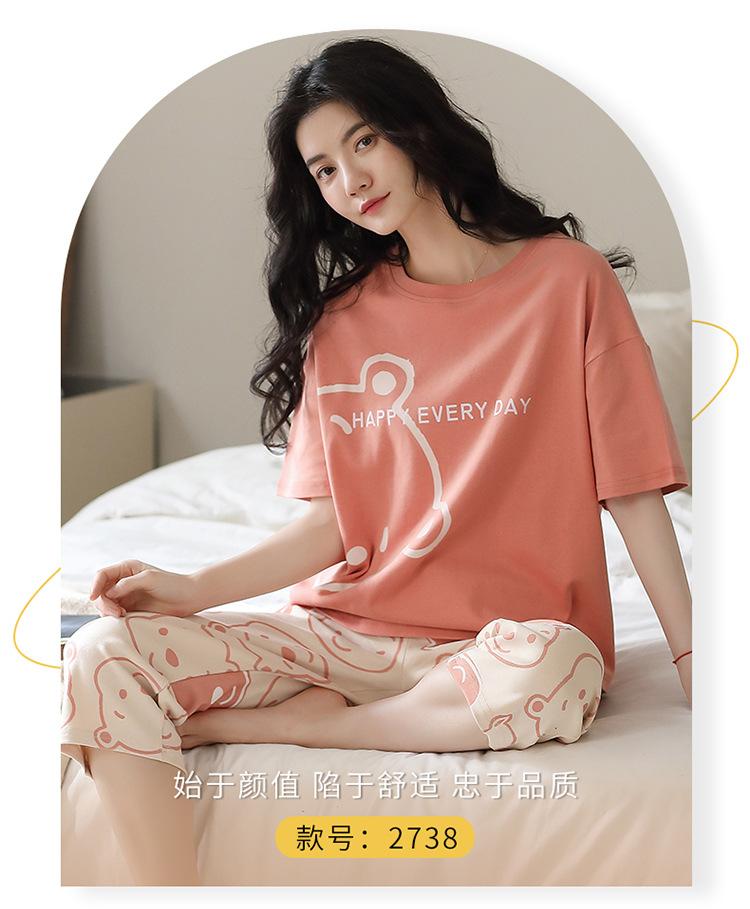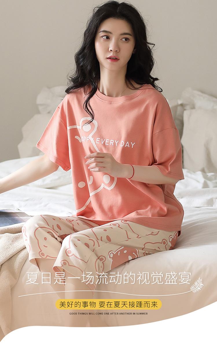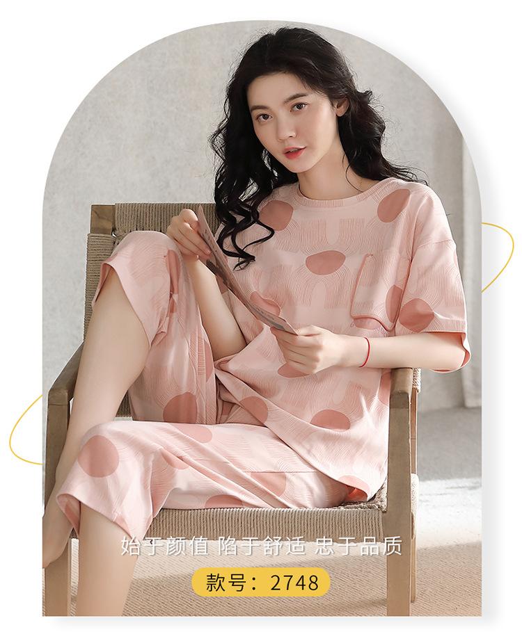 Pijama Nuevo Verano para Mujer Algodón Manga Corta Pantalón Capri Ropa para el Hogar Cuello Redondo Ropa Exterior Casual Traje de Dos Piezas Delgado