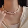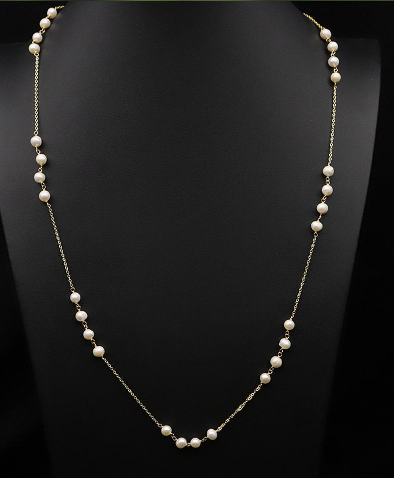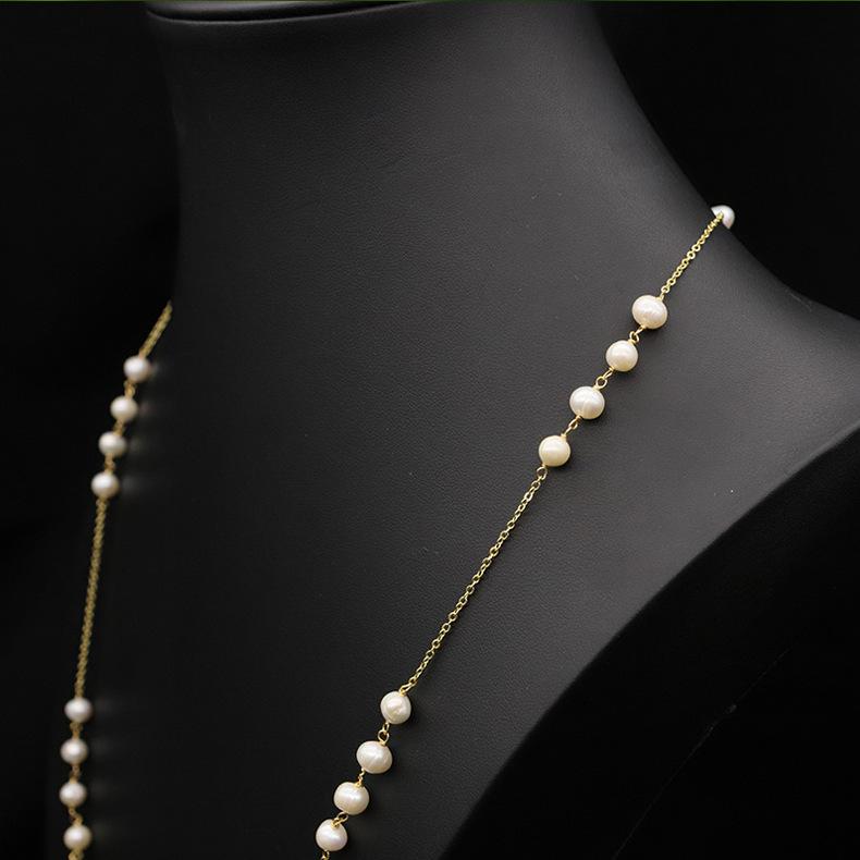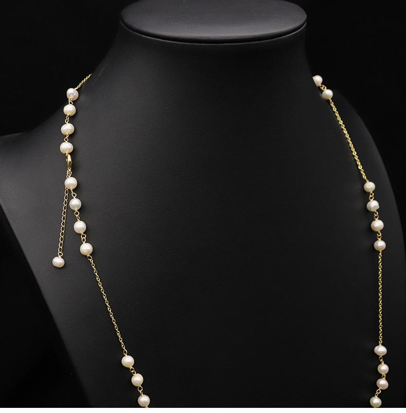 Cadena para Suéter de Perla de Agua Dulce Natural Hecha a Mano para Mujer Diseño Simple de Nicho Collar de Perlas que No se Desvanece Joyería de Metal