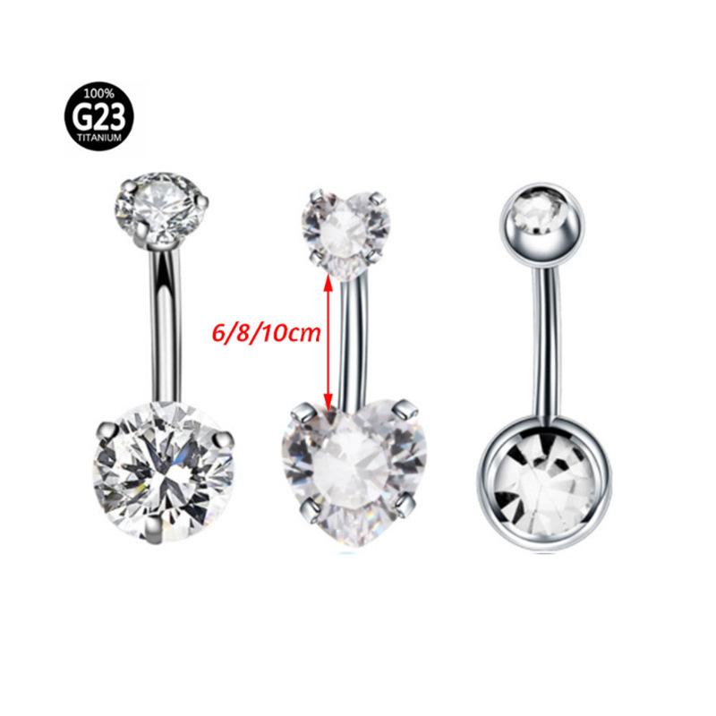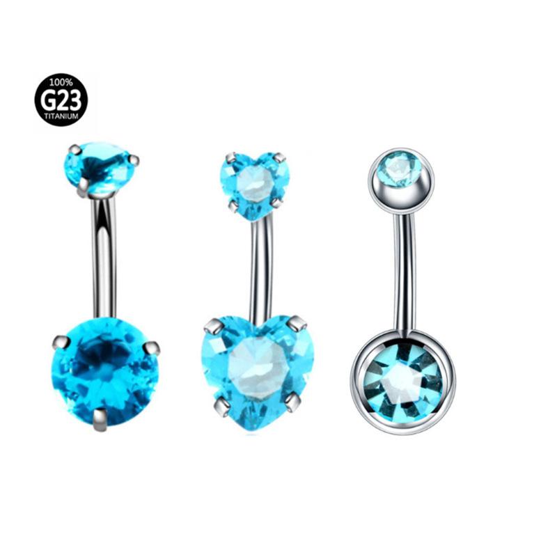 G23 titanio en forma de corazón de cinco puntas con forma de estrella redonda de circón para el ombligo, piercing para el ombligo, joyería para el cuerpo humano, venta al por mayor, diente interno 1.2